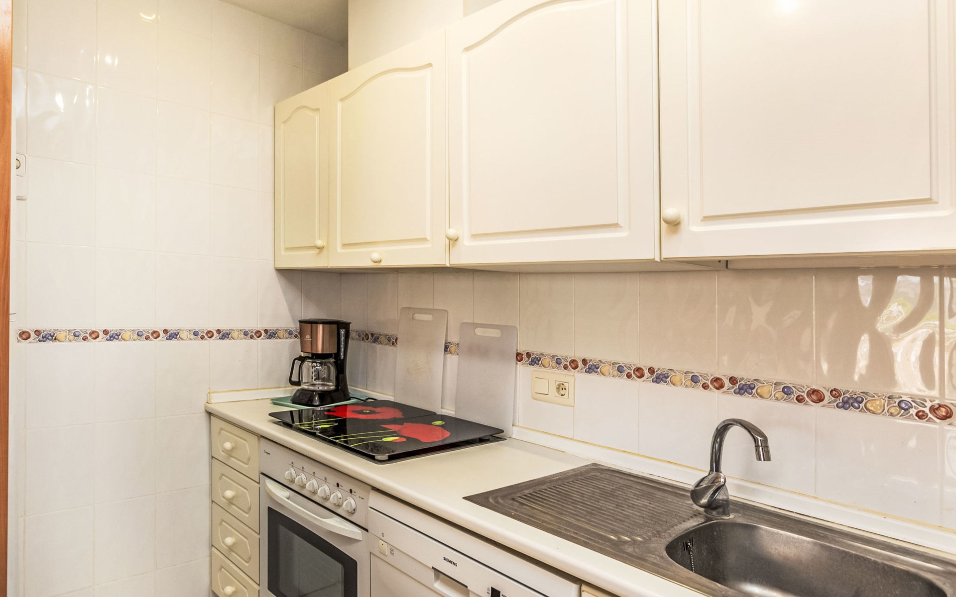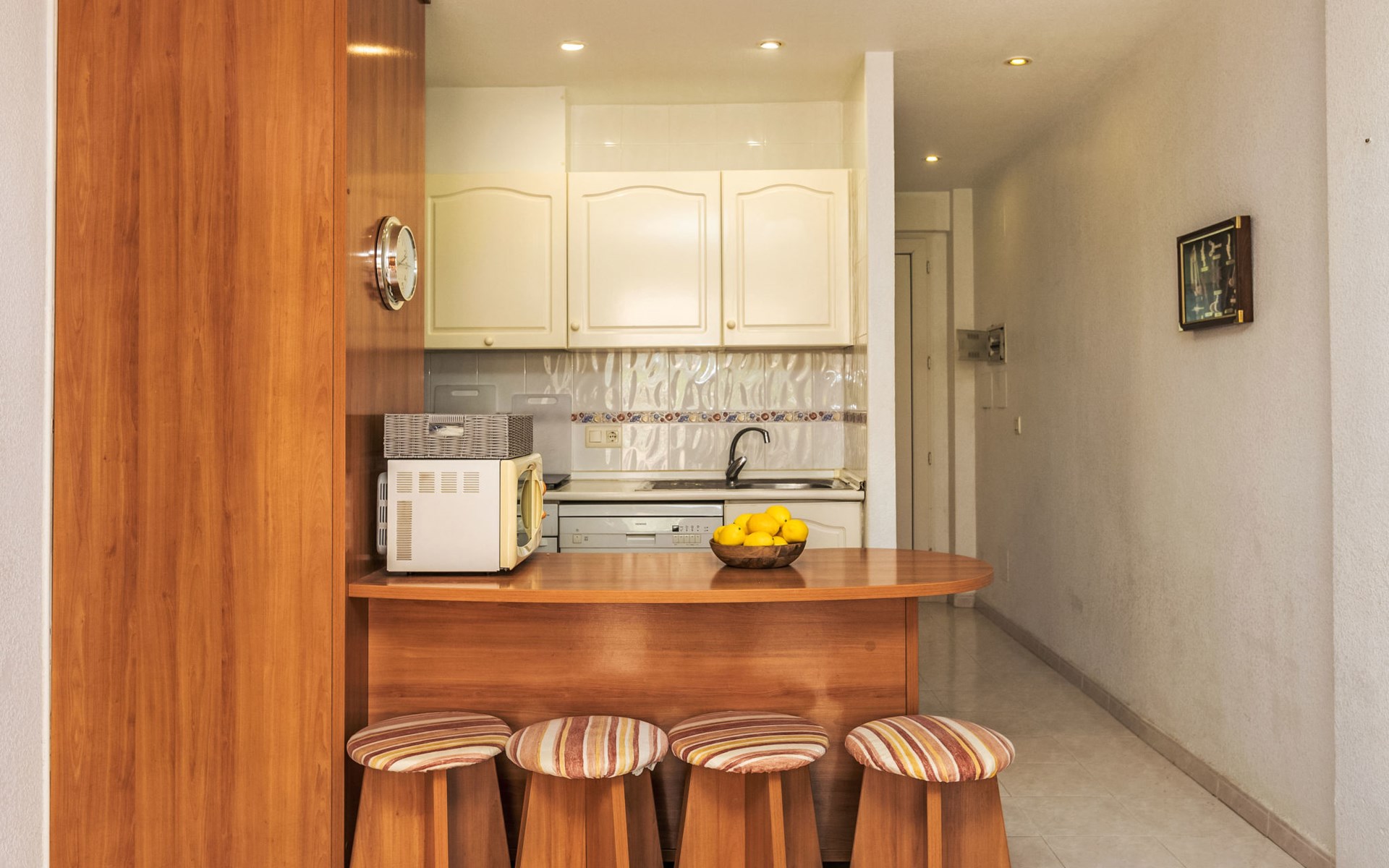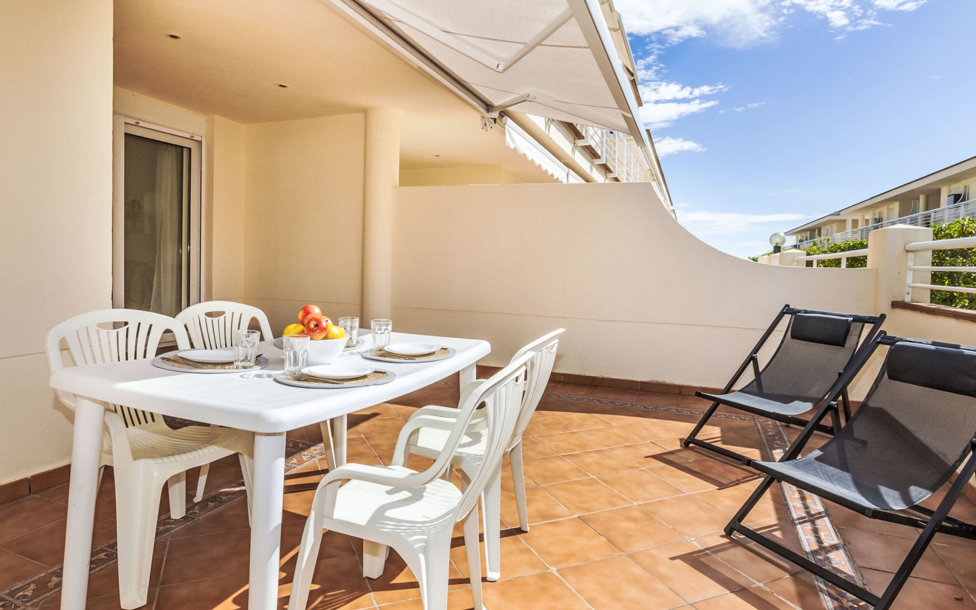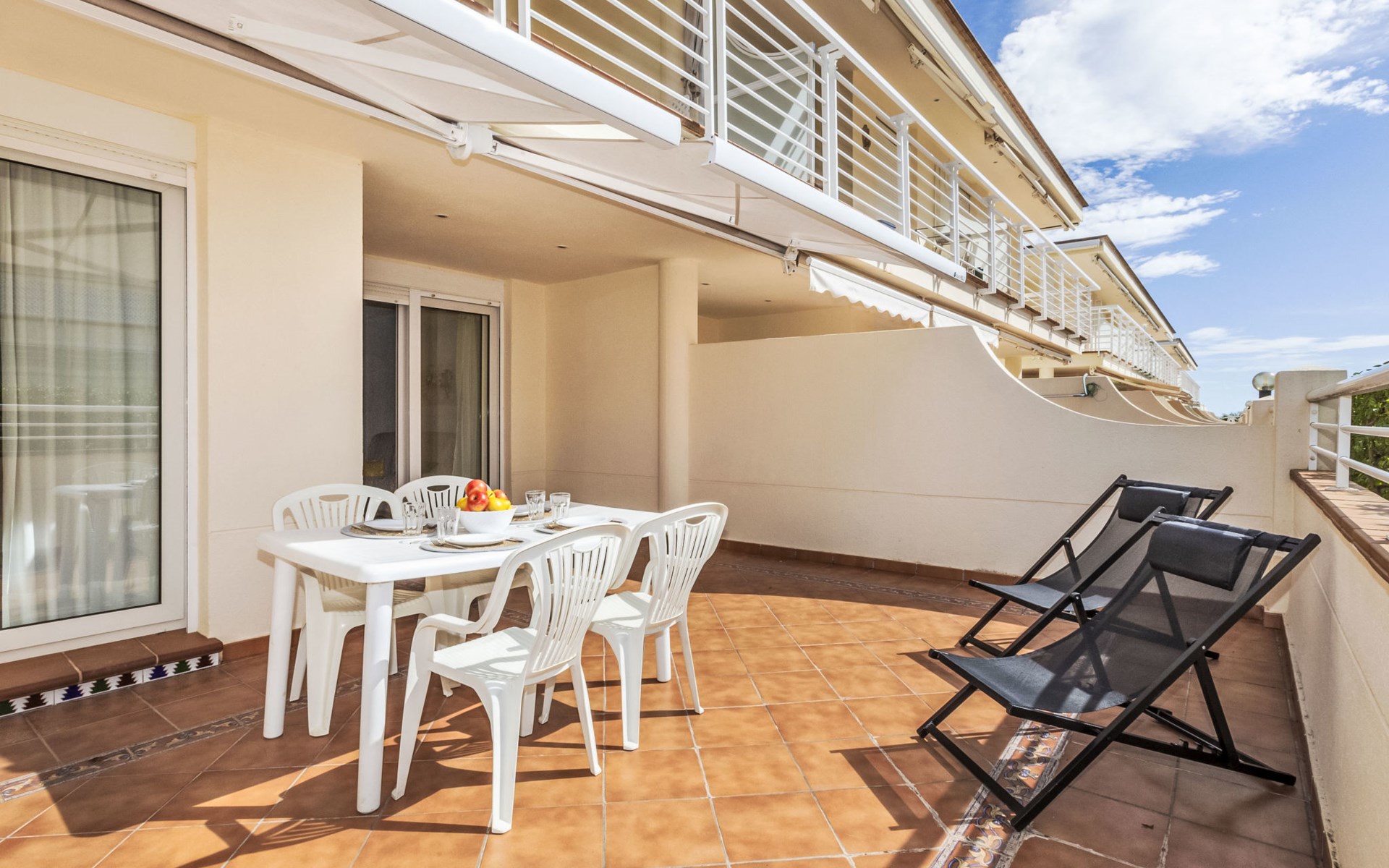 COSTA NORTE 2 km van Vinaròs centro: Flatgebouw "Cala Gonzalez". 60 appartementen in de woning. In de plaats, 2 km van het centrum van Vinaròs, rustige ligging, van zee, 20 m van het strand, directe toegang tot het strand. Voor medegebruik: ligweide, openluchtzwembad (12 x 7 m, 180 cm diepte, seizoensgebonden beschikbaarheid: 01.Jan. - 31.Dec. openingstijden zwembad: 09:00-14:00 en 16:00-22:00). Kinderzwembad, buitendouche. Voor alleengebruik: terras (20 m2), tuinmeubelen. In het huis: wasmachine. Overdekte parkeerplaats. Bushalte "Vinaròs - Calle 29 Septiembre" 2 km, treinstation "Vinaròs" 5 km, stenenstrand "Platja dels Cossis" 20 m. Attracties in de buurt: Peñiscola 25 km, Delta del Ebro 40 km, Port Aventura 100 km, Museo de las Ciencias - Valencia 120 km. Bekende meren kunnen gemakkelijk worden bereikt: Pantano La Senia 25 km. Wandelgebied Parque natural Sierra de Irta 35 km, Foradada del Montsià 25 km. Auto noodzakelijk. De eigenaar accepteert geen jeugdgroepen.