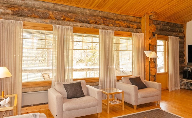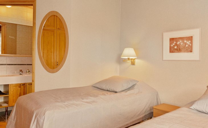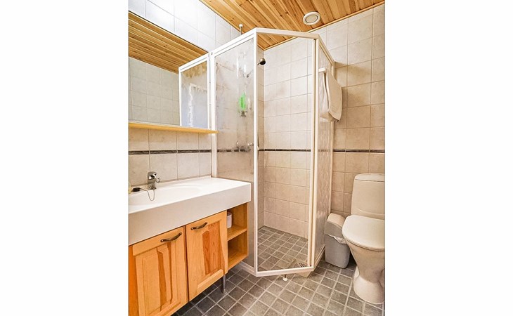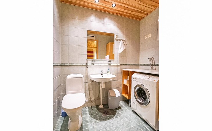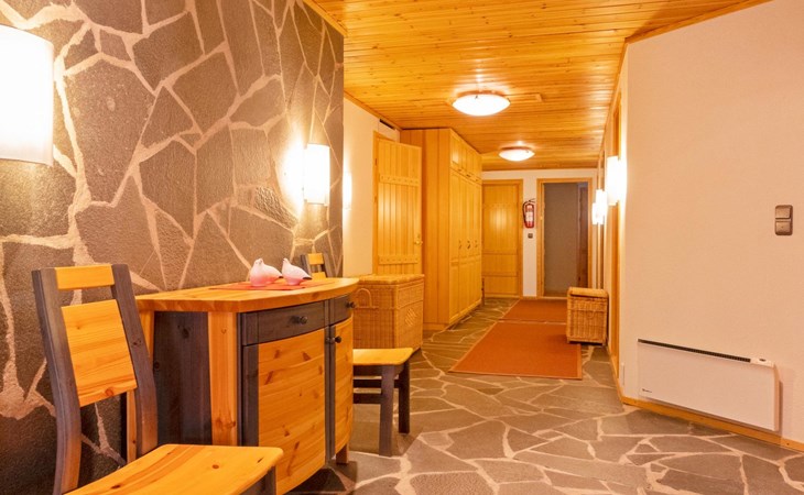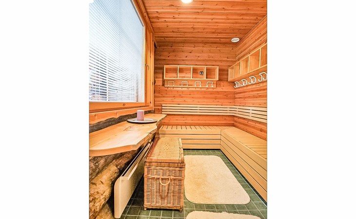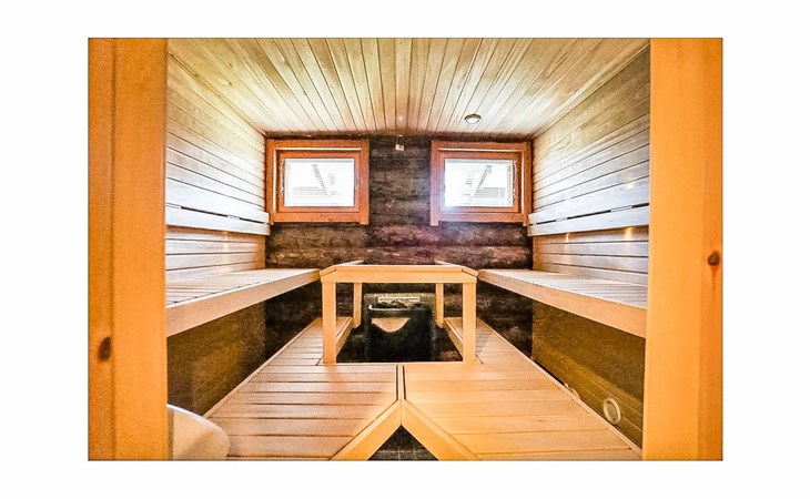 Villa is built in 2000. Living room, dining room, kitchen, 5 bedrooms, all with 2 single beds, WC and shower in all bedrooms. Sauna facilities; washroom, sauna, dressing room and separate WC. Two terraces, access from dressing and living rooms. Storage and ski maintenance room including e.g. ski waxing table.