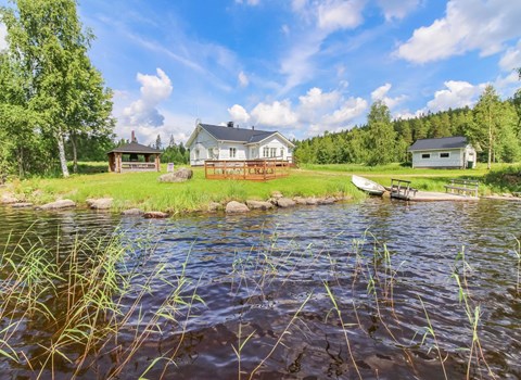 Entrance to sauna via covered porch. Fireplace, baking oven, air source heat pump and video projector with screen in the living room/kitchen.