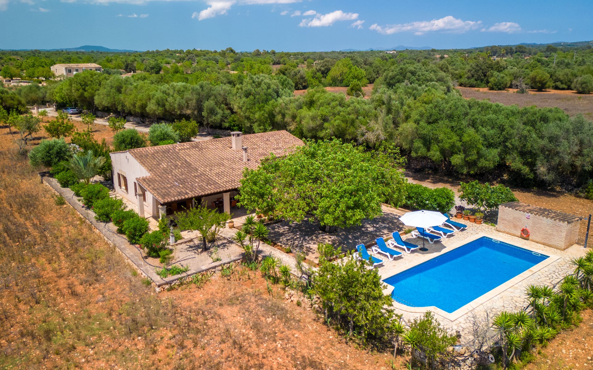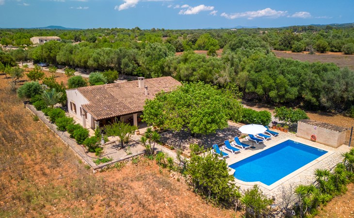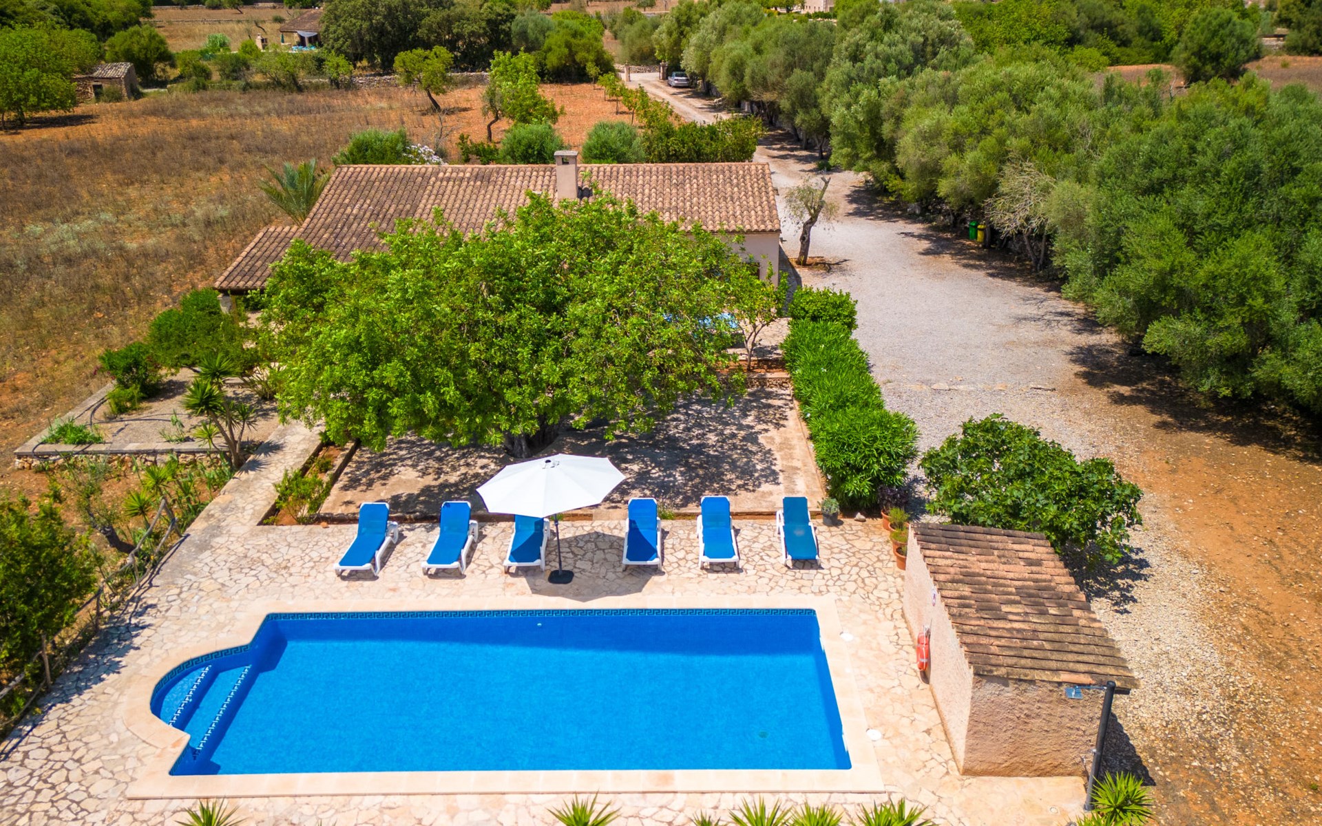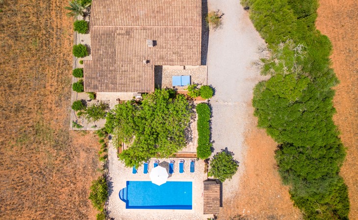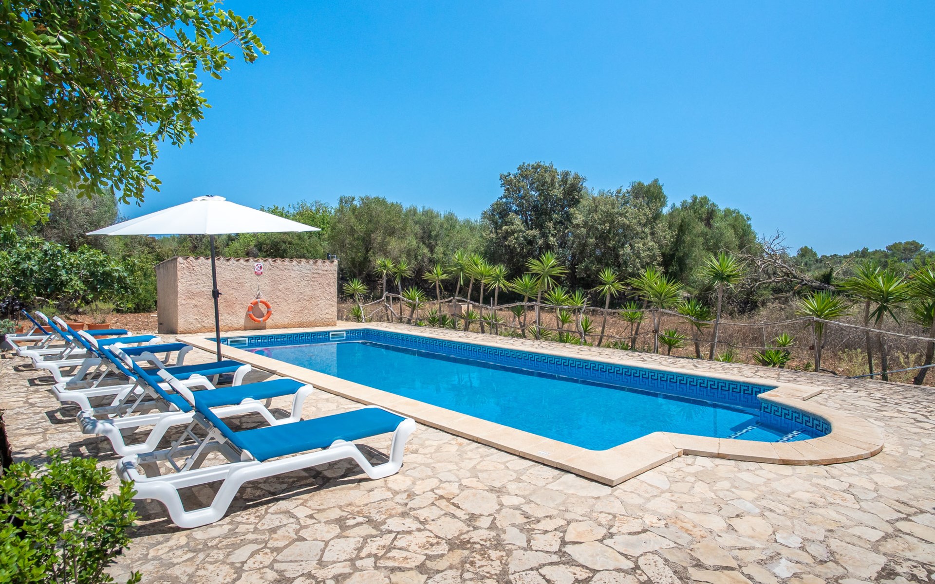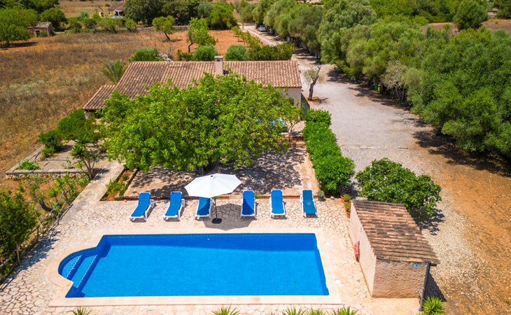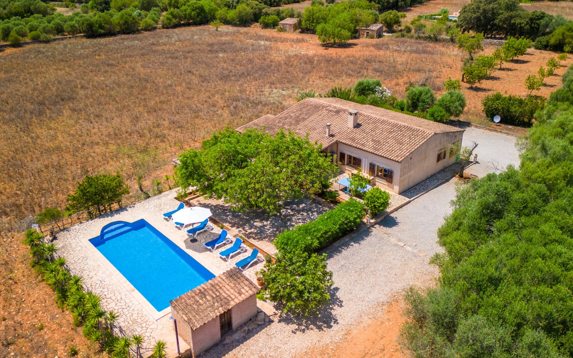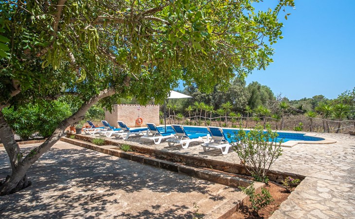 Ses Casetes 6 km van Felanitx: Landgoed "Casetes", vrijstaand, omgeven door velden. 6 km van het centrum van Felanitx, 8 km van het centrum van Campos, 48 km van het centrum van Palma, 15 km van zee, 17 km van het strand, te midden van groen, op het zuiden. Voor medegebruik: terrein (omheind). Voor alleengebruik: wild terrein 15.000 m2, tuin met planten en bomen, openluchtzwembad (8 x 4 m, seizoensgebonden beschikbaarheid: 01.Jan. - 31.Dec.). Buitendouche, tafeltennis, onderhoud zwembad door de eigenaar/tuinman. Parkeerplaats op het terrein. Winkel 6 km, levensmiddelenwinkel 6 km, supermarkt 7 km, winkelcentrum 10 km, restaurant 8 km, bar 7 km, bakkerij 8 km, café 7 km, bushalte "Felanitx" 6 km, zandstrand "Cala Mondragó" 15 km, rotsstrand "Cala Murada" 20 km. Jachthaven 17 km, jachthaven 17 km, golfterrein (18 holes) 12 km, surfschool 15 km, zeilschool 15 km, tennis 14 km, manege 1 km, wandelroutes 8 km vanaf het huis, fietspad 8 km. Attracties in de buurt: Coves dels Hams 23 km, Safari Zoo 28 km, Sant Salvador 17 km. Auto noodzakelijk.
