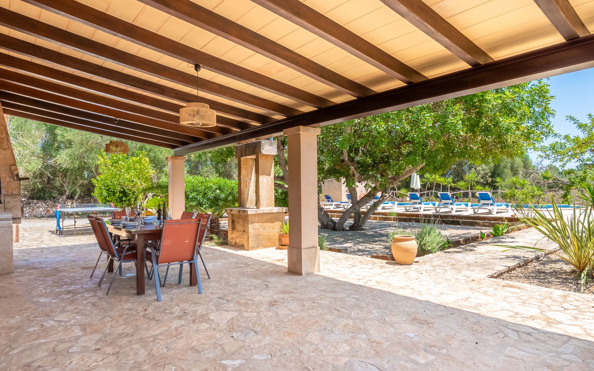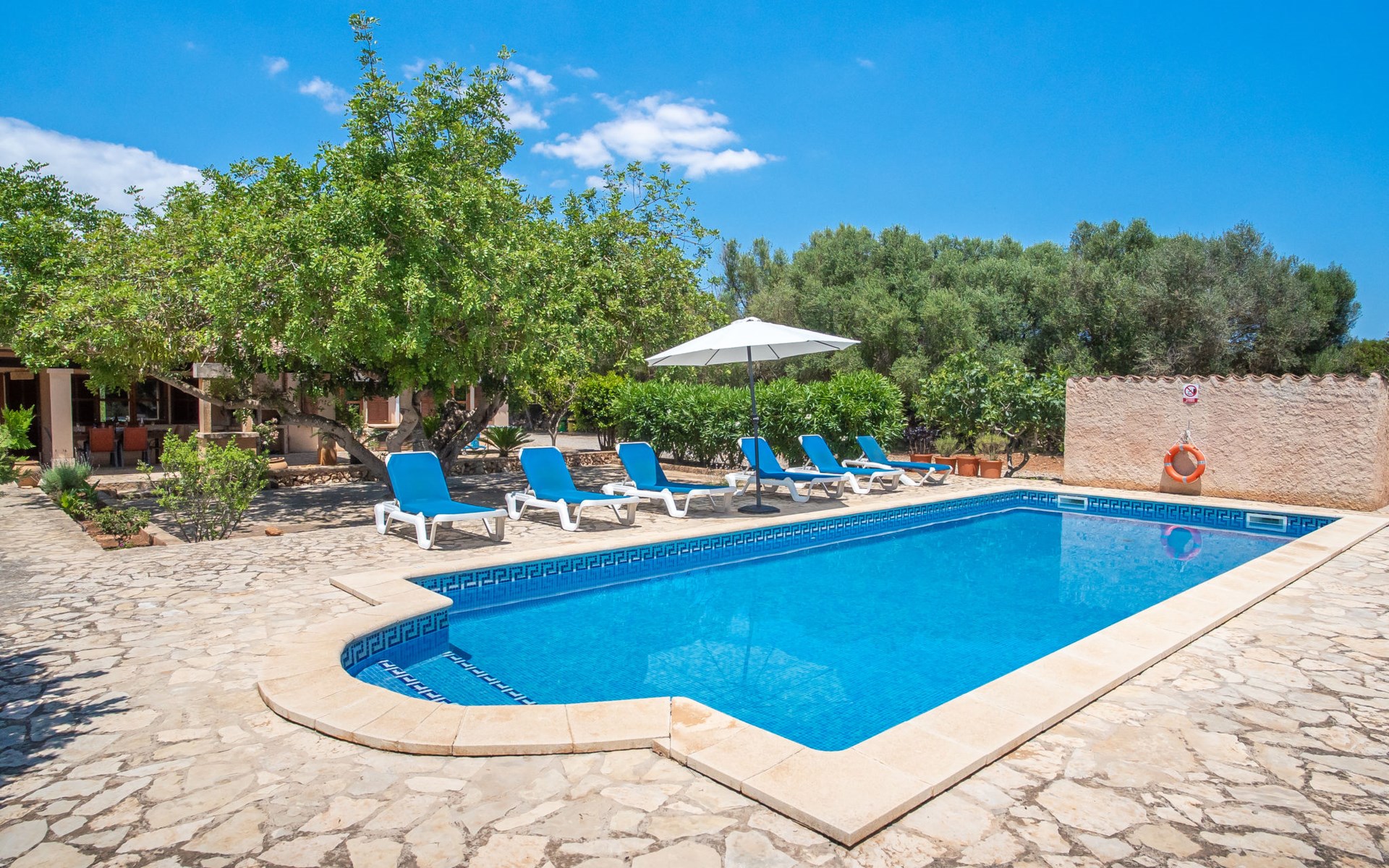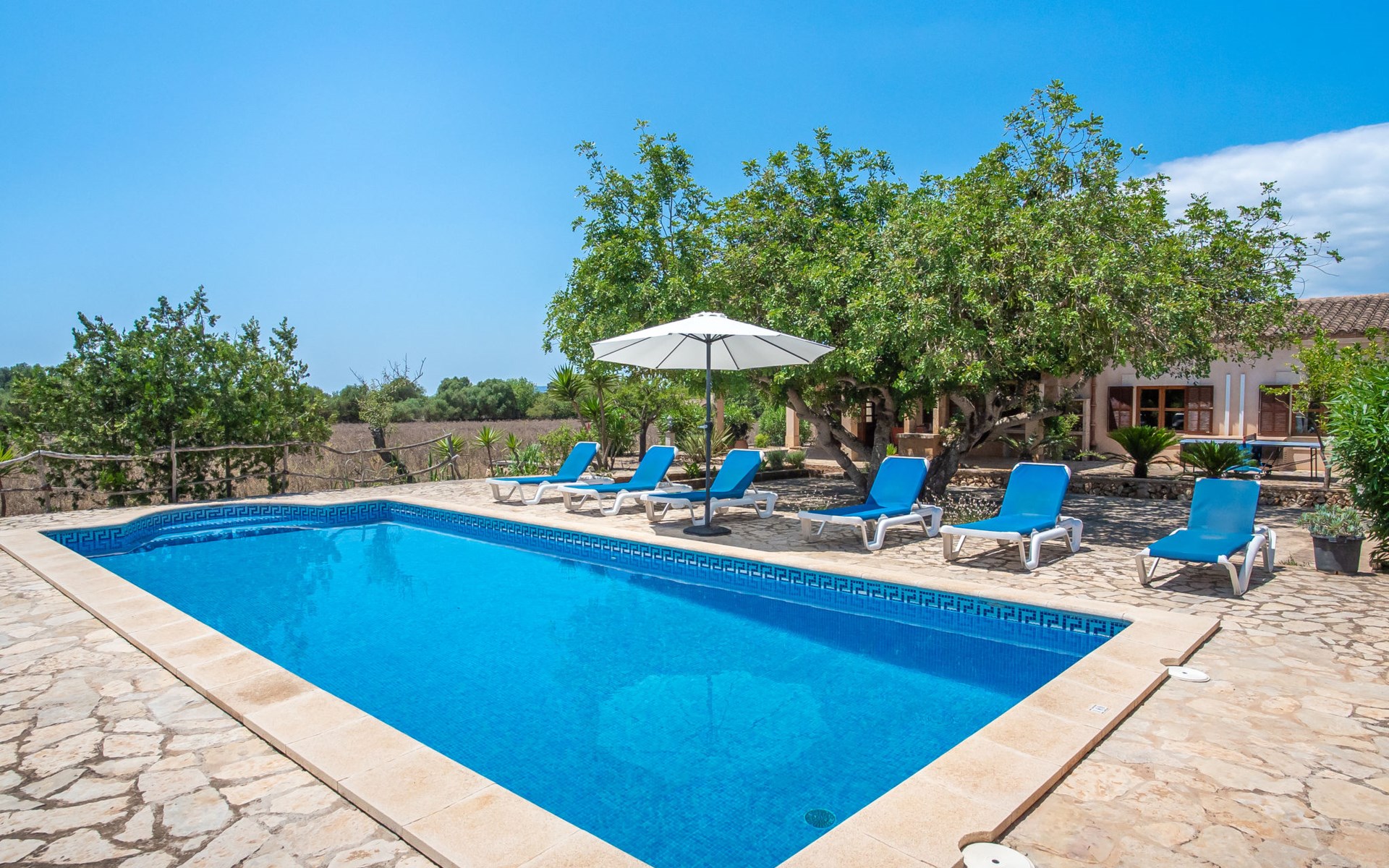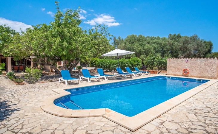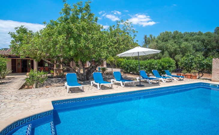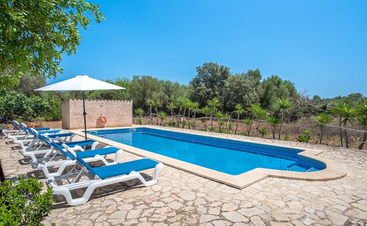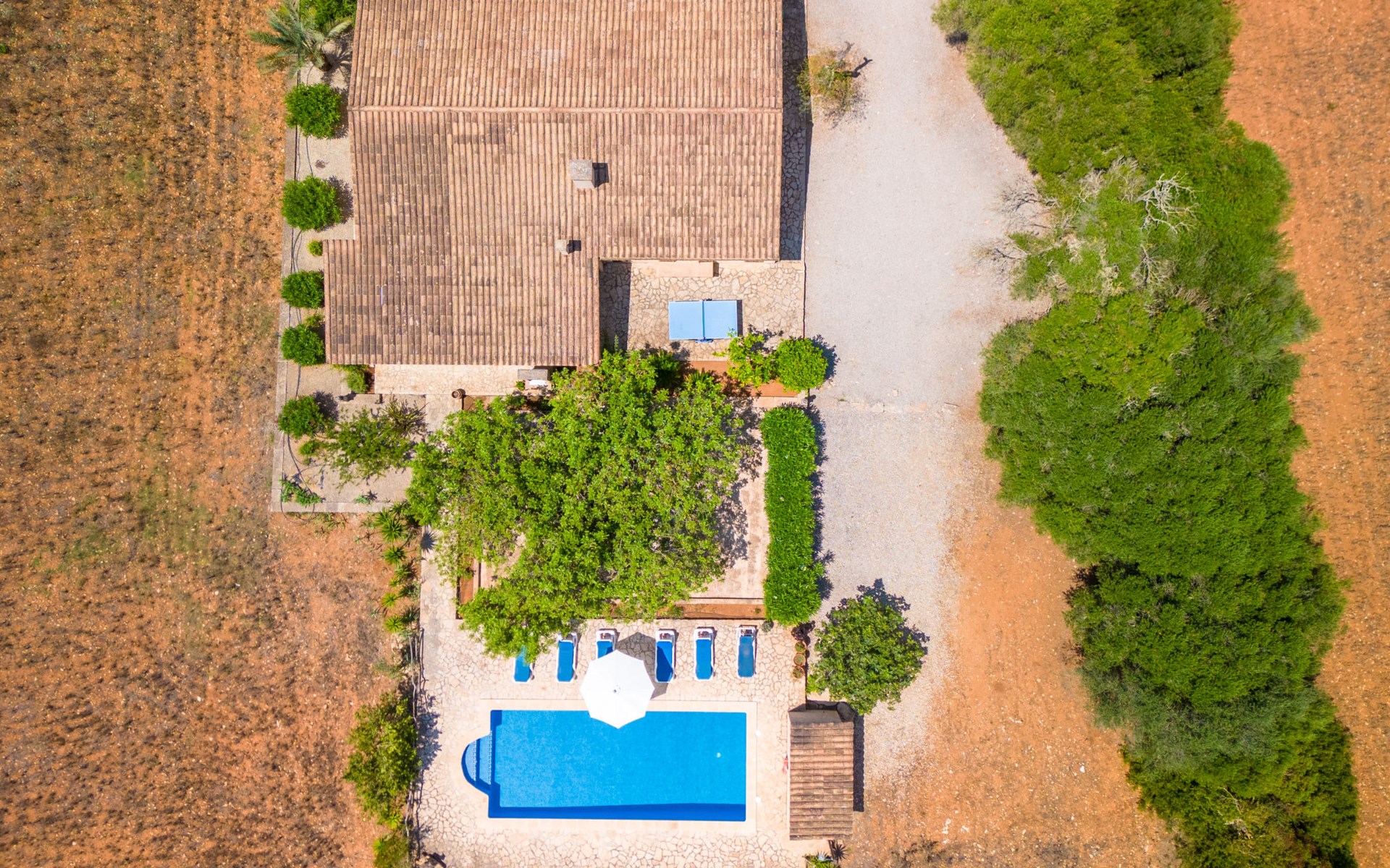 Ses Casetes 6 km van Felanitx: Landgoed "Casetes", vrijstaand, omgeven door velden. 6 km van het centrum van Felanitx, 8 km van het centrum van Campos, 48 km van het centrum van Palma, 15 km van zee, 17 km van het strand, te midden van groen, op het zuiden. Voor medegebruik: terrein (omheind). Voor alleengebruik: wild terrein 15.000 m2, tuin met planten en bomen, openluchtzwembad (8 x 4 m, seizoensgebonden beschikbaarheid: 01.Jan. - 31.Dec.). Buitendouche, tafeltennis, onderhoud zwembad door de eigenaar/tuinman. Parkeerplaats op het terrein. Winkel 6 km, levensmiddelenwinkel 6 km, supermarkt 7 km, winkelcentrum 10 km, restaurant 8 km, bar 7 km, bakkerij 8 km, café 7 km, bushalte "Felanitx" 6 km, zandstrand "Cala Mondragó" 15 km, rotsstrand "Cala Murada" 20 km. Jachthaven 17 km, jachthaven 17 km, golfterrein (18 holes) 12 km, surfschool 15 km, zeilschool 15 km, tennis 14 km, manege 1 km, wandelroutes 8 km vanaf het huis, fietspad 8 km. Attracties in de buurt: Coves dels Hams 23 km, Safari Zoo 28 km, Sant Salvador 17 km. Auto noodzakelijk.