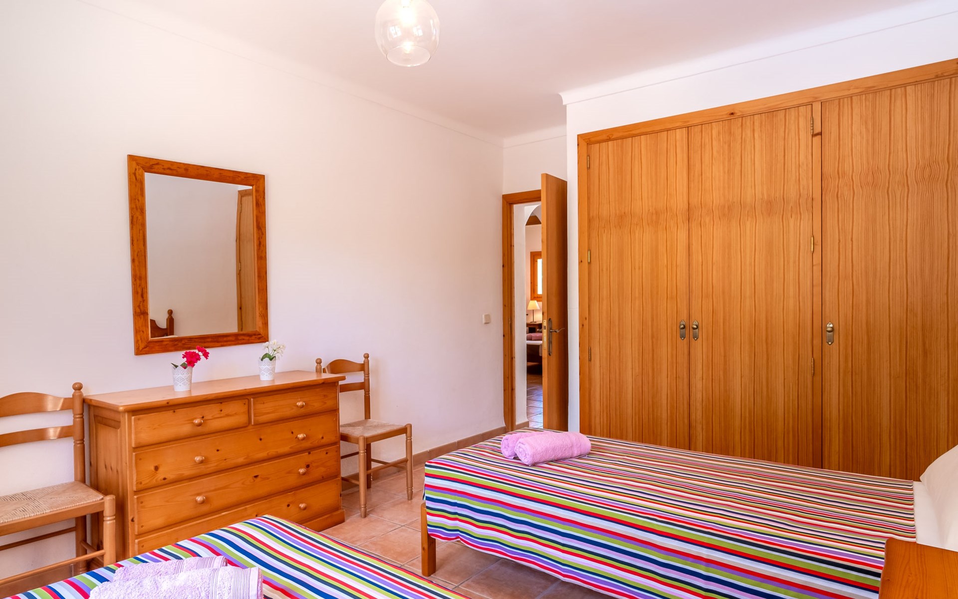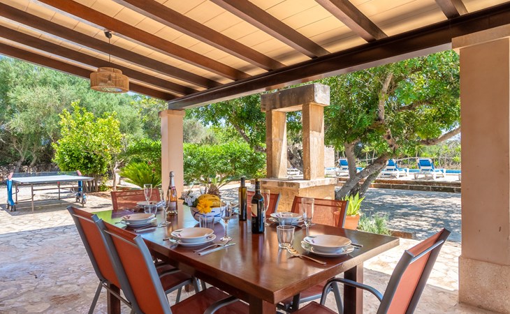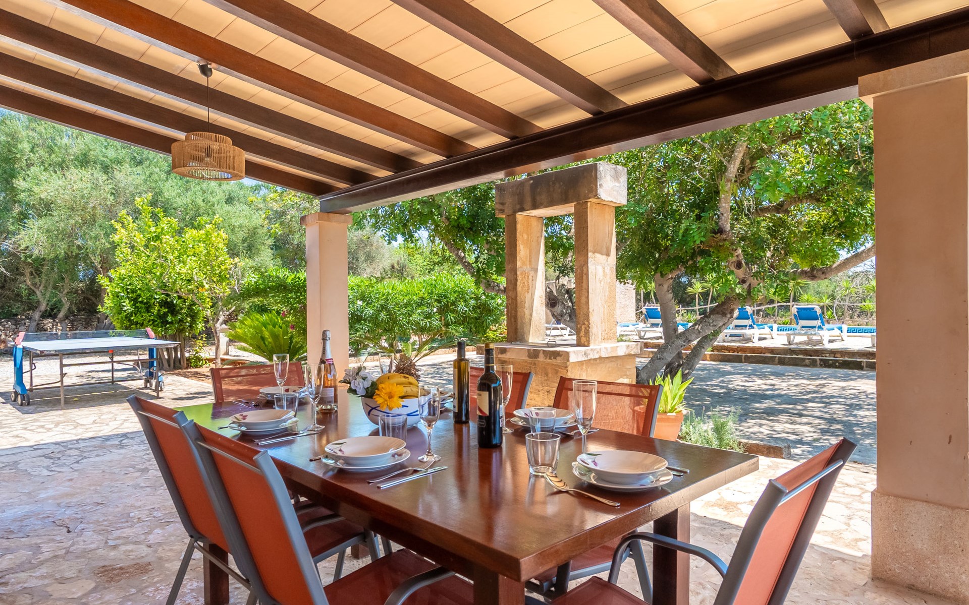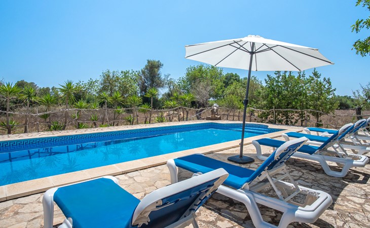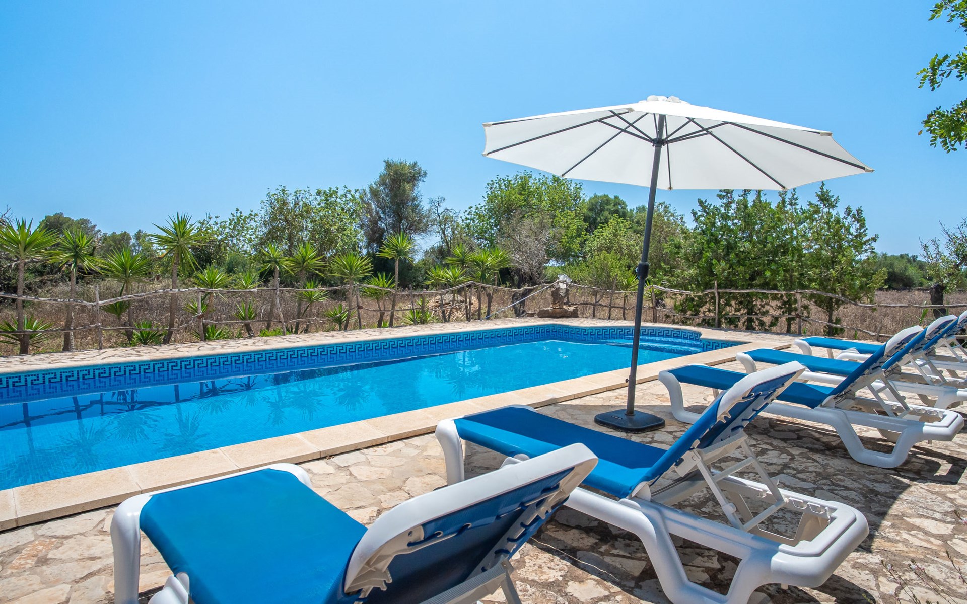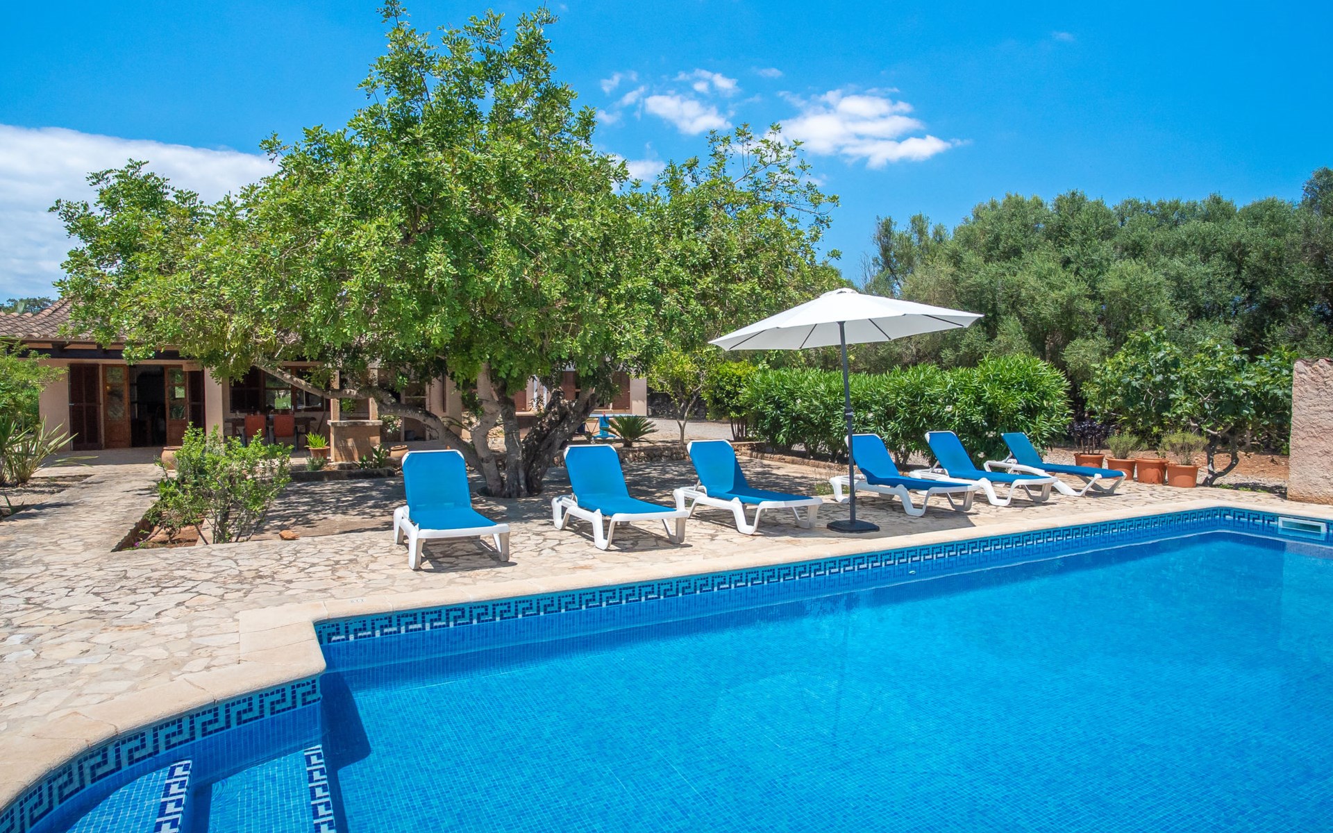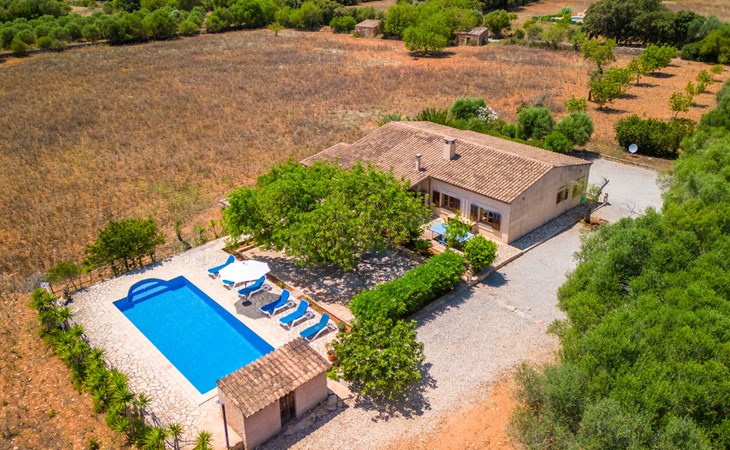 Ses Casetes 6 km van Felanitx: Landgoed "Casetes", vrijstaand, omgeven door velden. 6 km van het centrum van Felanitx, 8 km van het centrum van Campos, 48 km van het centrum van Palma, 15 km van zee, 17 km van het strand, te midden van groen, op het zuiden. Voor medegebruik: terrein (omheind). Voor alleengebruik: wild terrein 15.000 m2, tuin met planten en bomen, openluchtzwembad (8 x 4 m, seizoensgebonden beschikbaarheid: 01.Jan. - 31.Dec.). Buitendouche, tafeltennis, onderhoud zwembad door de eigenaar/tuinman. Parkeerplaats op het terrein. Winkel 6 km, levensmiddelenwinkel 6 km, supermarkt 7 km, winkelcentrum 10 km, restaurant 8 km, bar 7 km, bakkerij 8 km, café 7 km, bushalte "Felanitx" 6 km, zandstrand "Cala Mondragó" 15 km, rotsstrand "Cala Murada" 20 km. Jachthaven 17 km, jachthaven 17 km, golfterrein (18 holes) 12 km, surfschool 15 km, zeilschool 15 km, tennis 14 km, manege 1 km, wandelroutes 8 km vanaf het huis, fietspad 8 km. Attracties in de buurt: Coves dels Hams 23 km, Safari Zoo 28 km, Sant Salvador 17 km. Auto noodzakelijk.