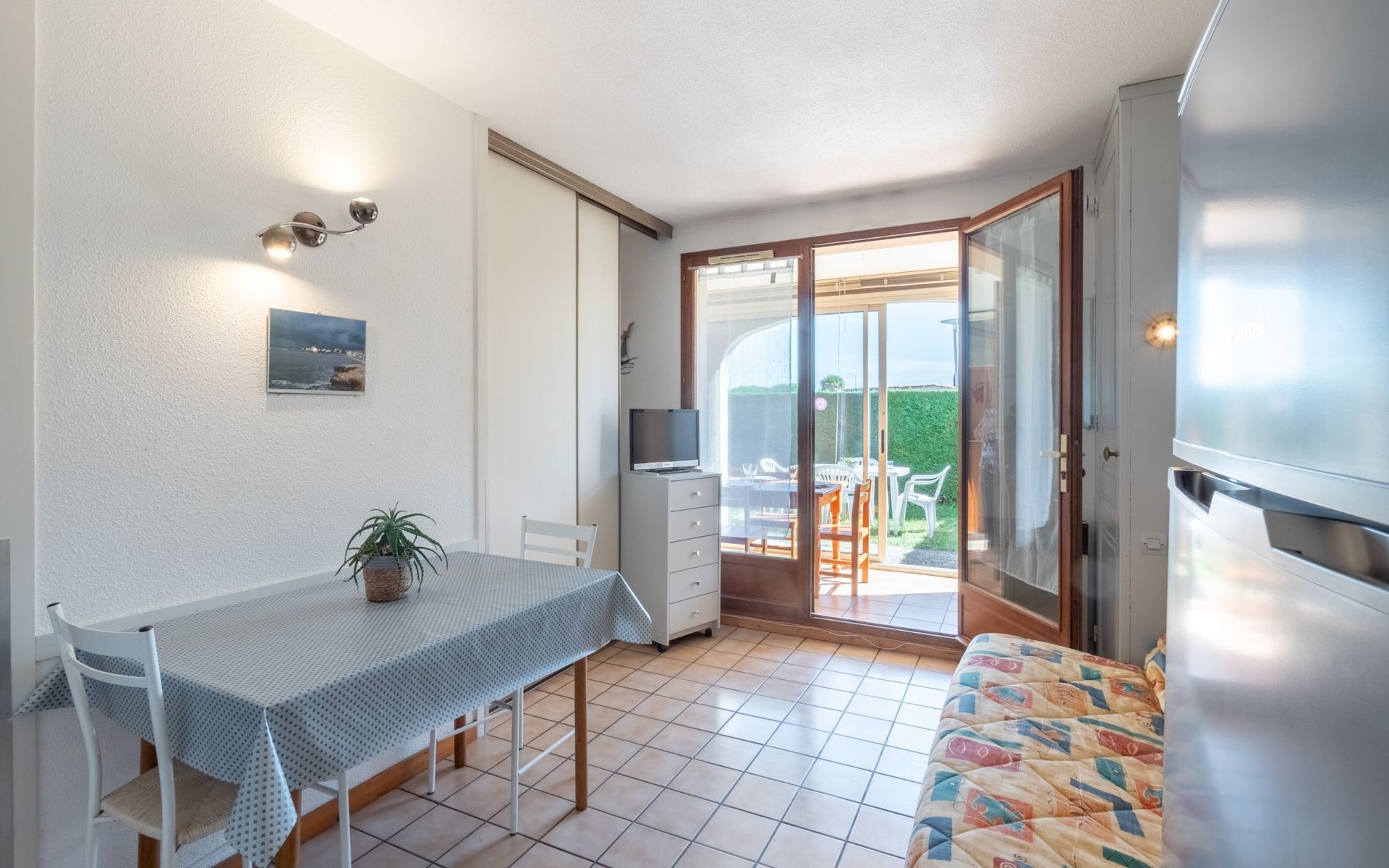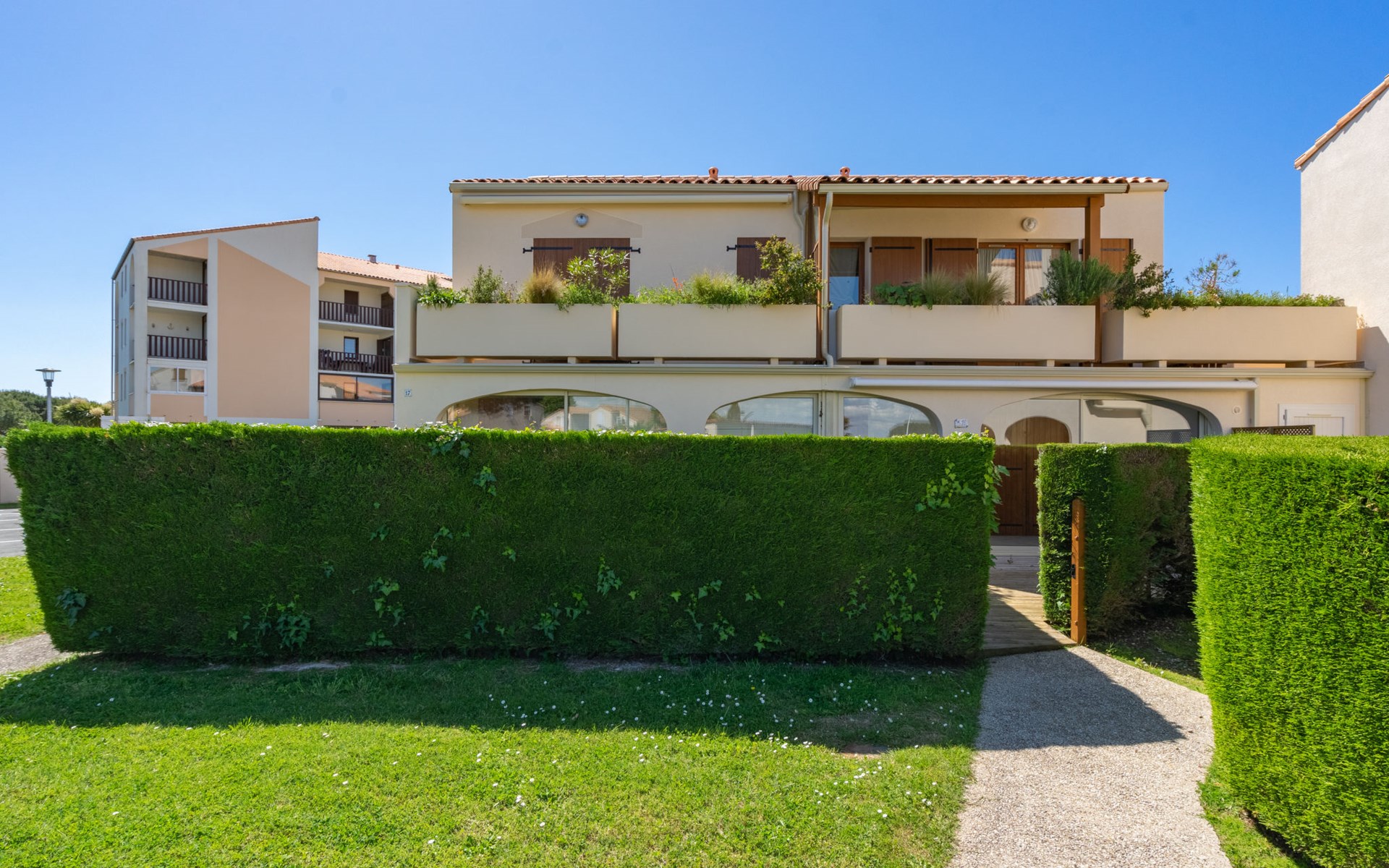 Vaux sur Mer 2 km van Royan: Residentie "Les Soleils Rouges". 96 appartementen in de woning. In de wijk Pontaillac, 1.8 km van het centrum van Vaux sur Mer, 500 m van zee, 500 m van het strand. Parkeerplaats (beperkt aantal). Winkel 500 m, supermarkt 1.2 km, restaurant, bakkerij, café 500 m, bushalte "Porte Océane" 250 m, station "Royan" 4 km, zandstrand "Pontaillac" 500 m, park "Luna Park (Juillet-Août)", overdekt zwembad 4 km, thermaalbad "Thalassothérapie Thalazur Royan" 2 km. Jachthaven 3 km, golfterrein (18 holes) 6 km, surfschool 500 m, tennis 2.3 km, tennishal 2.3 km, midgetgolf 1 km, manege 7 km, fietspad 200 m. Attracties in de buurt: Zoo de La Palmyre 13 km, Hippodrome - La Palmyre 14 km, Centre aquatique Iléo - Ile d'Oléron 47 km, Fort Boyard - Fouras 57 km, Aéroport La Rochelle - Ile de Ré 79 km, Aéroport Bordeaux - Merignac 132 km. Vergelijkbare accommodaties kunnen worden geboekt.