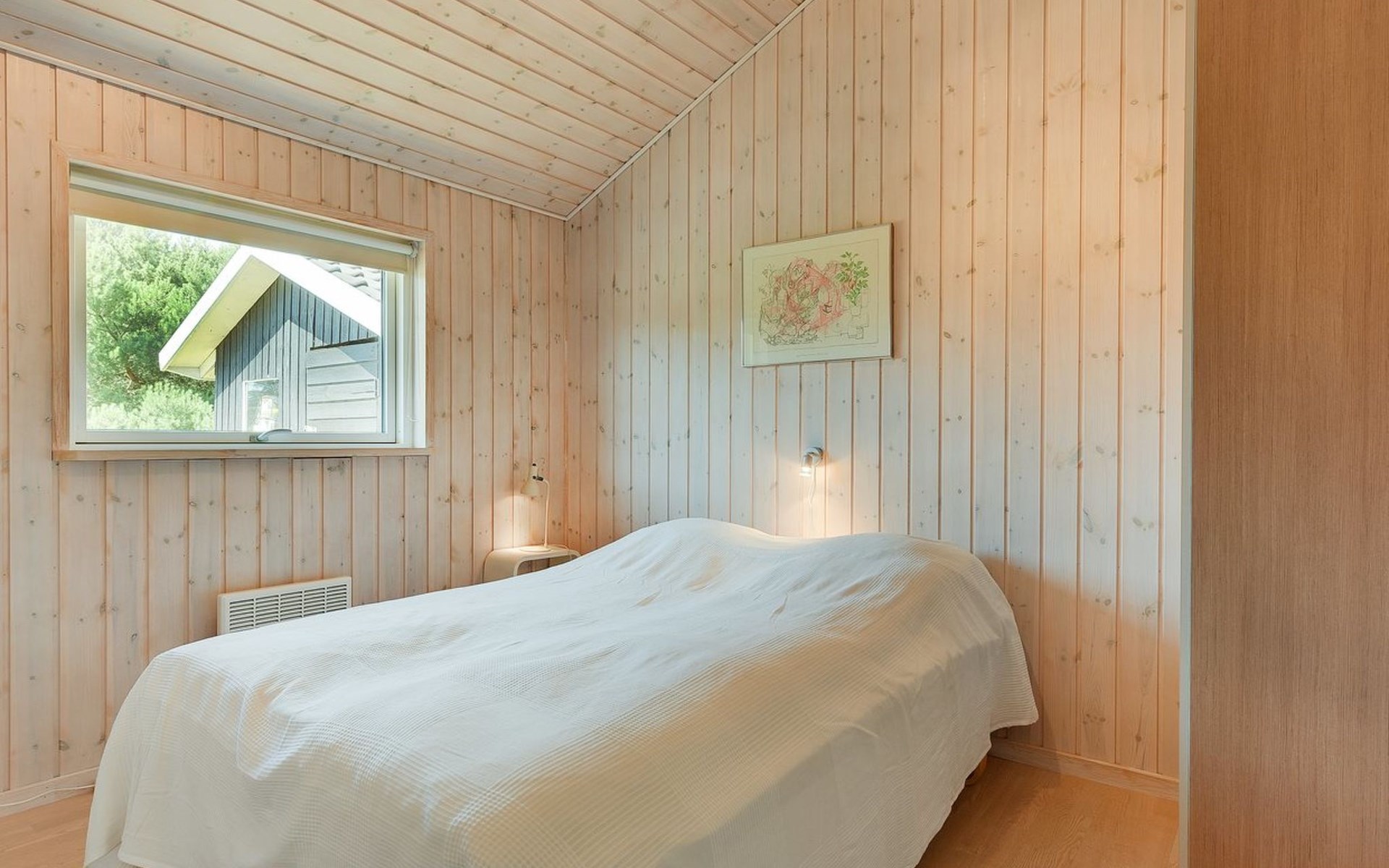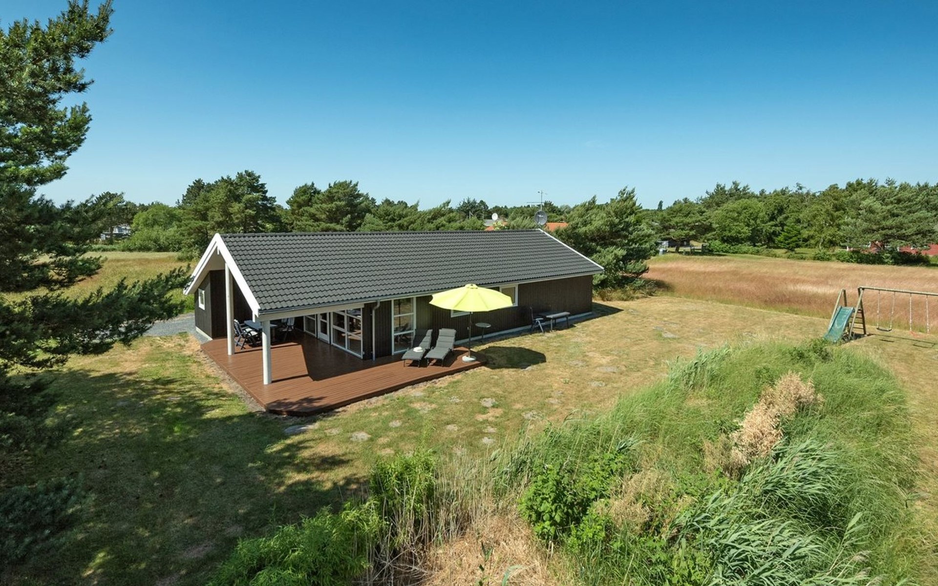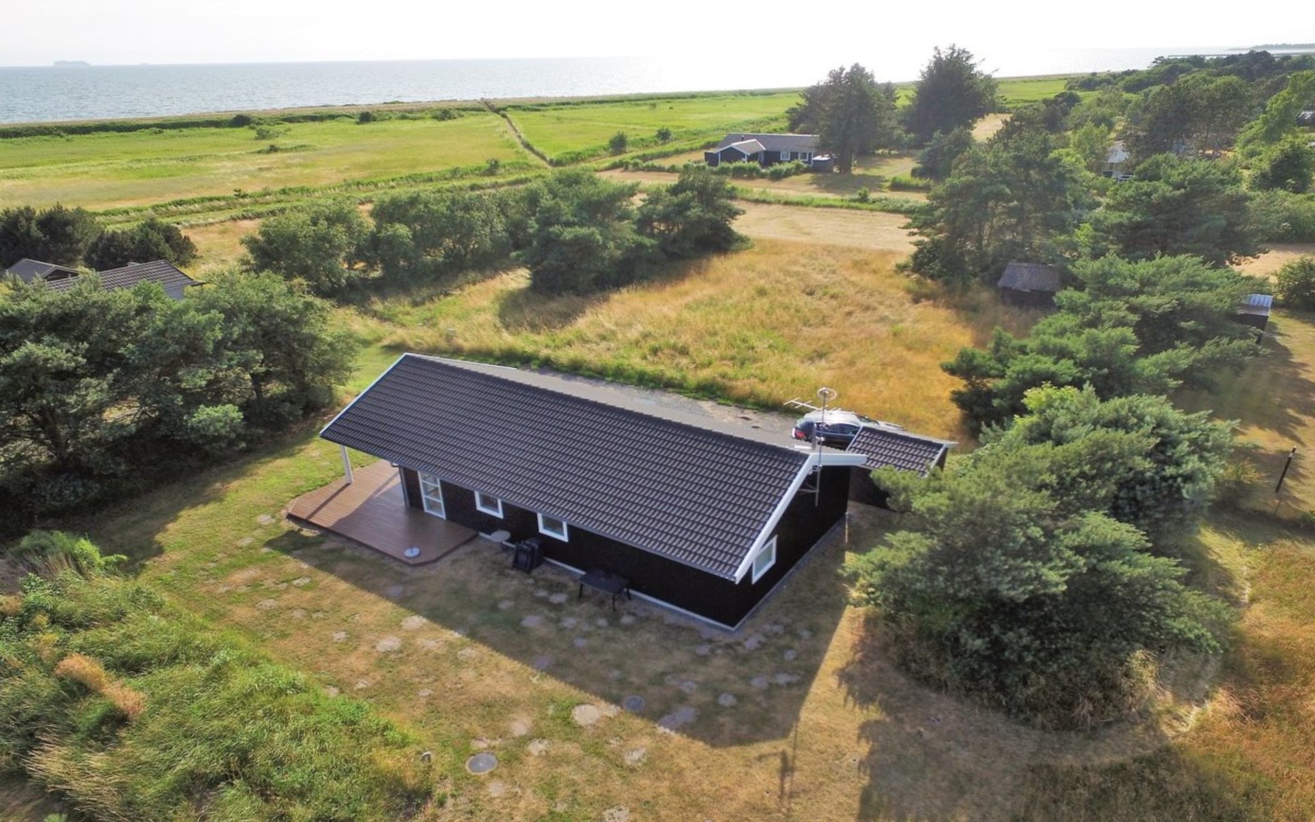 Eengezinswoning, bouwjaar 2007. 150 m van zee. Voor alleengebruik: wild terrein 862 m2. Terras (7 m2), barbecue, kinderspeelplaats (schommel). In het huis: sauna, wasmachine. Parkeerplaats bij het huis. Levensmiddelenwinkel 900 m. De eigenaar accepteert geen jeugdgroepen.