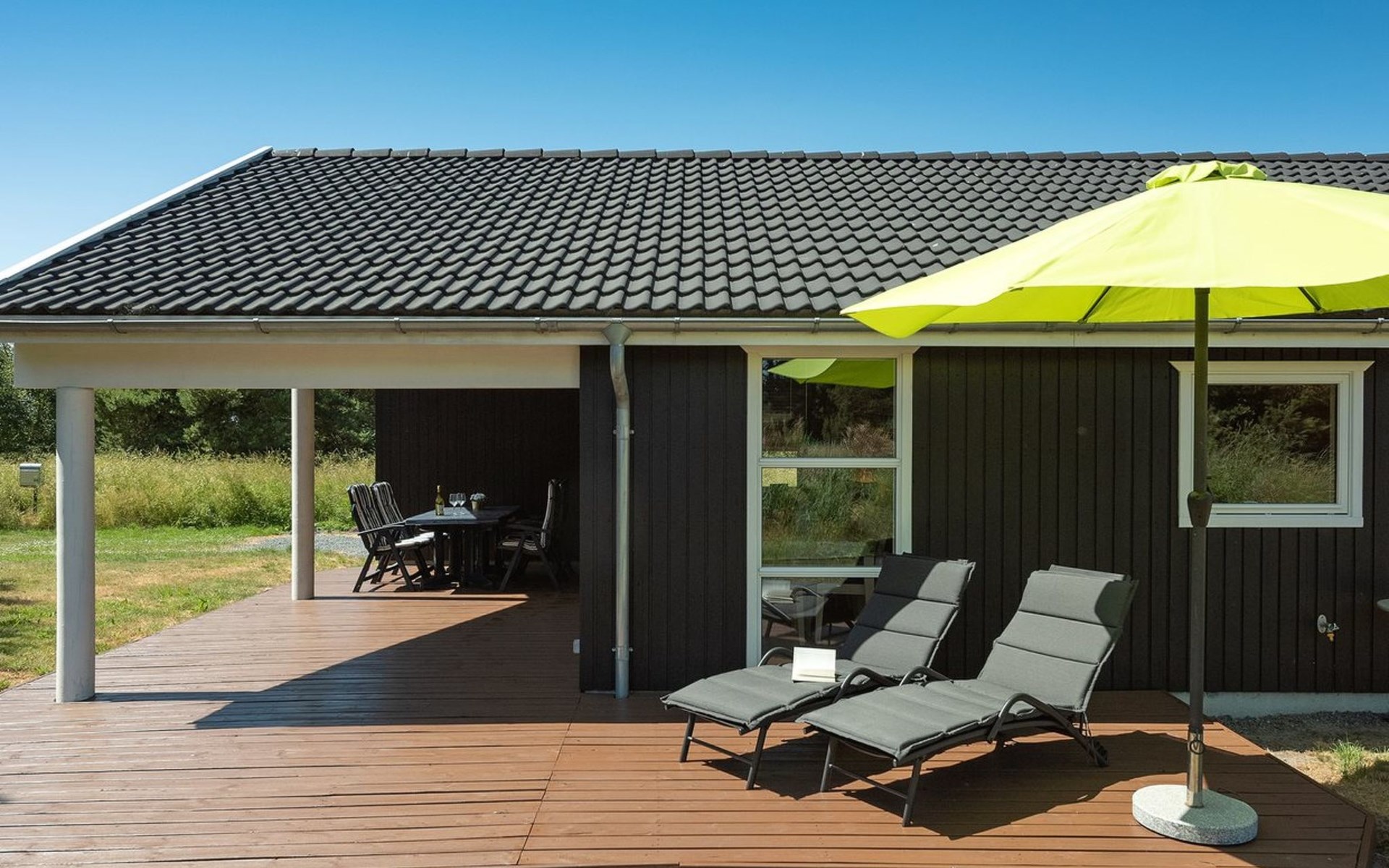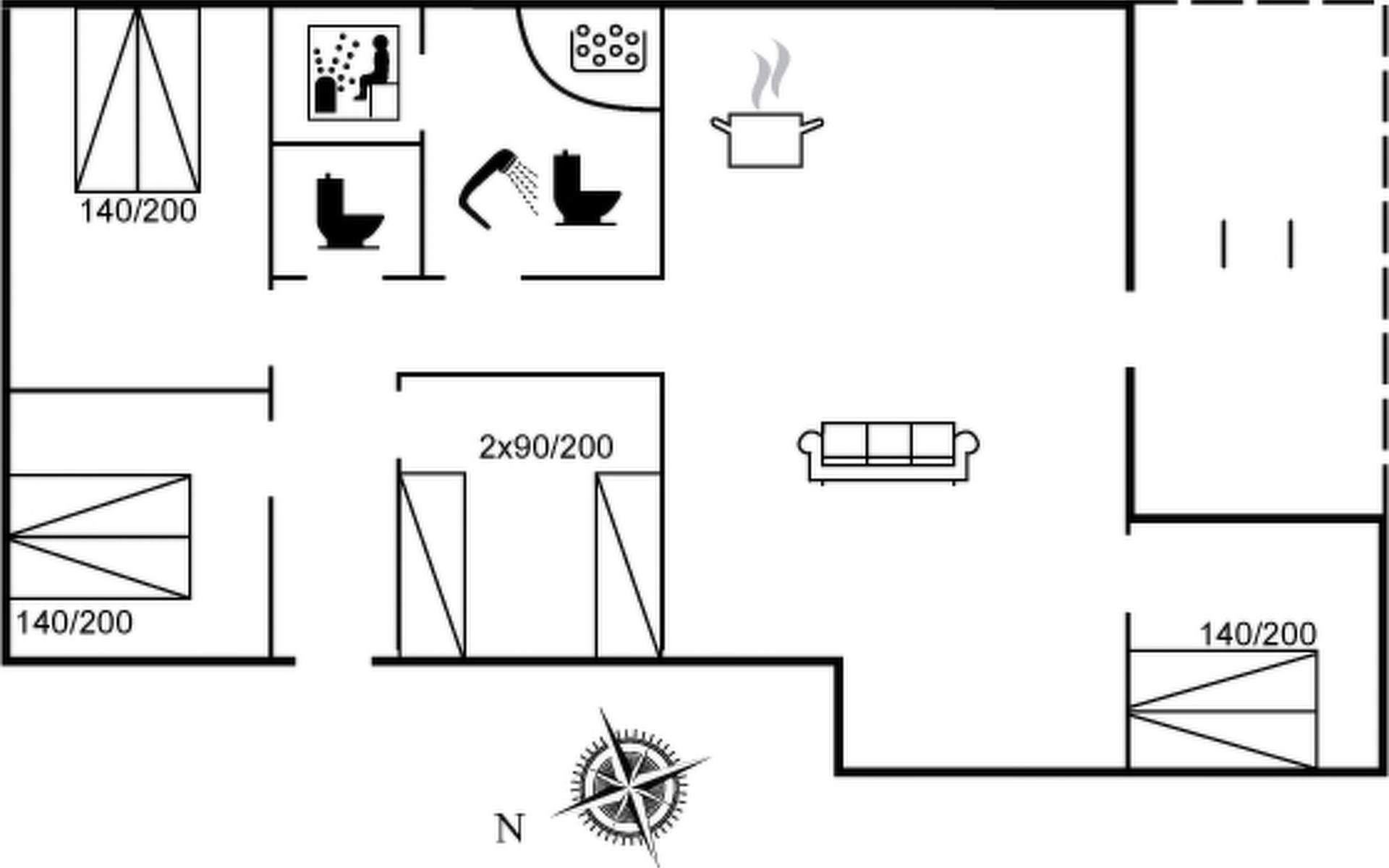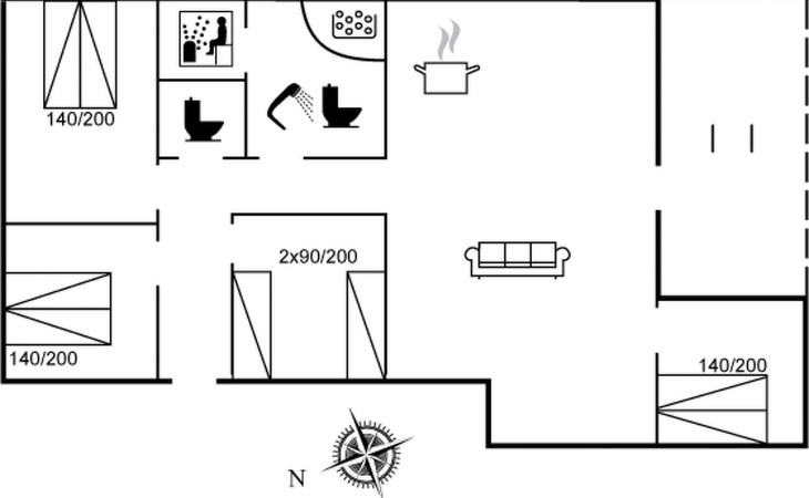 Eengezinswoning, bouwjaar 2007. 150 m van zee. Voor alleengebruik: wild terrein 862 m2. Terras (7 m2), barbecue, kinderspeelplaats (schommel). In het huis: sauna, wasmachine. Parkeerplaats bij het huis. Levensmiddelenwinkel 900 m. De eigenaar accepteert geen jeugdgroepen.