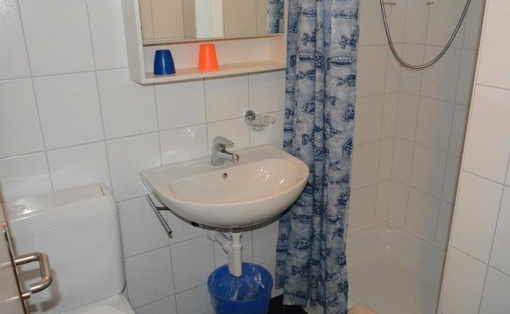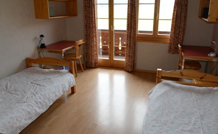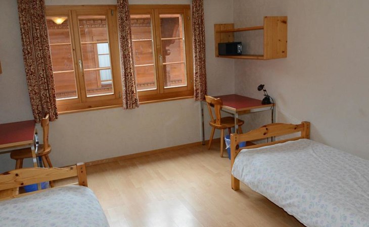 6 bedrooms each with table, safe, cable TV/radio, 2 single beds (90x200cm) and own shower/toilet. Living-/dining room and kitchen (among other things furnished with filter coffee machine, fondue- and raclette-set) for common use. TV and WiFi. Baby cot (60x120cm) excl. bed linen available.