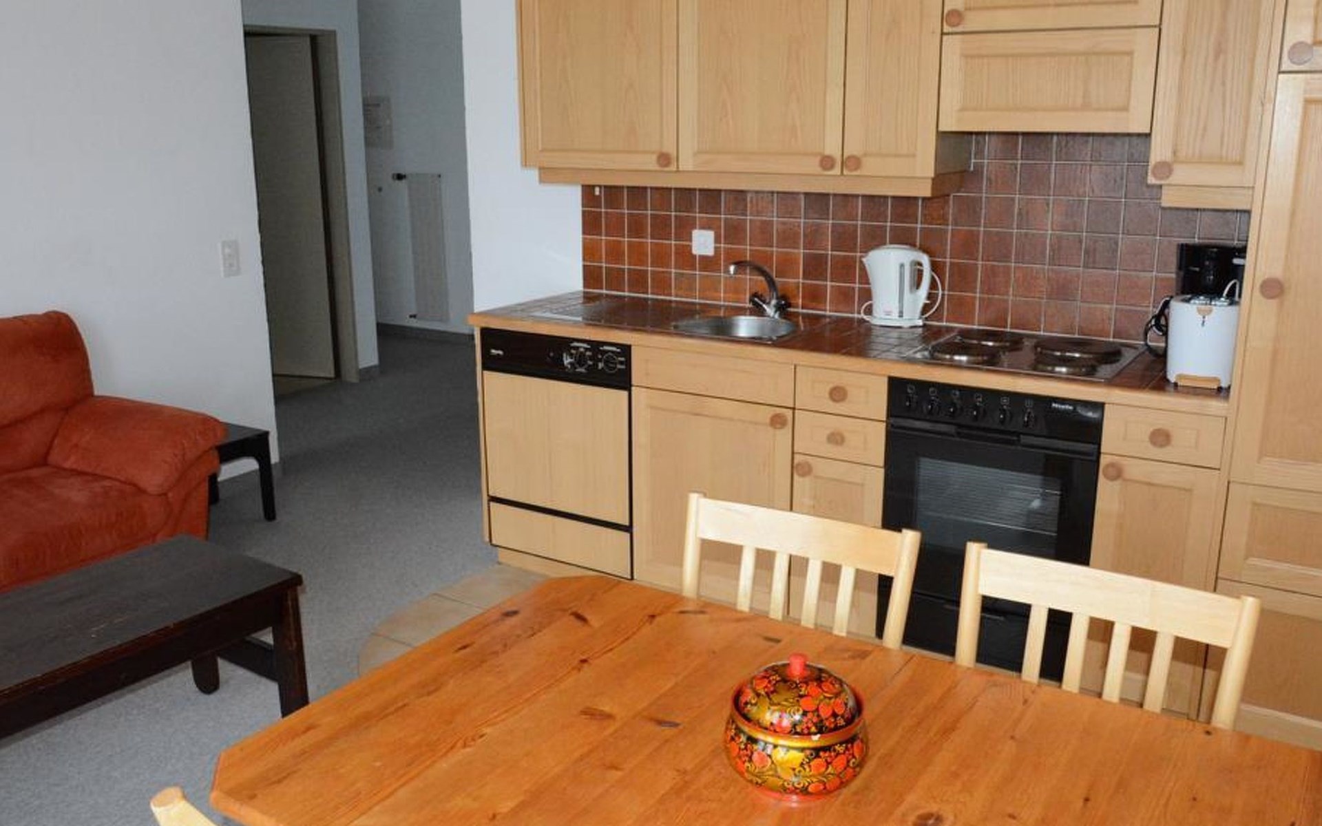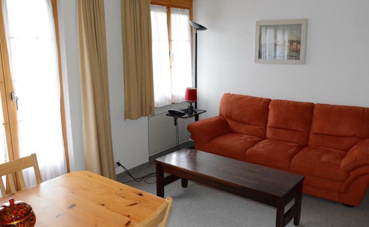 1 bedroom with a bunk bed (90x180cm). 1 double bedroom (180x200cm). Kitchen (among other things furnished with filter coffee machine, fondue-raclette set), living and dining room with a sofa. Shower/WC. Cable TV/radio. WiFi. Baby cot (60x120cm) excl. bed linen available.