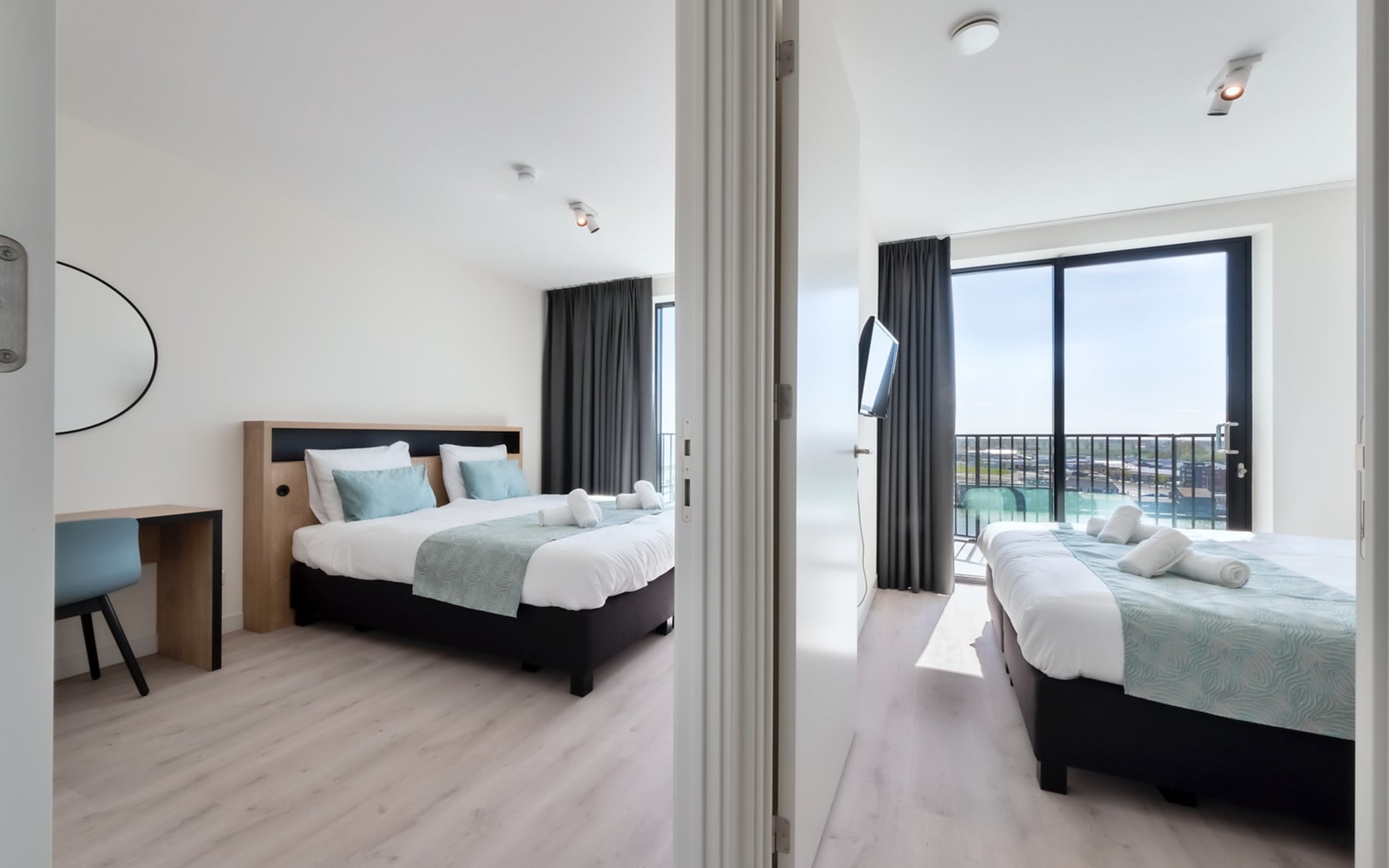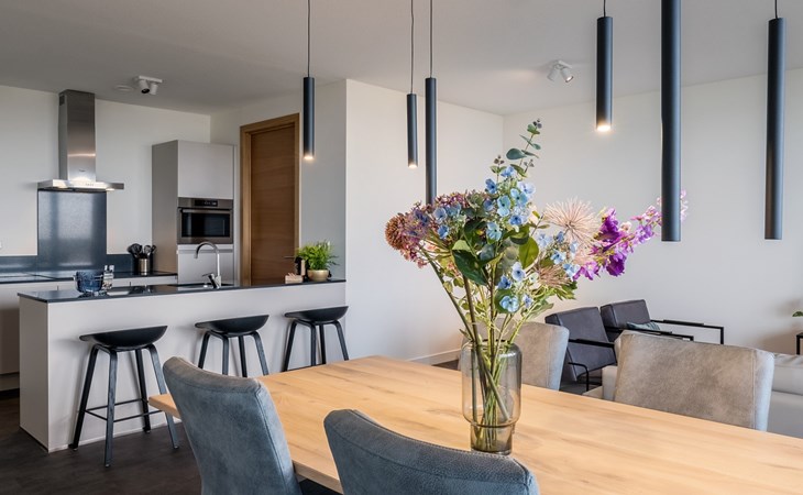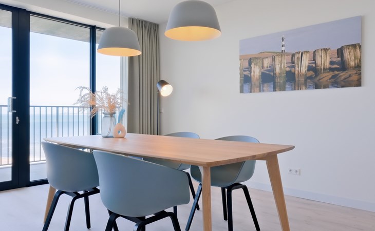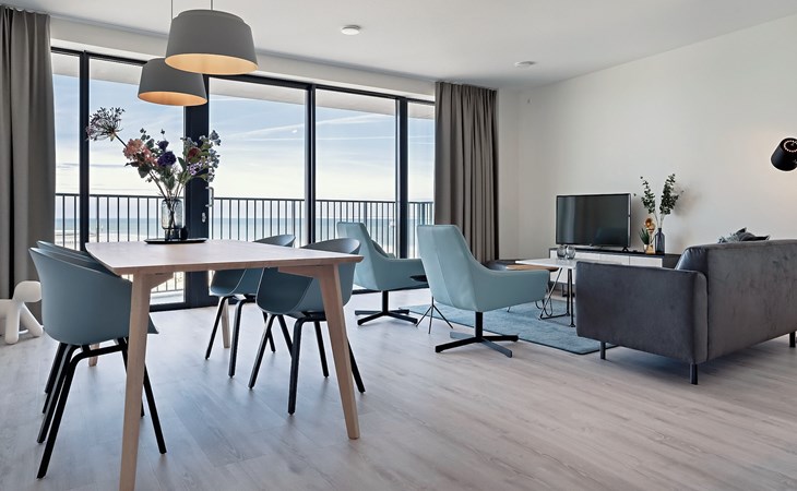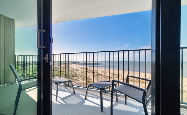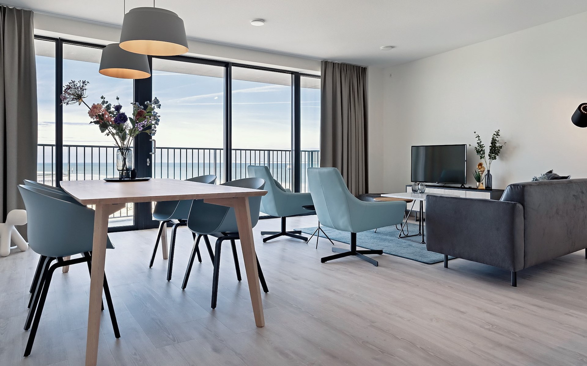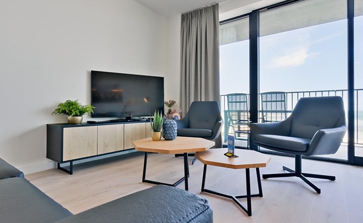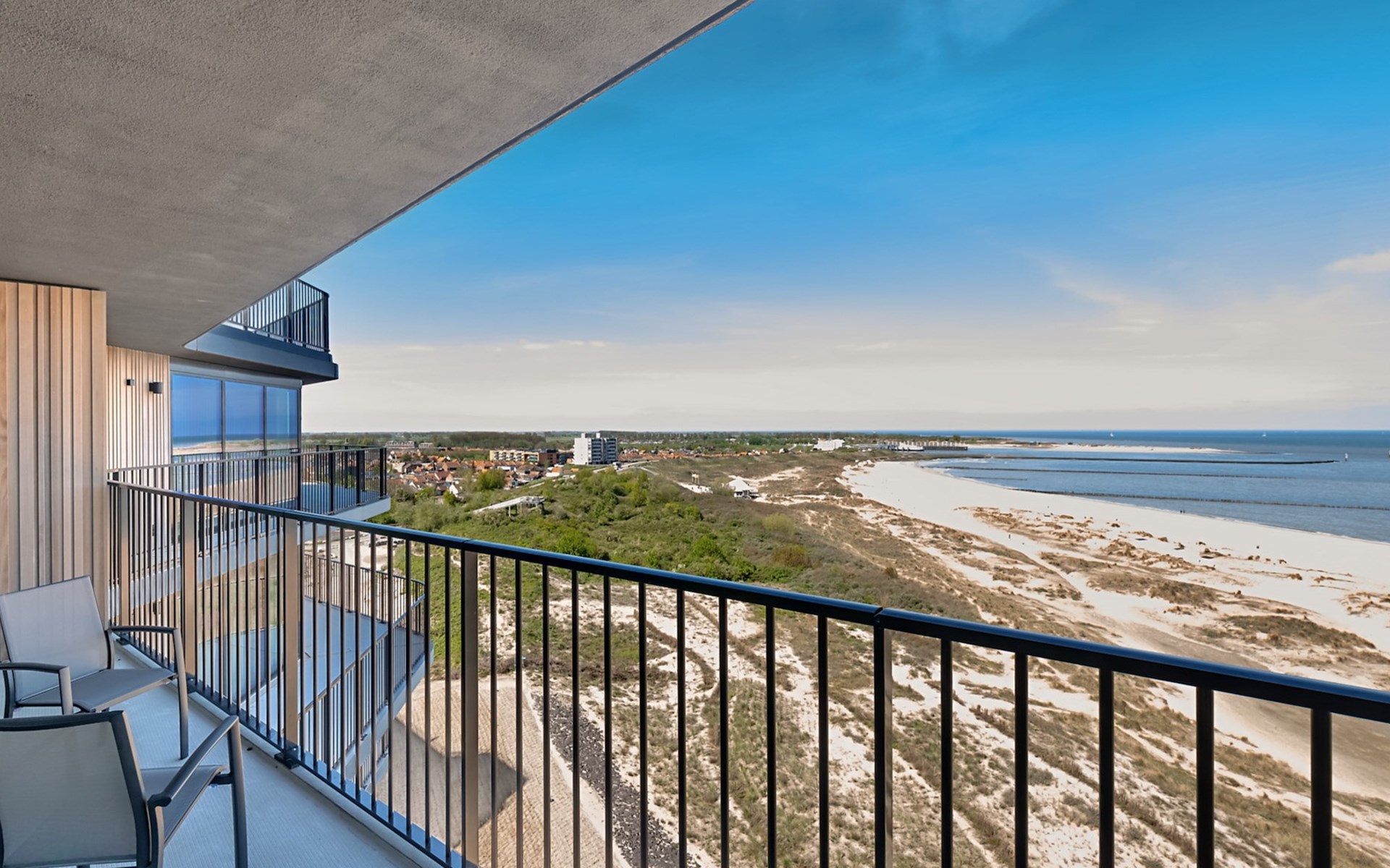 Verblijf in appartement Dunes Panorama met 2 slaapkamers en 2 badkamers bij Dormio Breskens Apartments & Penthouses! Dit moderne appartement heeft 2 balkons met een indrukwekkend uitzicht op onder andere de Noordzee en de duinen van Breskens. Het appartement is gelegen in het bovenste gedeelte van het gebouw (verdieping 6 tot en met 10) en is bereikbaar via zowel de trap als de lift. Appartement Dunes Panorama heeft een totale gebruiksoppervlakte van circa 98 m2.