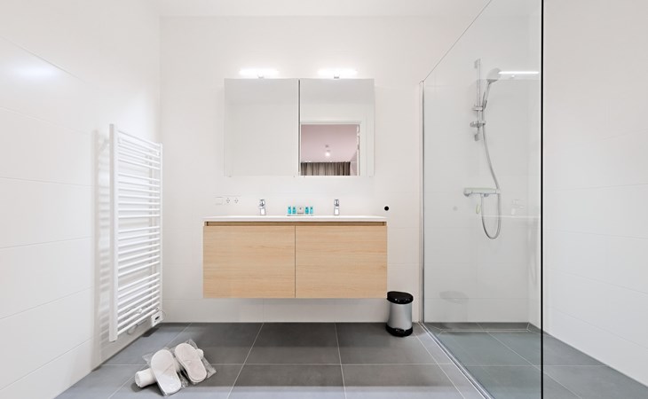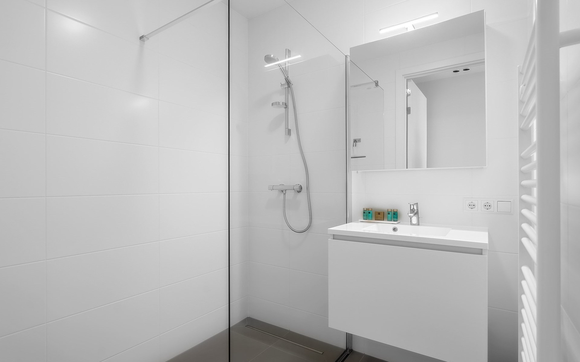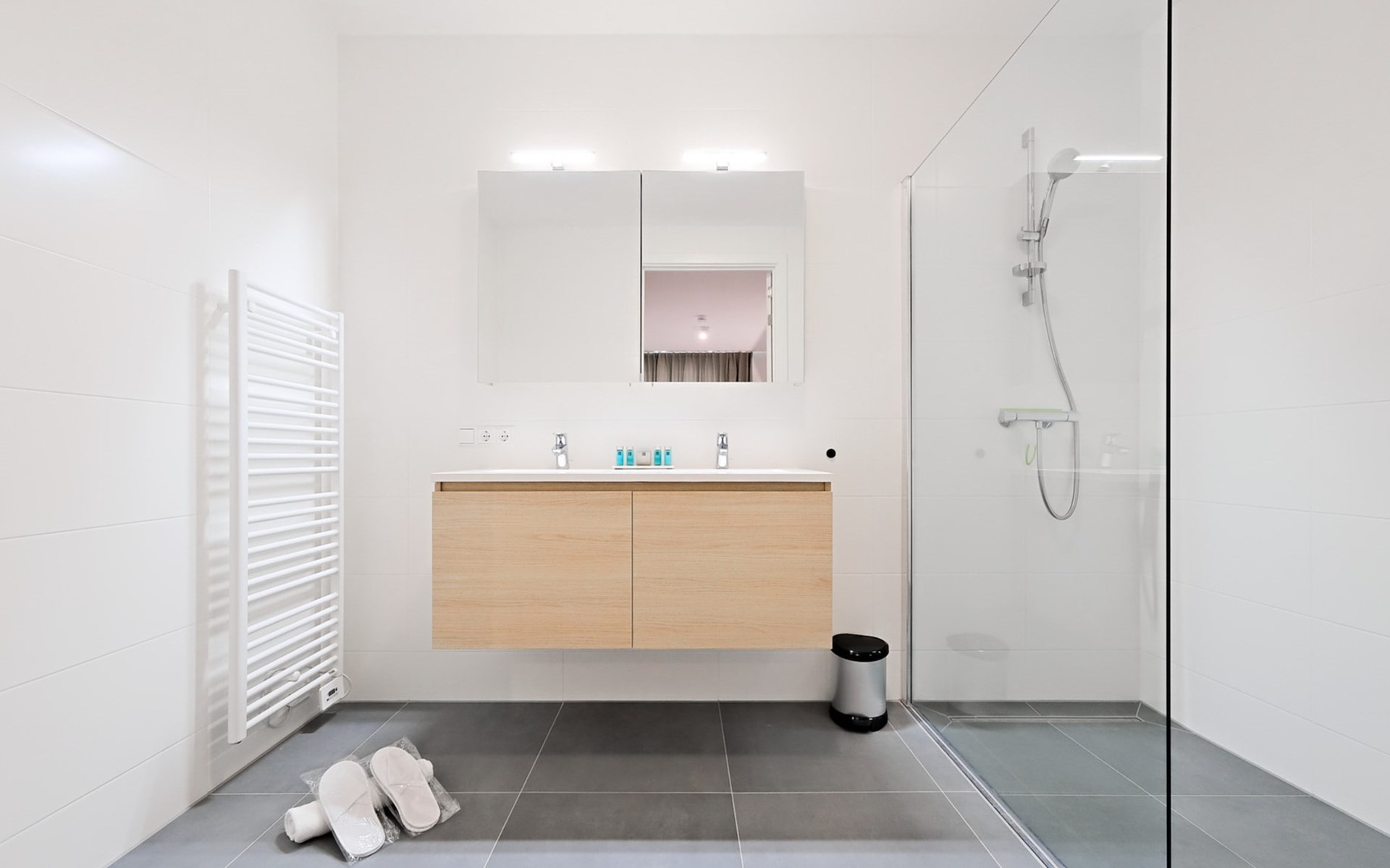 In het appartement bevinden zich verder 2 slaapkamers met elk een 2 1-persoonsbedden. Eén slaapkamer beschikt over een en-suite badkamer die is voorzien van een inloopdouche, dubbele wastafel en toilet. De tweede badkamer heeft een inloopdouche en een wastafel. Er is tevens een separaat toilet aanwezig.