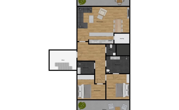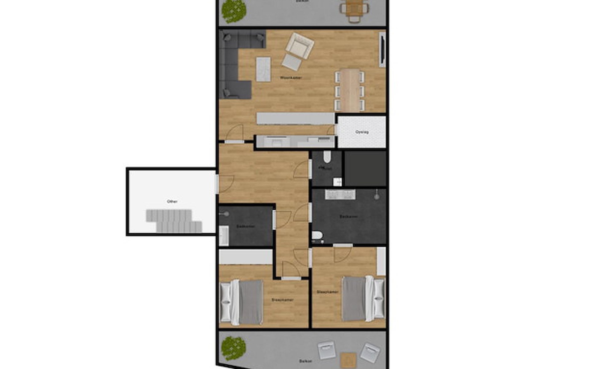 Het appartement heeft 2 balkons met terrasmeubilair. Via de woonkamer bereik je het balkon met een eetset en heb je uitzicht op de duinen en de Noordzee. Vanuit beide slaapkamers heb je toegang tot het tweede balkon, dat is voorzien van een comfortabel zitje en je uitzicht biedt op de haven van Breskens. Dé ideale plek om na te genieten van een heerlijk dagje uit!
