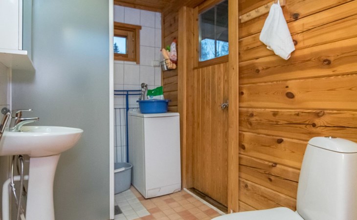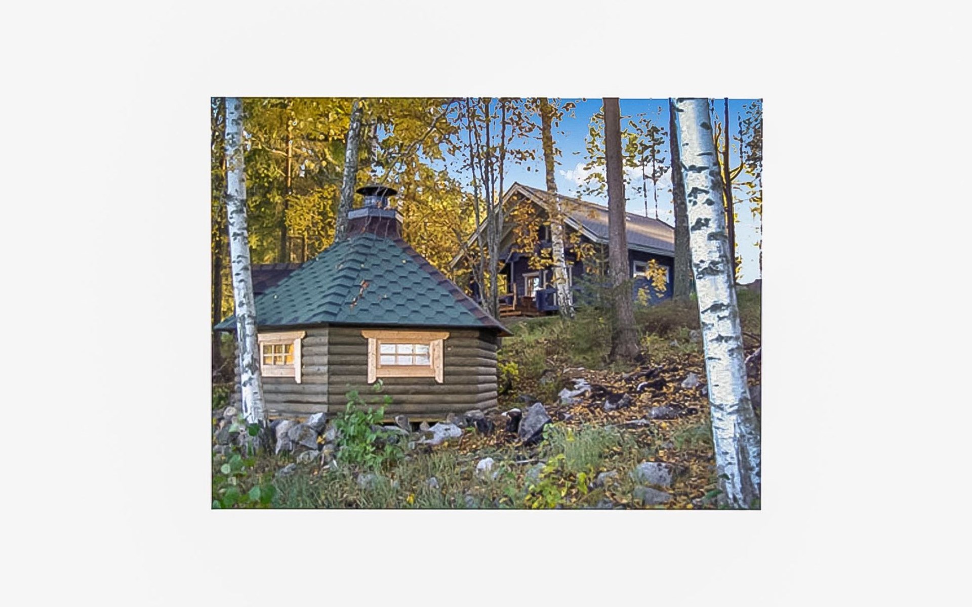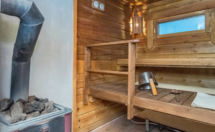 There is direct access from the sauna to the porch for cooling, the porch has a round log-made table group. The cabin does not have sun loungers.