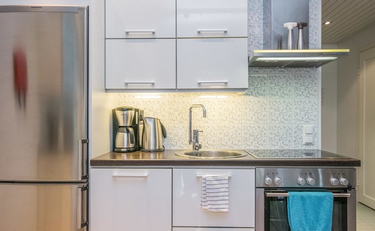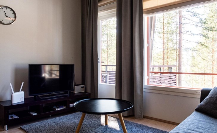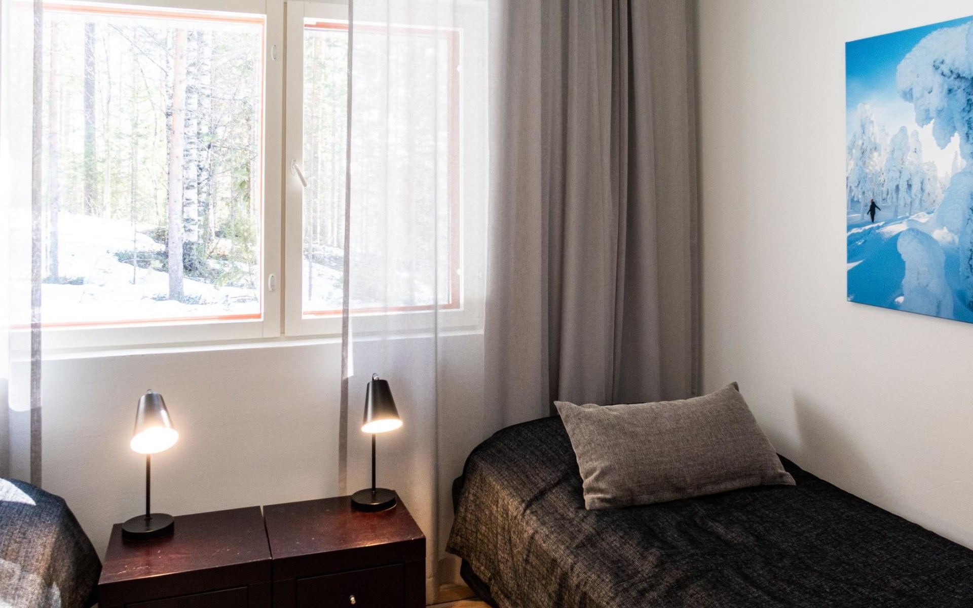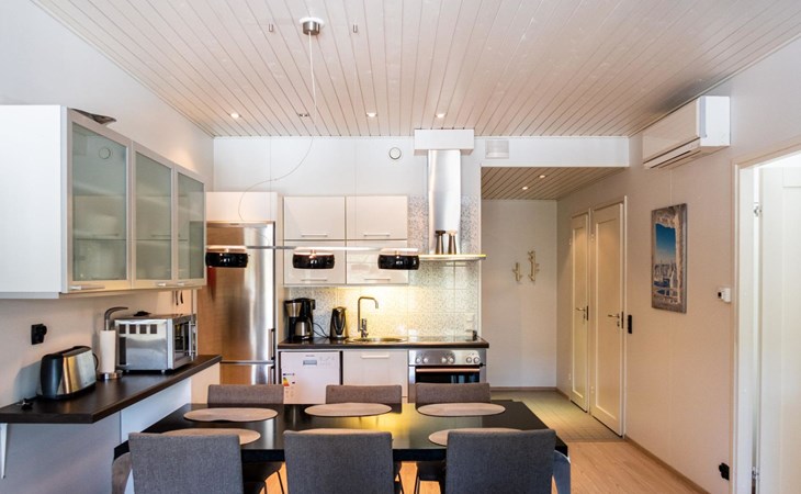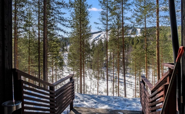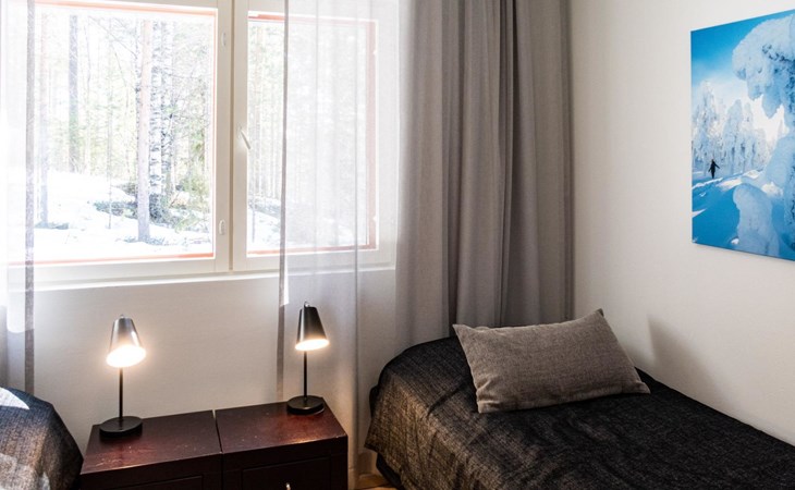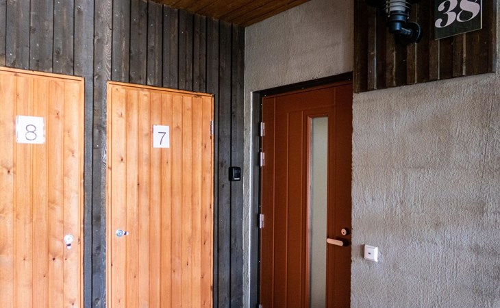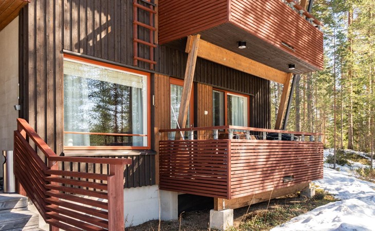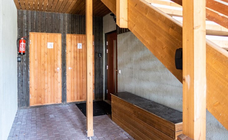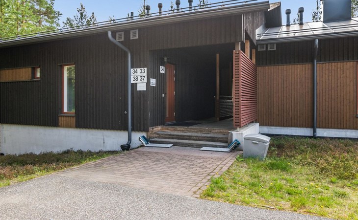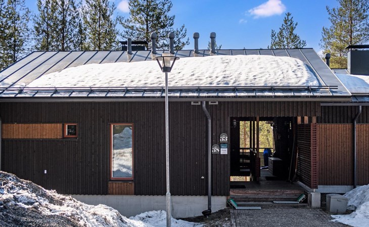 The house is built on a hill, so the entrance to the holiday apartment is in the luhti corridor, where you take the stairs down from the parking lot, the apartment is located at the end of the ground floor of the luhti house.