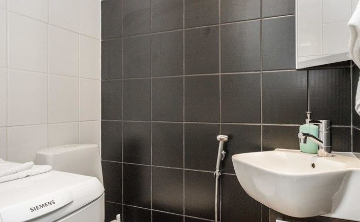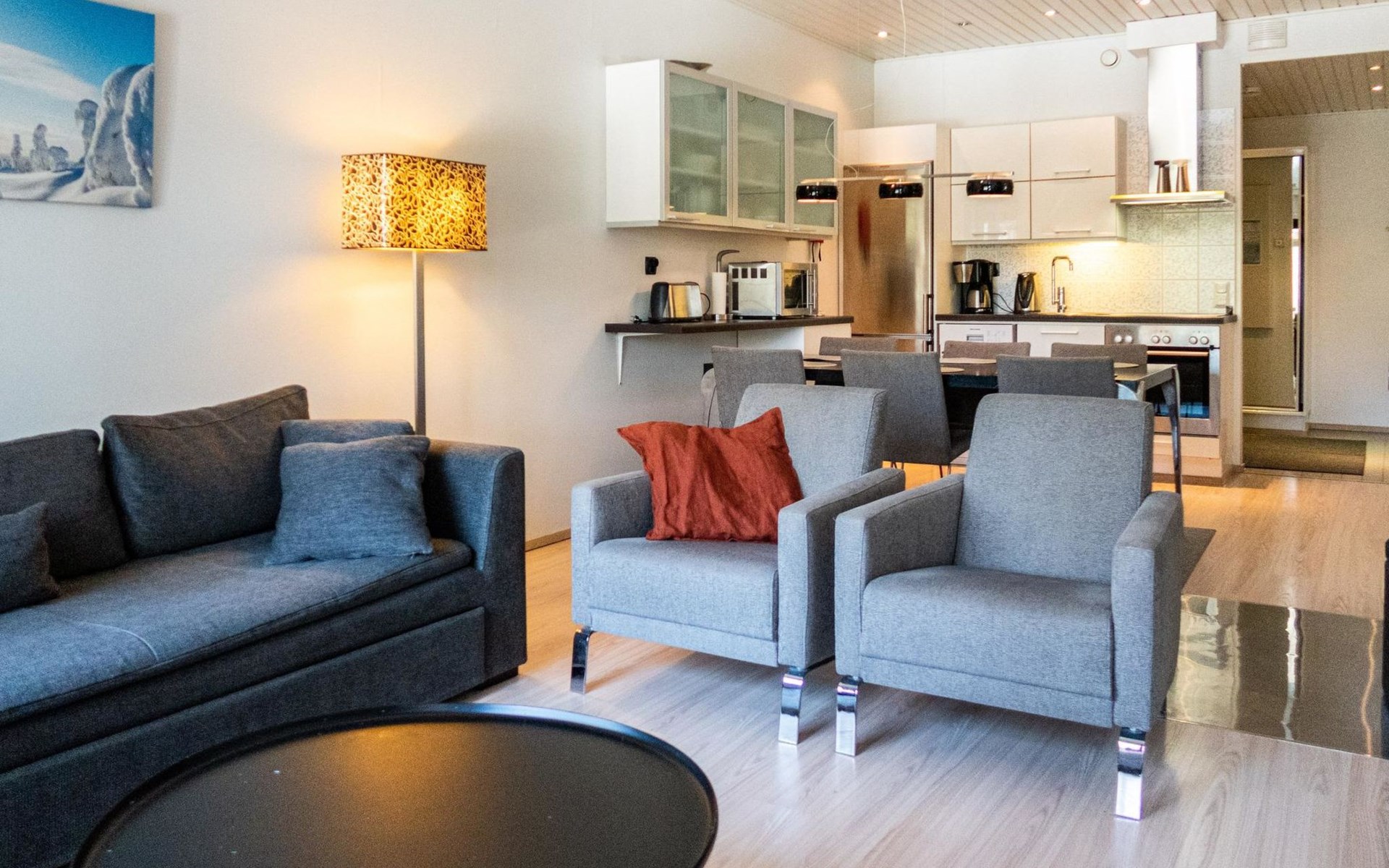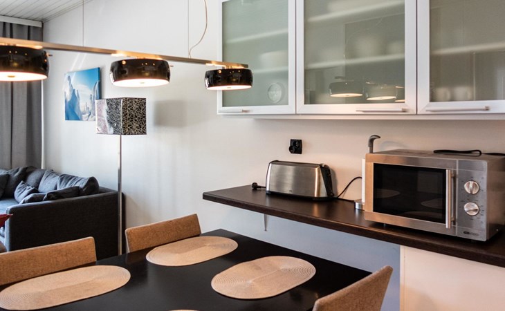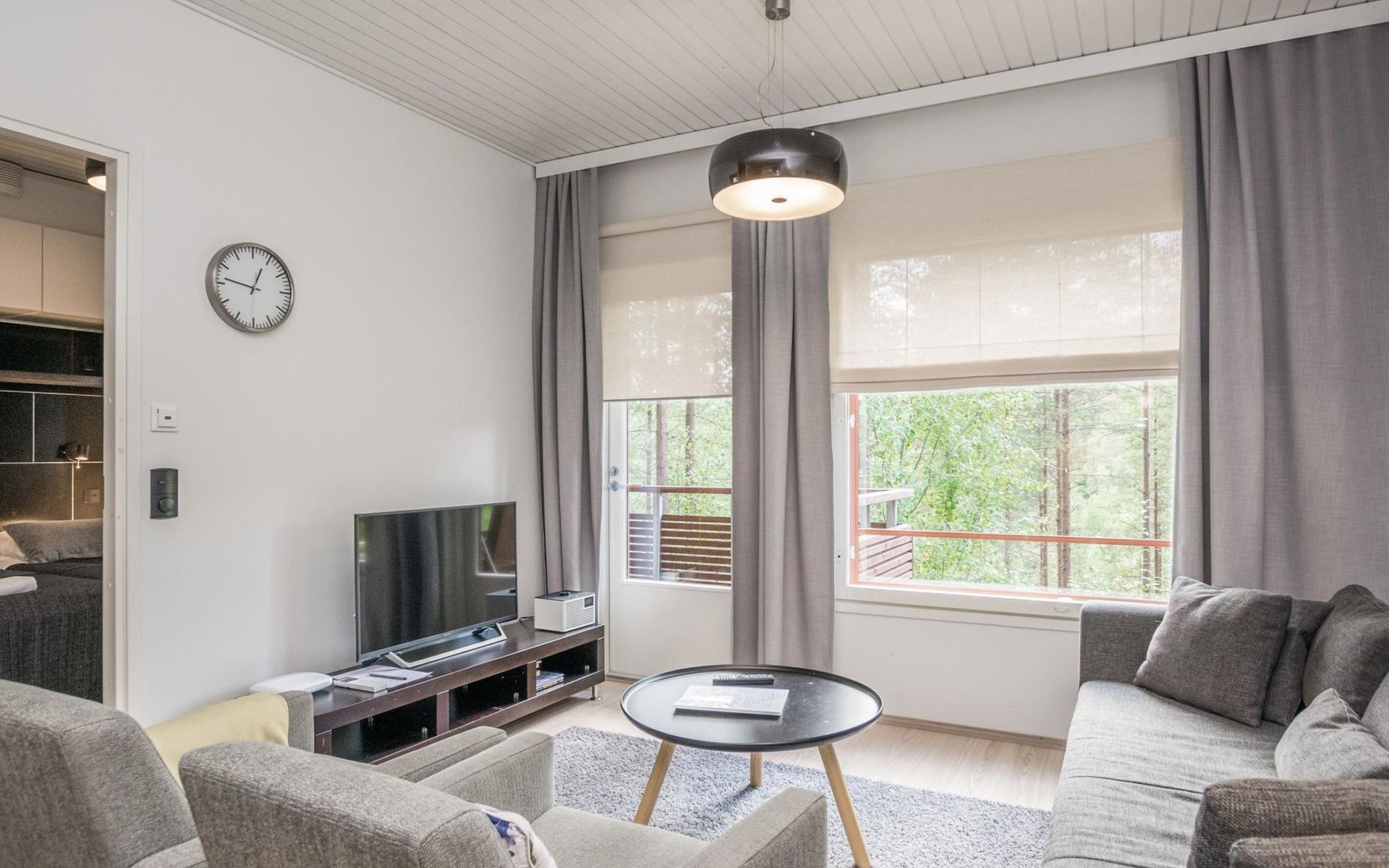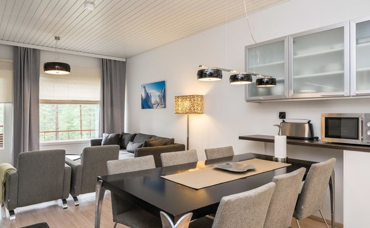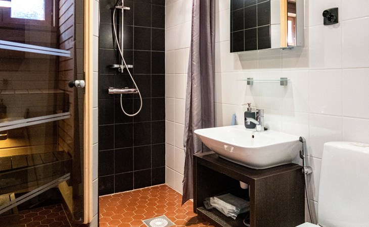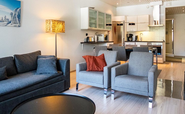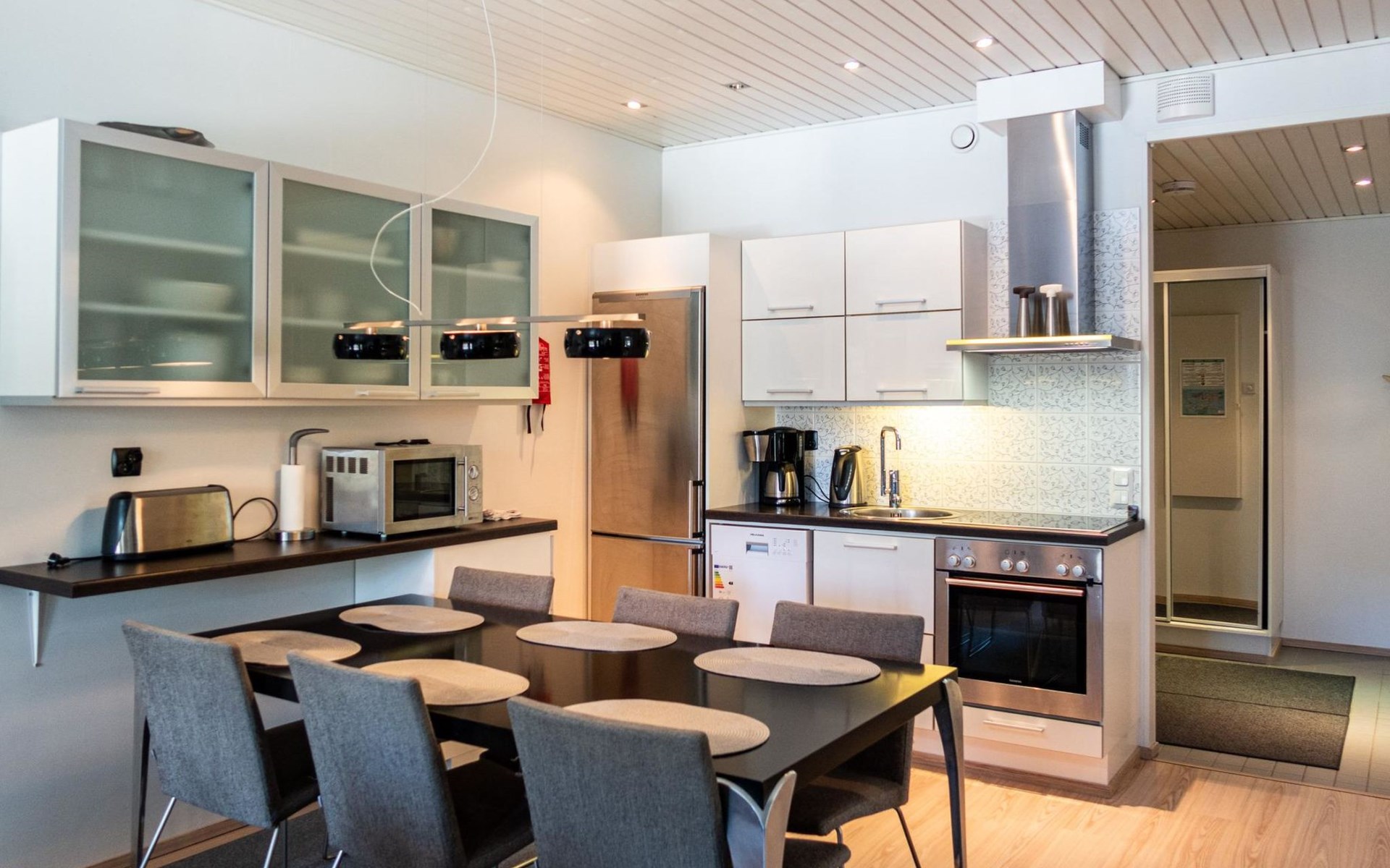 The house is built on a hill, so the entrance to the holiday apartment is in the luhti corridor, where you take the stairs down from the parking lot, the apartment is located at the end of the ground floor of the luhti house.