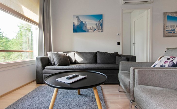 Extra details: Wi-Fi Wireless Internet -connection, 32" tv, dvd home theater system. Air conditioning. Kajaani 35 km, Sotkamo 7 km, Vuokatti slopes 400 m, walking rotes 400m.