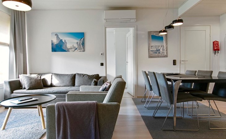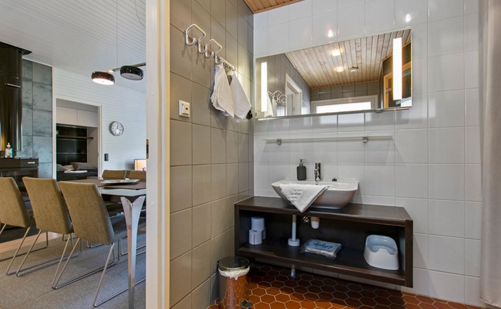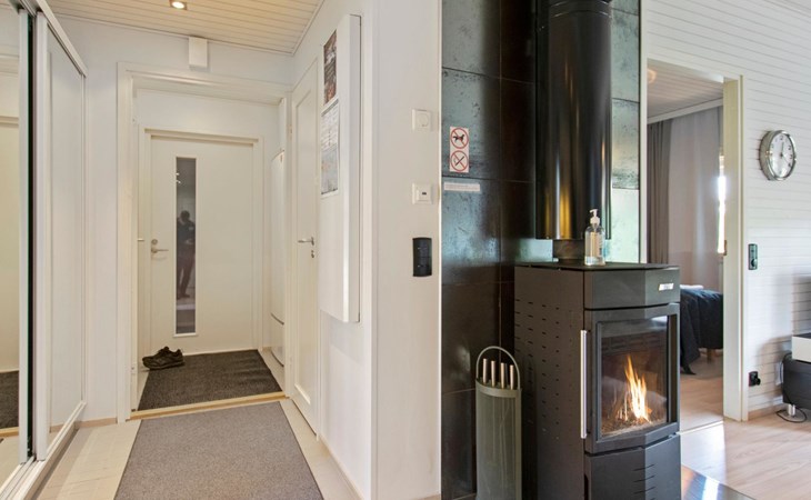 The house is built into the hillside, when apartment Haapala Suites 33 entrance is directly from the parking area. Apartment is located on the second floor middle in house. Ski maintenance room shared with other apartments. A lockable storage is located in the corridor of the house.