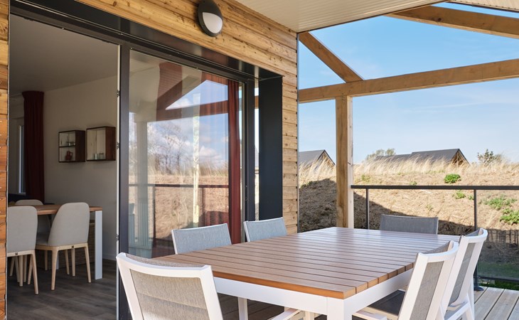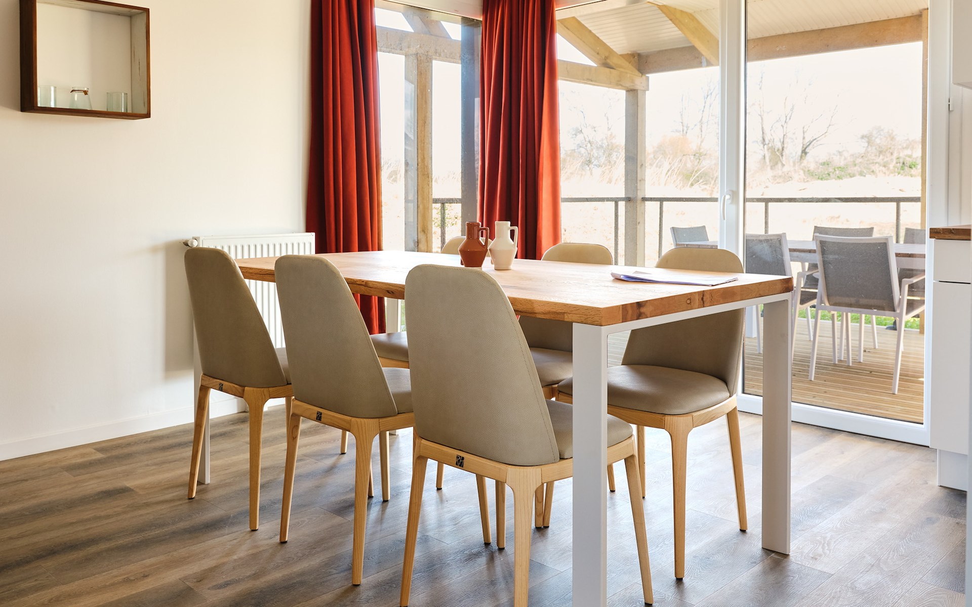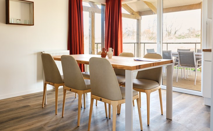 Geniet van een onbezorgd verblijf in de comfortabele en vrijstaande vakantiewoning Rhône! Maison Rhône is geschikt voor maximaal 6 personen en heeft 3 slaapkamers, 2 badkamers en een gebruiksoppervlakte van circa 80 m2. De moderne woning heeft een sfeervolle woonkamer met zithoek, eetgedeelte en toegang tot de veranda met zitje waar je het hele jaar door kunt zitten en genieten van je verblijf. De open keuken is uitgerust met luxe apparatuur.