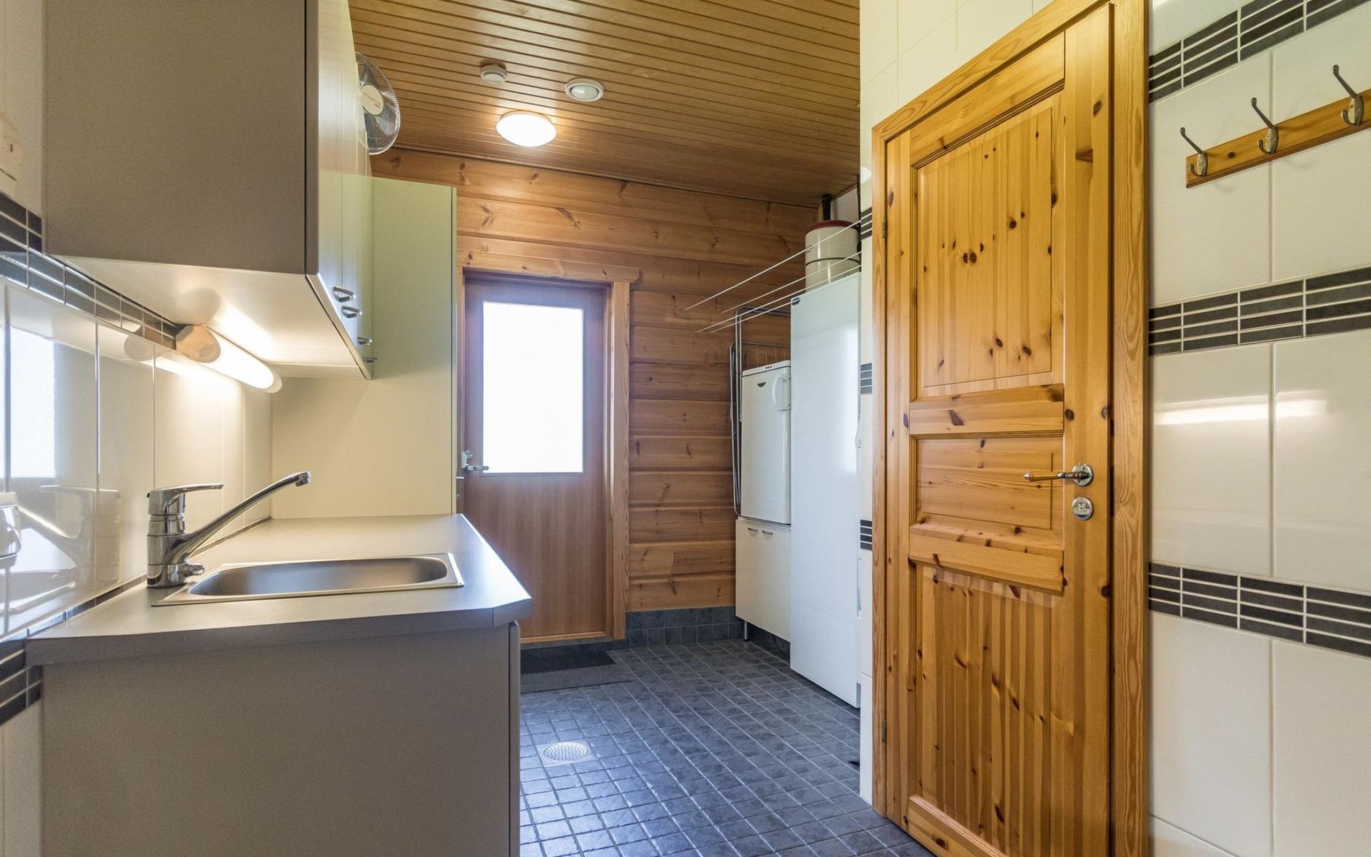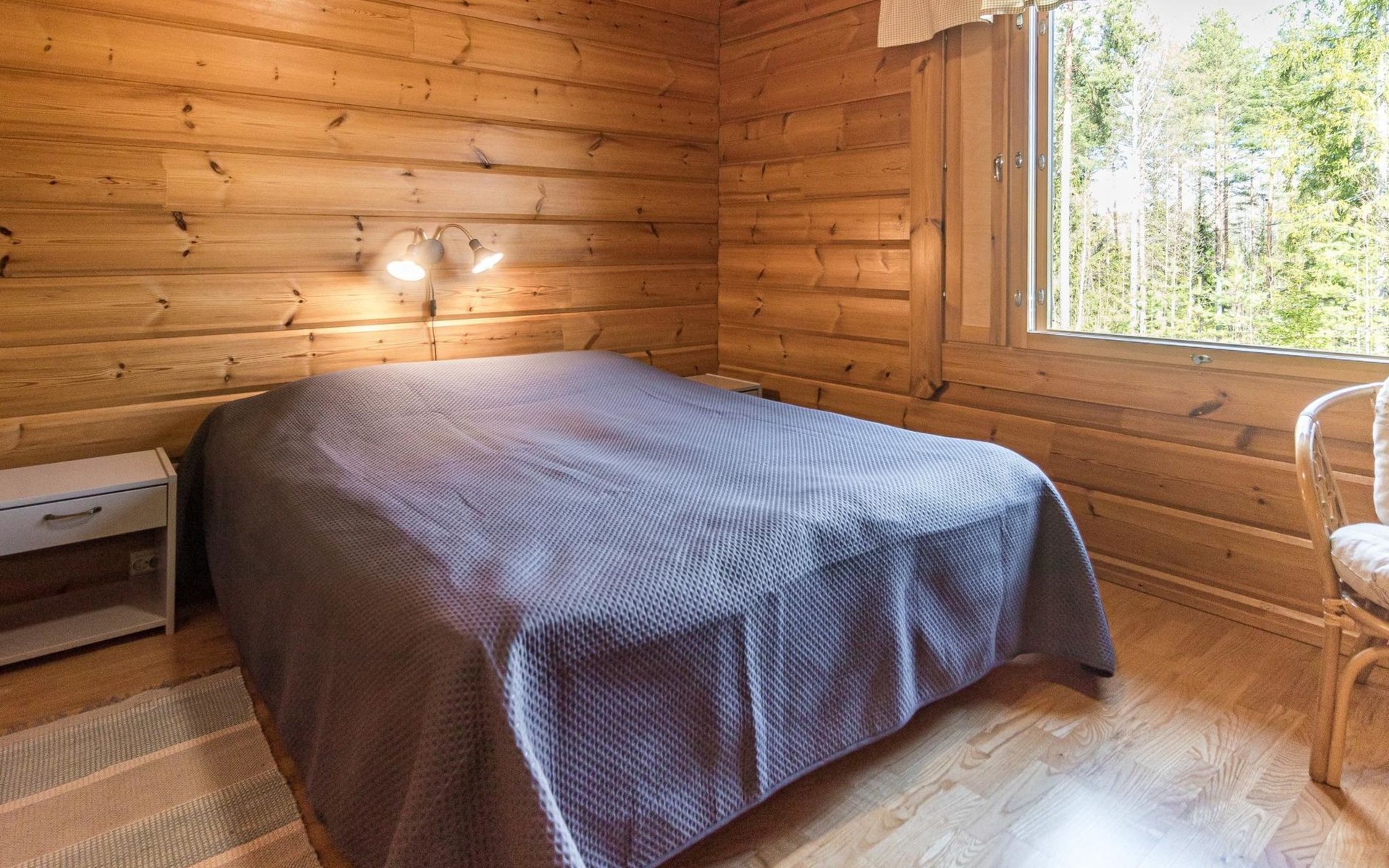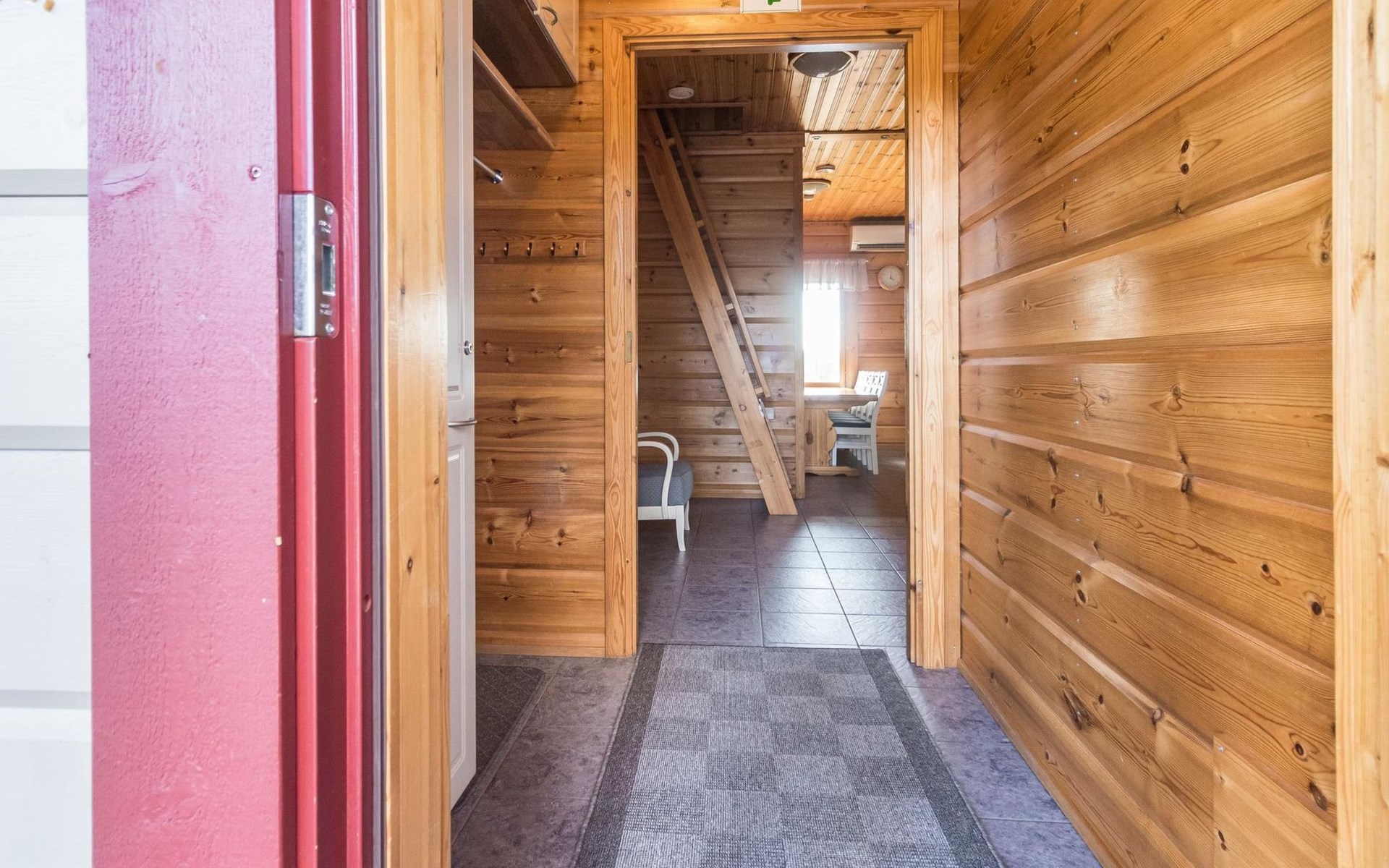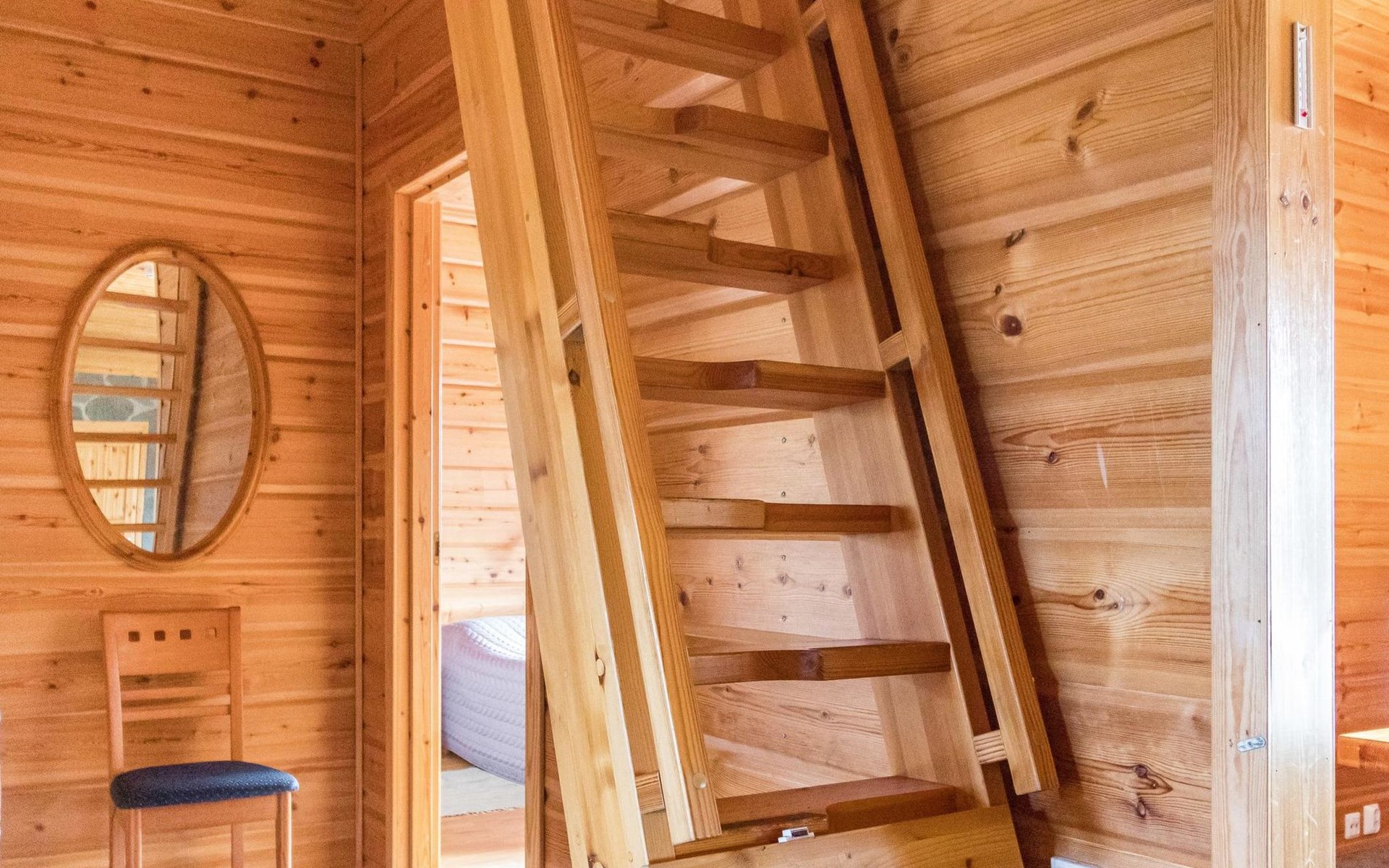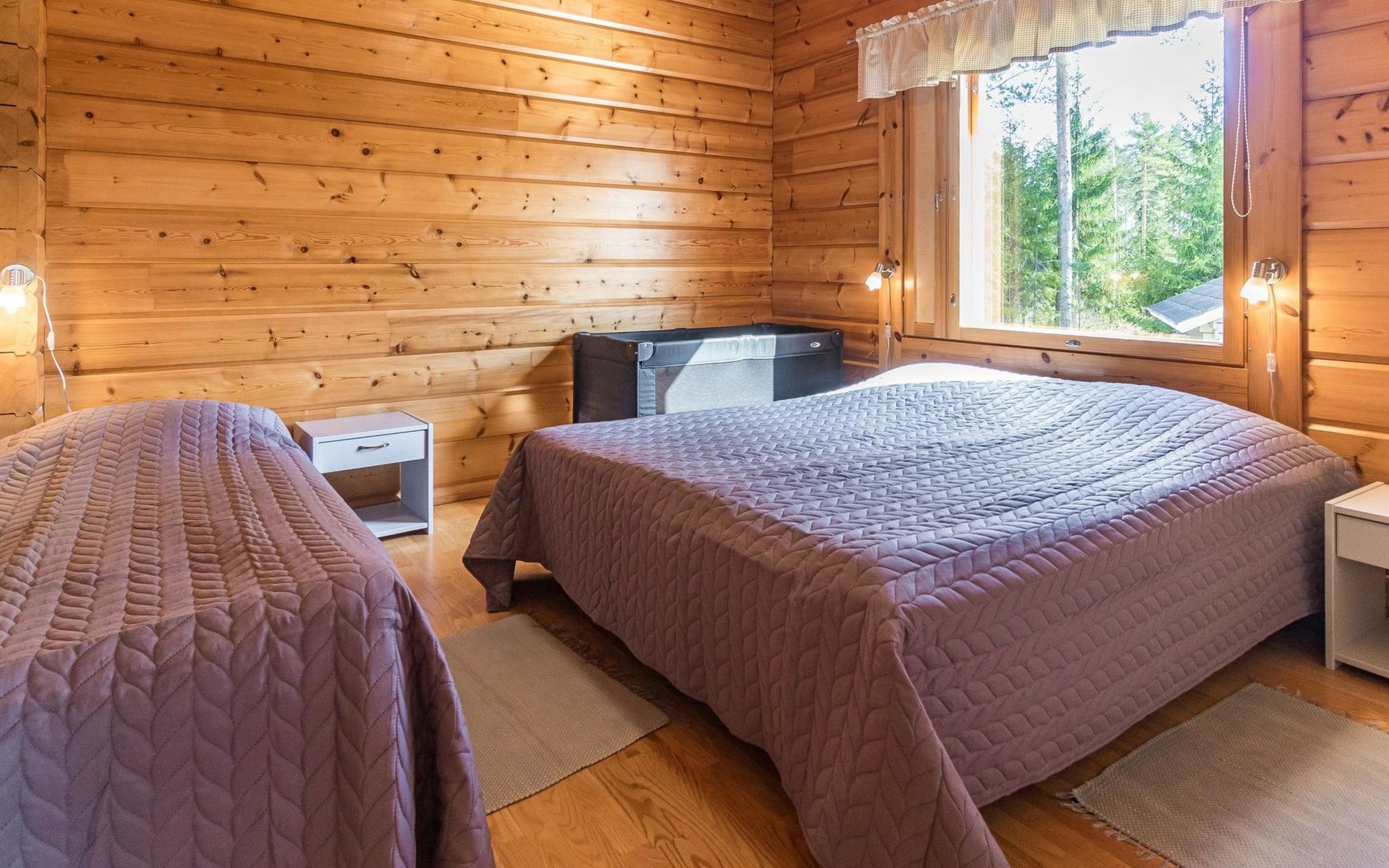 Wooden house 2007, kitchen, living room, bedroom 2 beds, 2nd bedroom 3 beds, 3rd bedroom 3 beds + cot, sleeping loft (20m²) 4 beds, utility room, washroom, sauna (electric stove) with 2 showers, roofed terrace. Steep stairs to loft. House has mechanical ventilation.