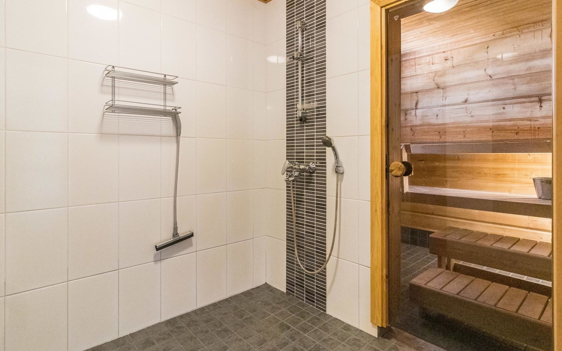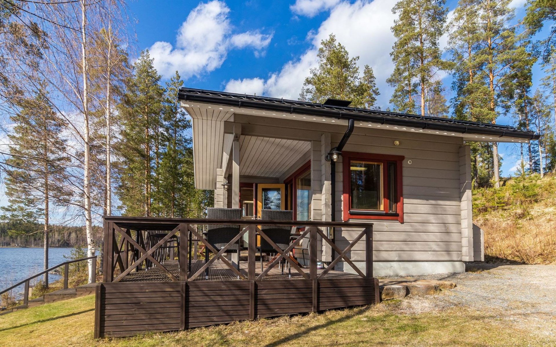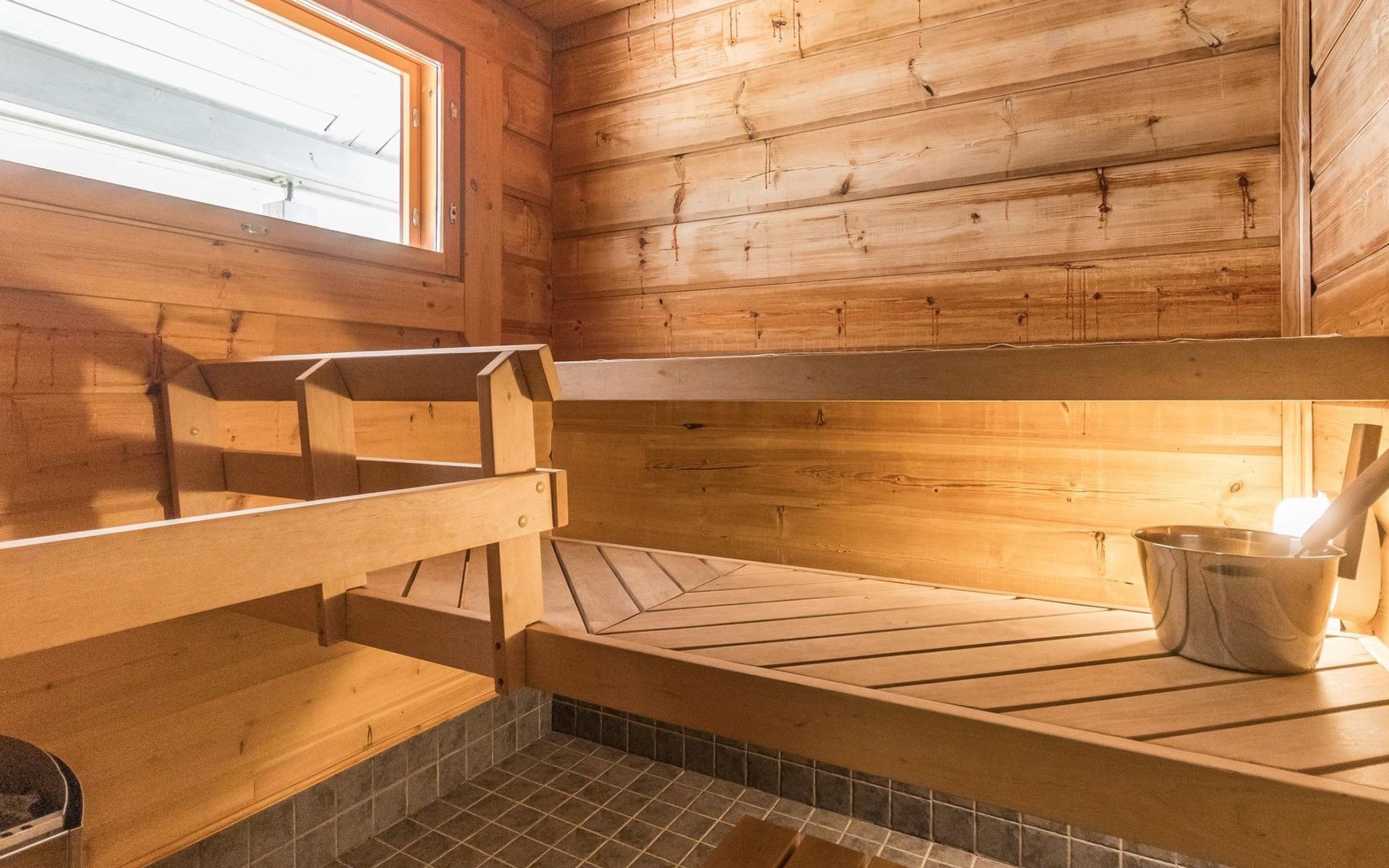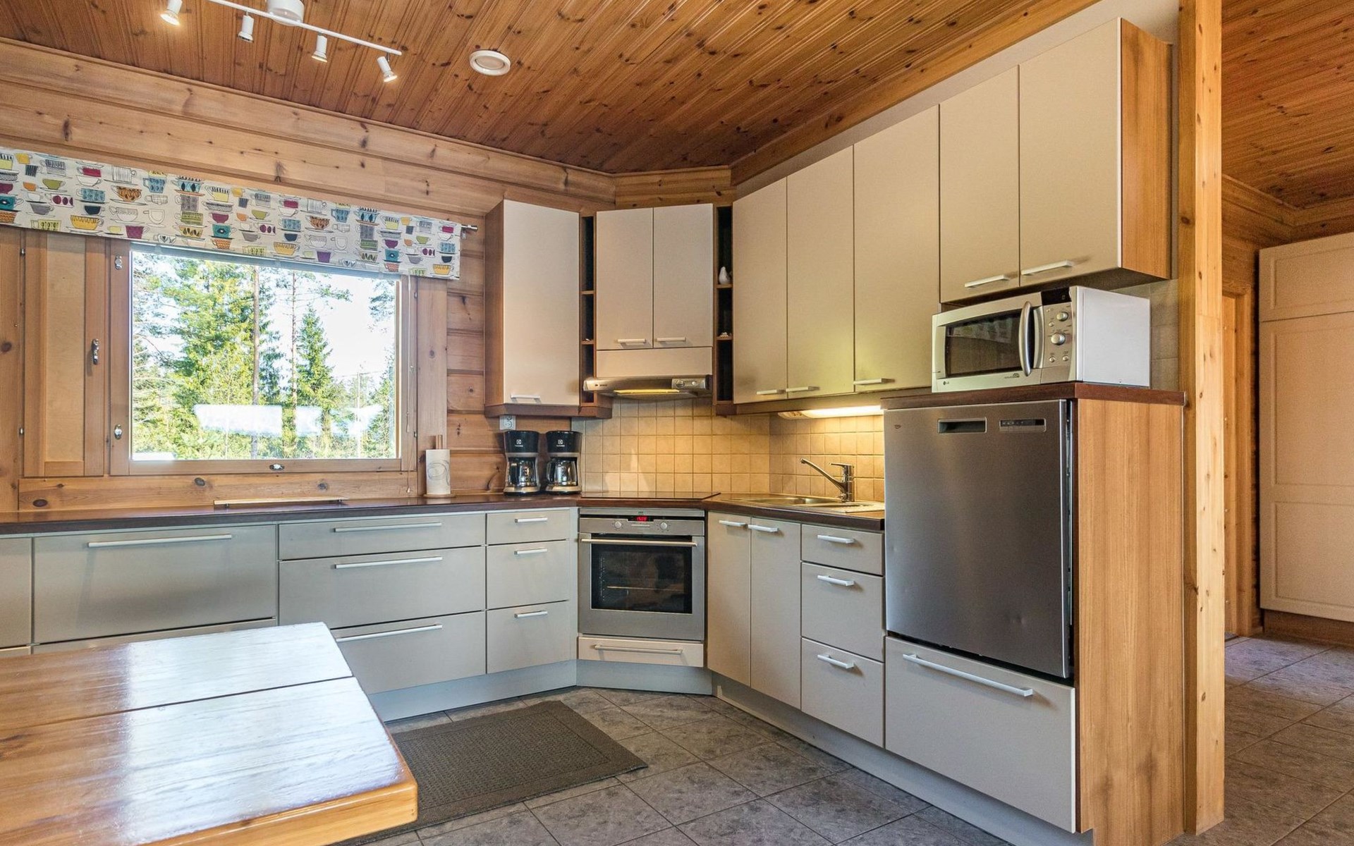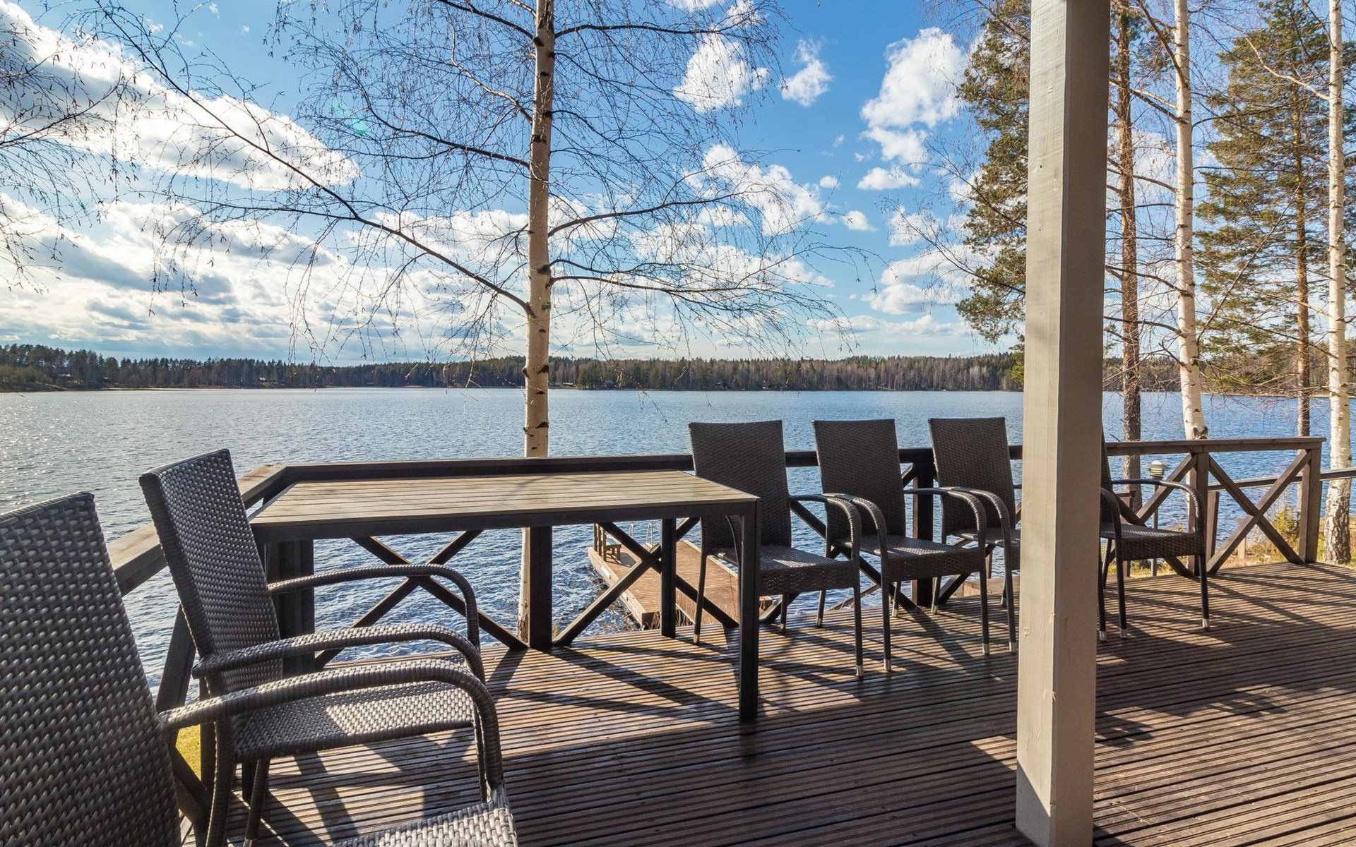 Wooden house 2007, kitchen, living room, bedroom 2 beds, 2nd bedroom 3 beds, 3rd bedroom 3 beds + cot, sleeping loft (20m²) 4 beds, utility room, washroom, sauna (electric stove) with 2 showers, roofed terrace. Steep stairs to loft. House has mechanical ventilation.