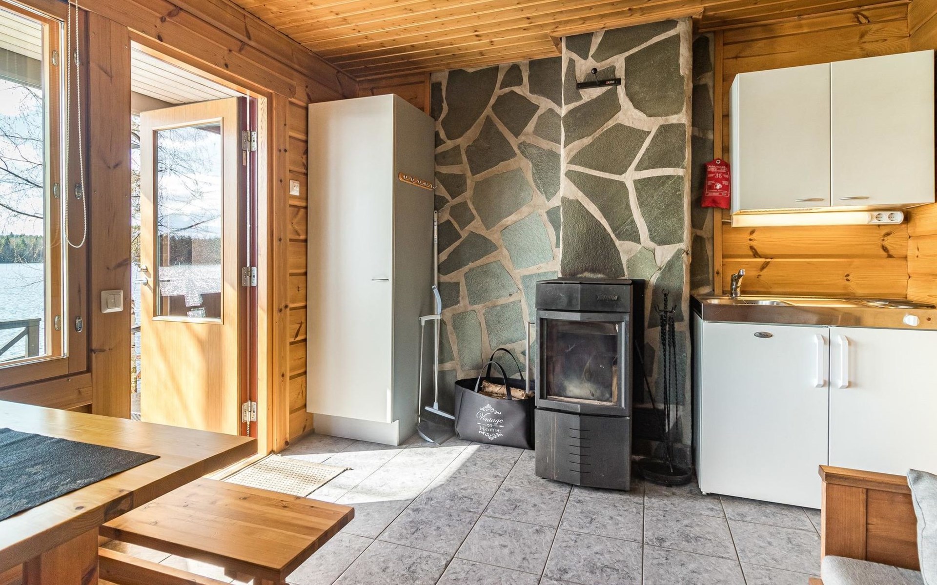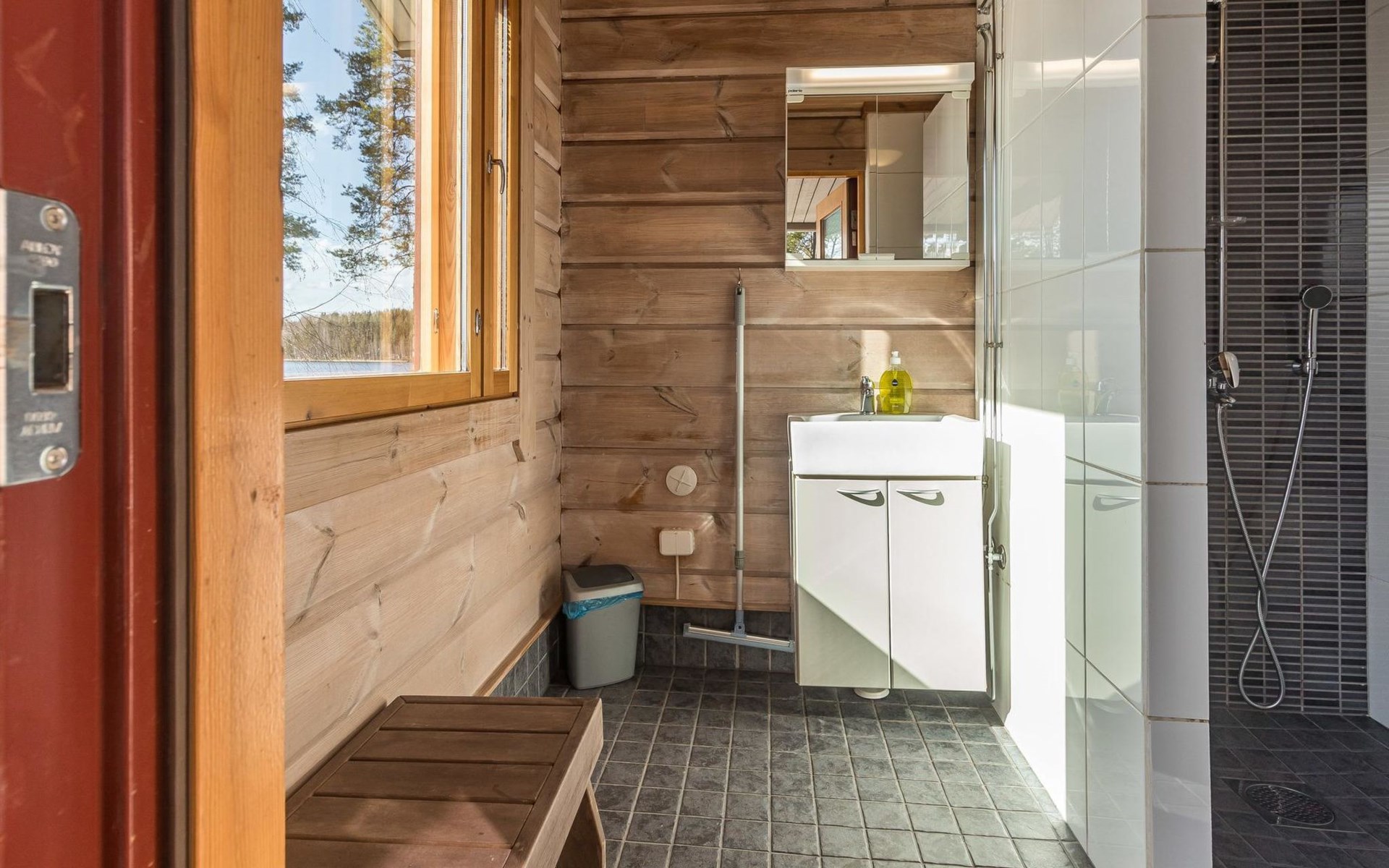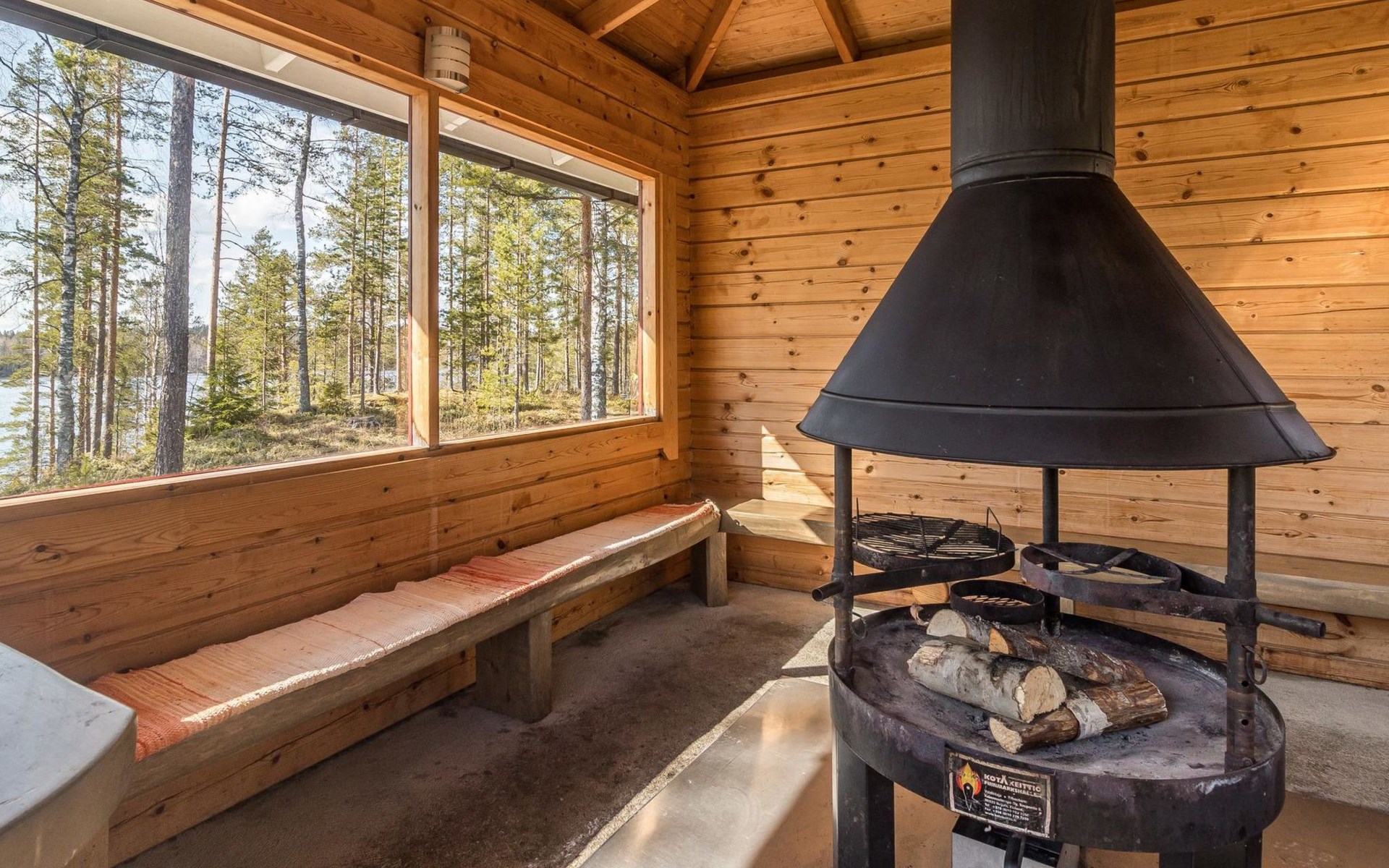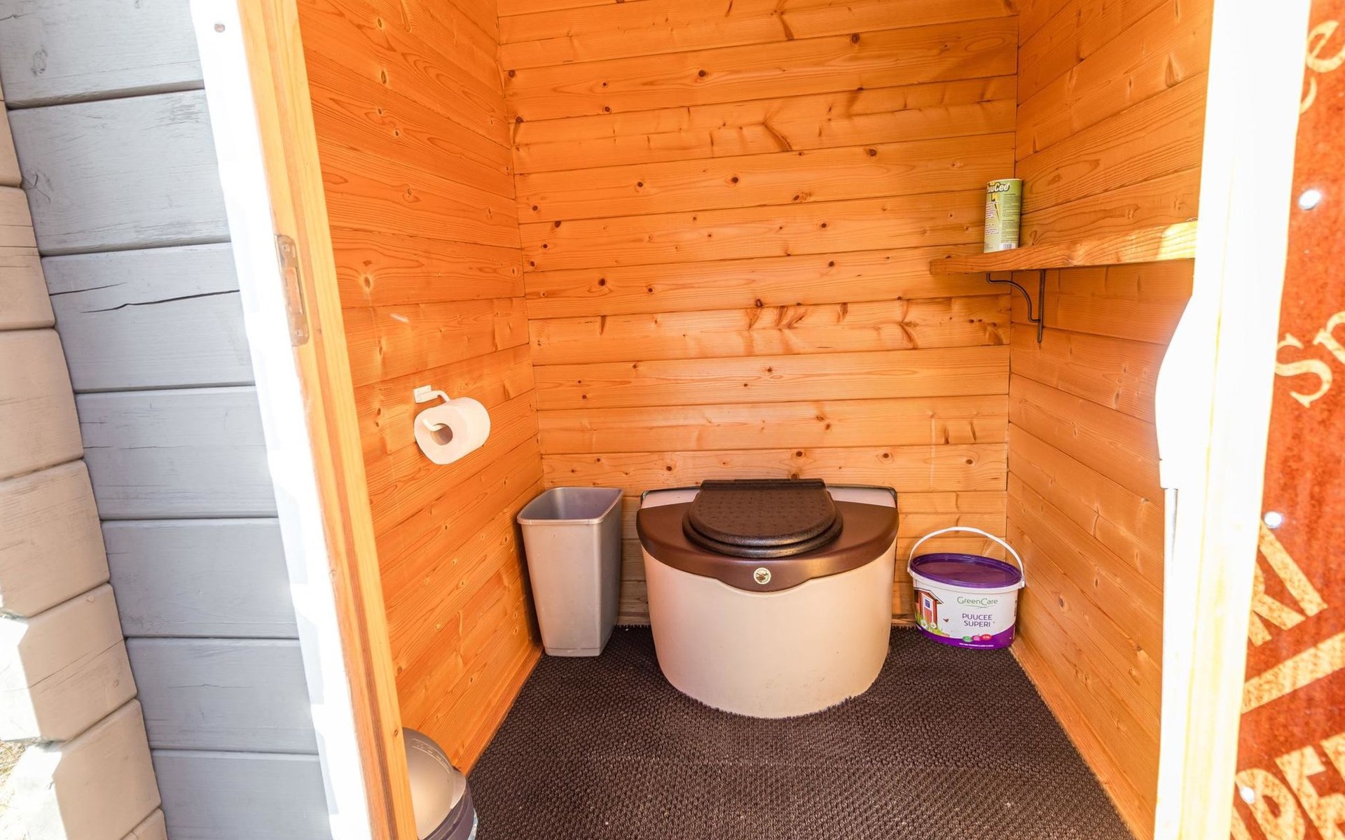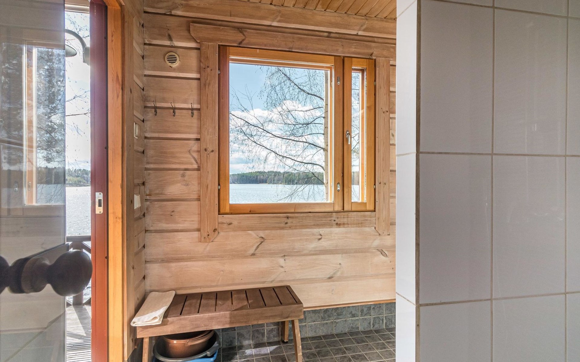 Separate sauna building (26,5m²) with wood-fired stove, cold and hot water from shower, dressing room, washroom, room with fireplace and toilet. Garage. Drying drum and satellit TV.