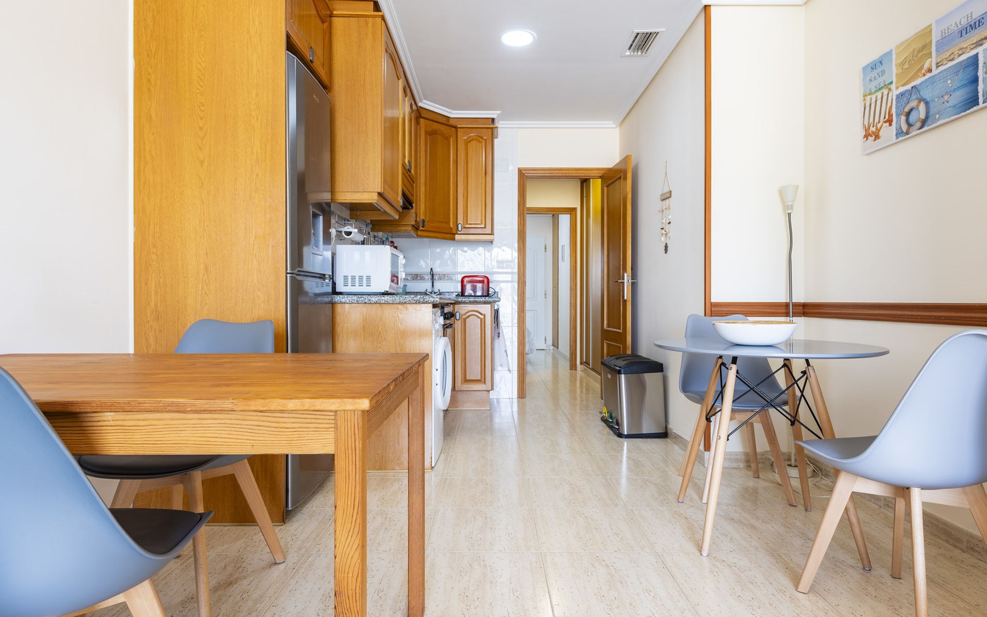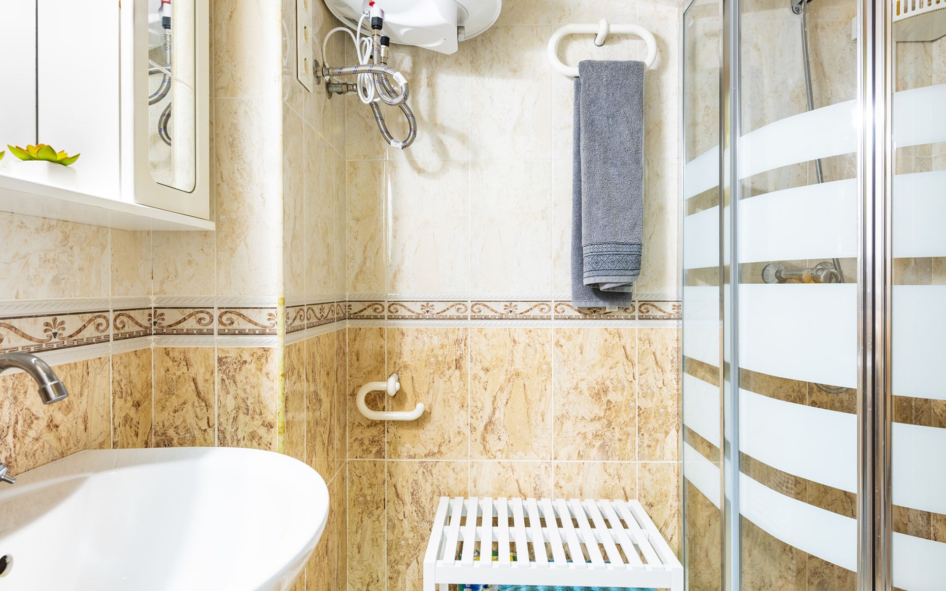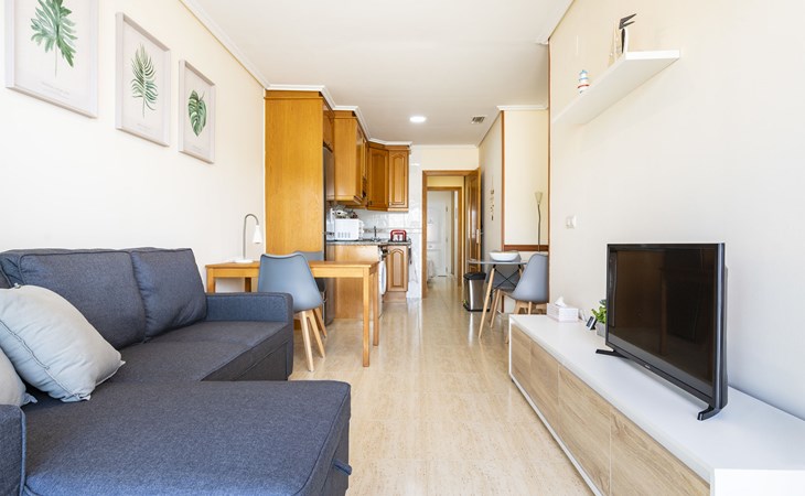 Flatgebouw "Grimaca". Centrale, drukke, zonnige ligging, 20 m van zee, 20 m van het strand. In het huis: lift. Trappenweg (14 treden) naar het huis. Supermarkt, restaurant, bar, café 10 m, bushalte 50 m, treinstation 1 km, zandstrand "Playa Concha" 20 m. Groepen jongeren uitsluitend op aanvraag. De omgeving is gevoelig voor geluidsoverlast. Gelieve geen lawaai te maken en de rust te bewaren.