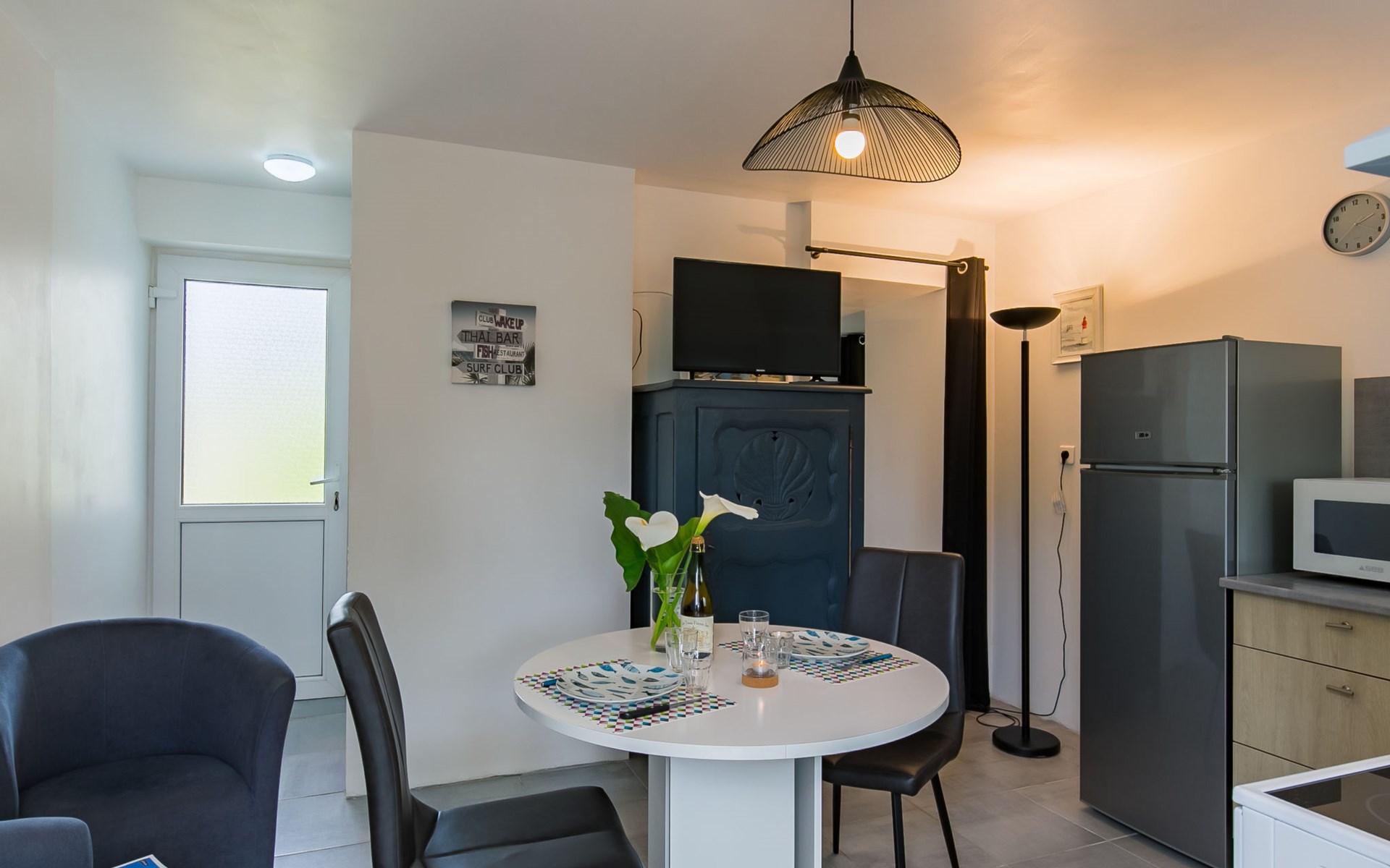 Kleine twee onder één kap woning "Terre et Mer". In de wijk Moulin de la Rive, 2.5 km van het centrum van Locquirec, 3.5 km van het centrum van Guimaec, 19 km van het centrum van Morlaix, van zee, 250 m van het strand. Voor alleengebruik: terrein 60 m2 (omheind) met gazon en planten. In het huis: bergruimte voor fietsen, wasmachine, droger (voor medegebruik). Parkeerplaats op het terrein. Winkel 2 km, supermarkt 6 km, restaurant 3 km, bakkerij 3 km, bushalte "Moulin de la Rive" 200 m, zandstrand "Moulin de la Rive" 250 m. Golfterrein (18 holes) 3.2 km, surfschool 250 m, zeilschool 6 km, manege 17 km, wandelroutes 10 m vanaf het huis. Attracties in de buurt: Cairn de Barnenez 19 km, Lannion 25 km, Ploumanac'h - Côte du Granit Rose 39 km, Roscoff et Jardin exotique, Île de Batz 45 km, Vallée des Saints (Carnoet) 45 km, Oceanopolis Brest 75 km. Wandelgebied GR34, sentier des douaniers 250 m. Object referentie: FR2967.644.1 is gelegen op hetzelfde terrein.