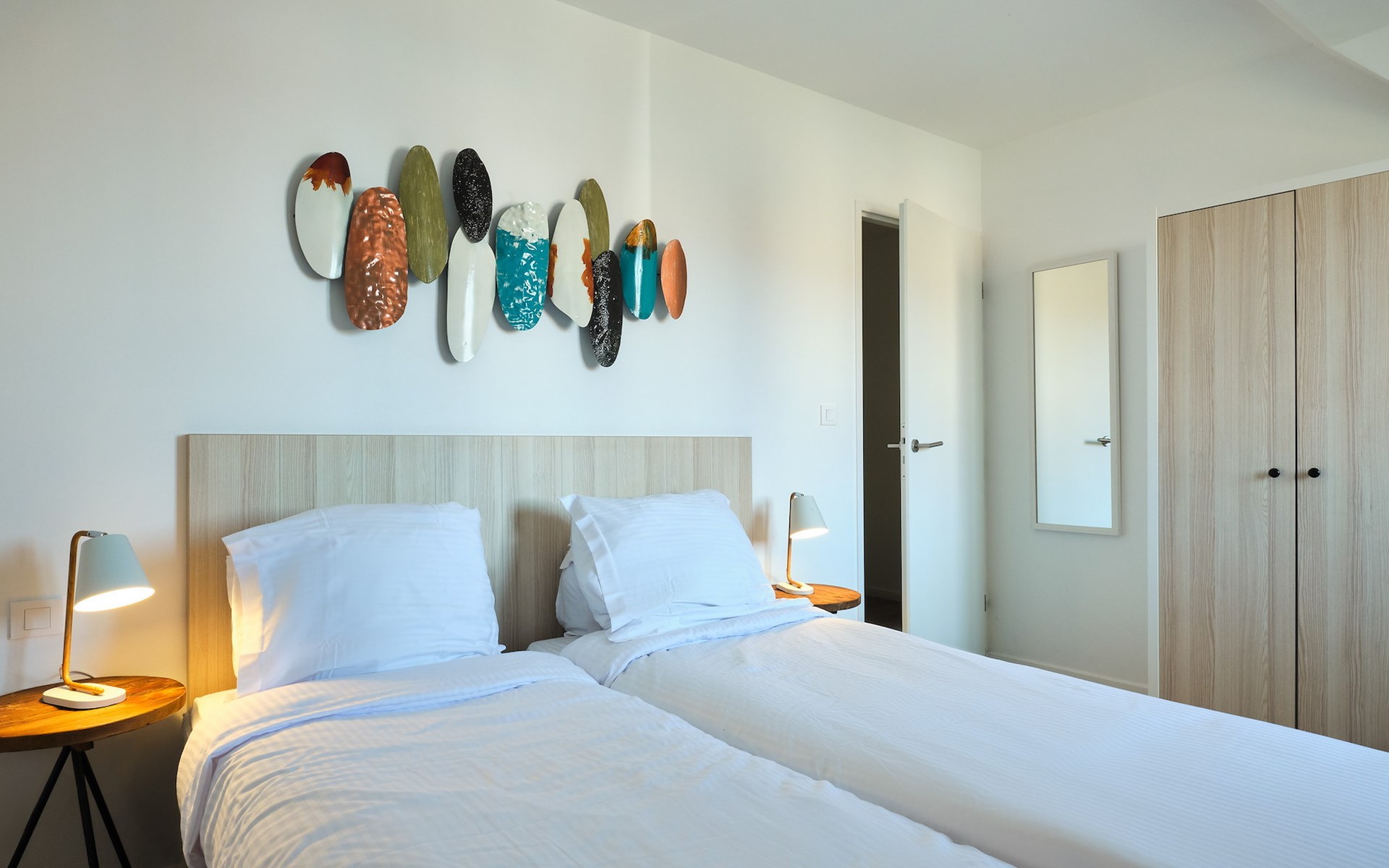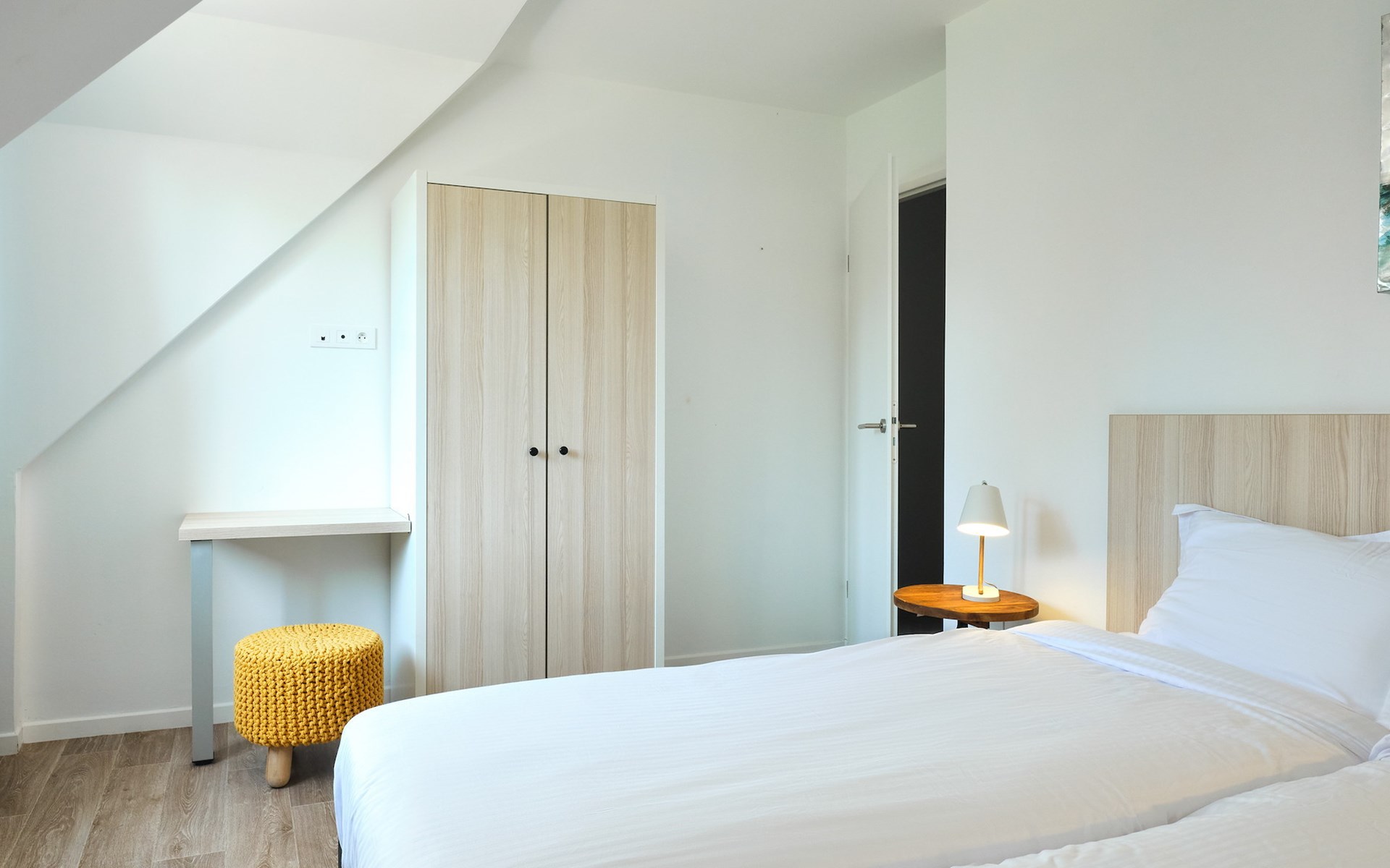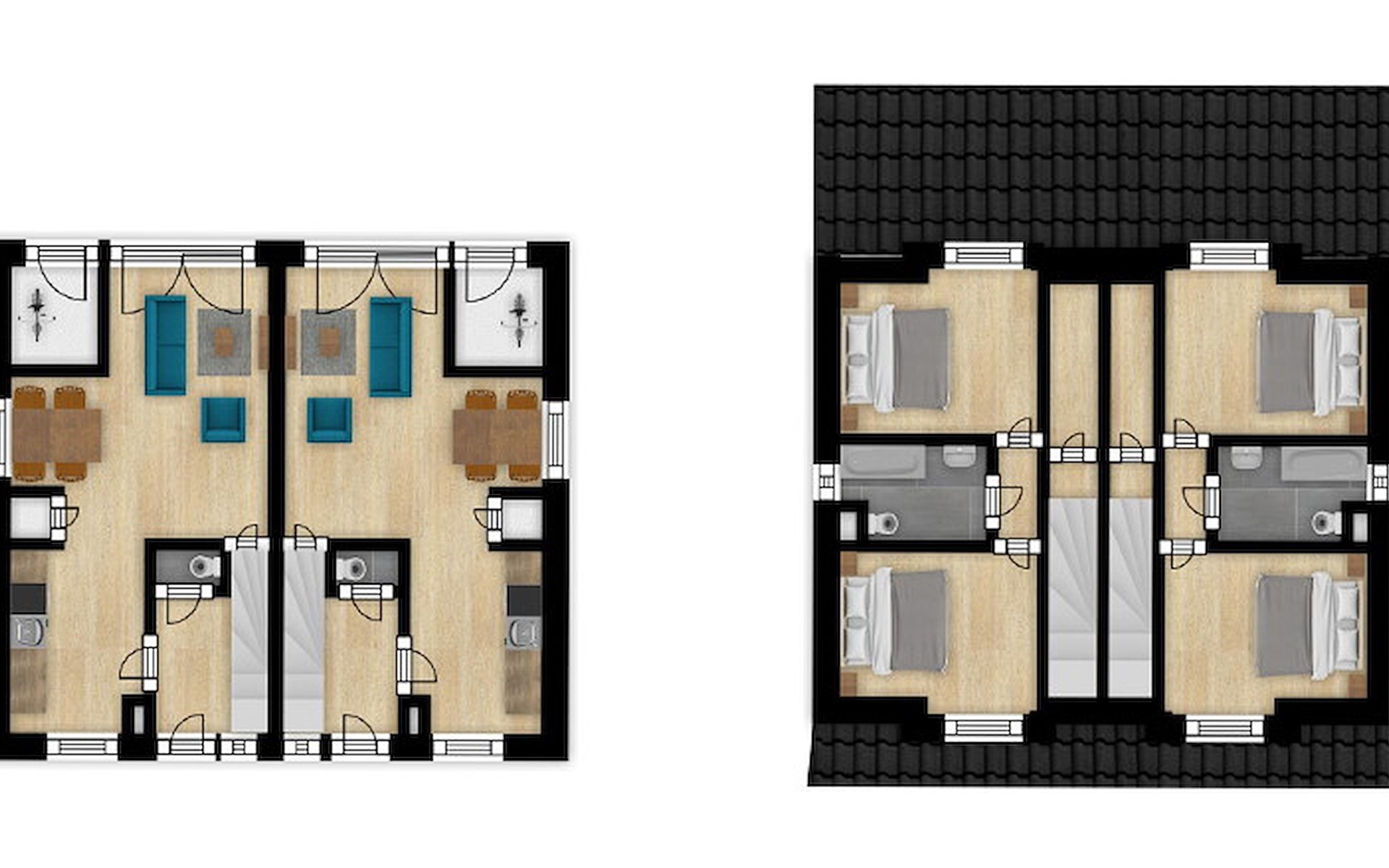 Op de eerste verdieping vind je 2 slaapkamers die voorzien zijn van 2 éénpersoonsbedden. Ook is er een badkamer met een comfortabel ligbad, douche, wastafel en toilet.