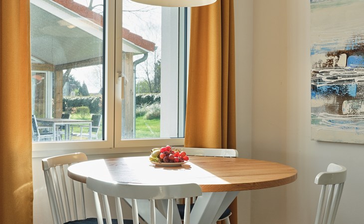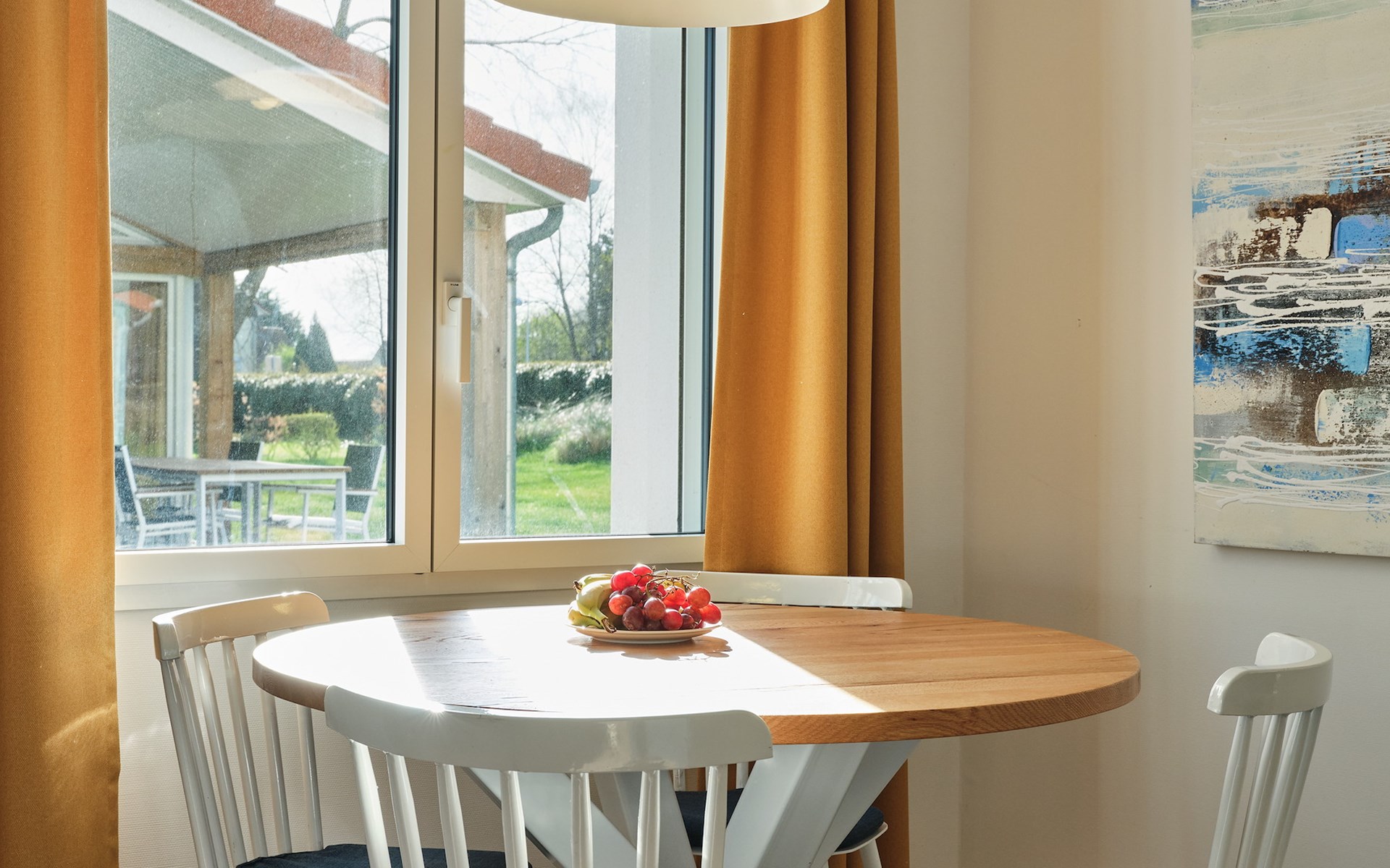 Verblijf in de comfortabele twee-onder-één-kapwoning Saône. Deze woning is geschikt voor maximaal 4 personen en heeft een gebruiksoppervlakte van circa 70 m2. Maison Saône bestaat uit een gezellige woonkamer met zithoek, tv en eetgedeelte met openslaande deuren die je toegang geven naar een overdekt terras met zitje waar je kunt genieten van het buitenleven. Daarnaast is er een open keuken die van alle gemakken is voorzien. Ook is er een separaat toilet aanwezig.