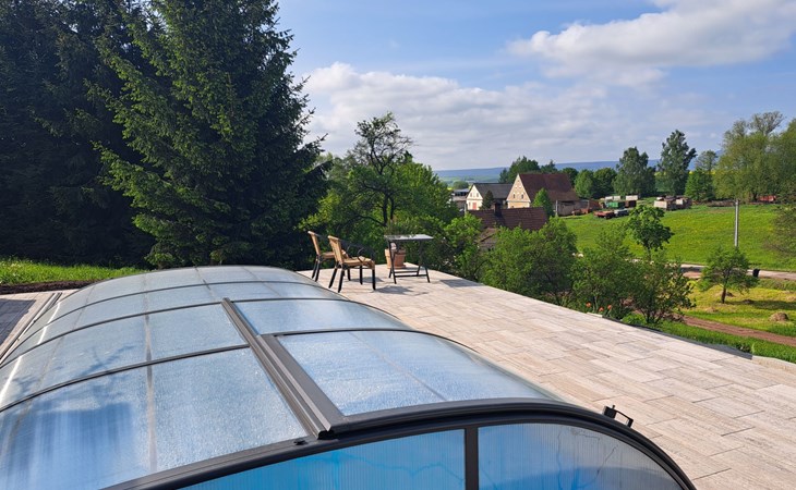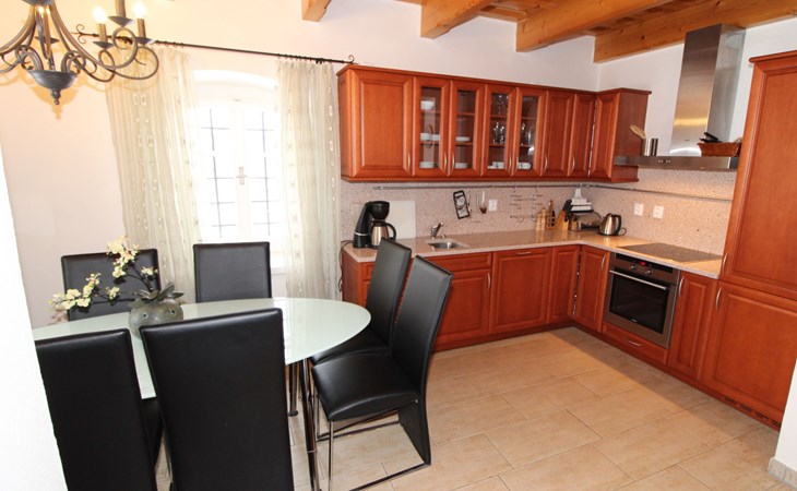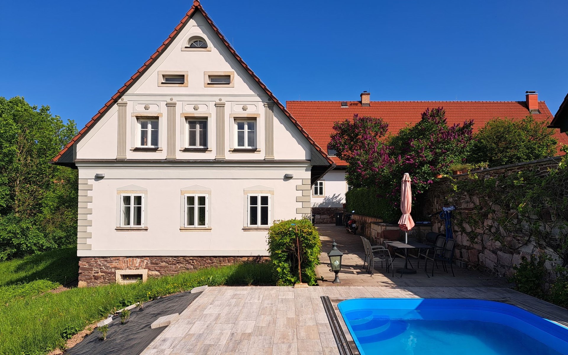Šonov 7 km van Broumov: Comfortabele woonboerderij "Frilo", van 2 verdiepingen, vrijstaand, bouwjaar 1863, gerenoveerd. Aan de rand van de plaats, rustige, zonnige ligging, 2 km van de bosrand. Voor alleengebruik: terrein 150 m2, openluchtzwembad (5 x 3 m, 150 cm diepte, seizoensgebonden beschikbaarheid: 01.Mei. - 30.Sep.) met oprolbaar afdekscherm. Terras, tuinmeubelen, barbecue, stookplaats, parkeerplaats op het terrein. Winkel 8 km, restaurant 8 km, bushalte "Šonov, ZD" 250 m, openluchtzwembad 15 km. Golfterrein (9 holes) 7 km, tennis 8 km, manege 10 km, wandelroutes, vanaf het huis, fietspad 10 m, skilift 14 km, skipisten 14 km, Vismogelijkheden 8 km. Attracties in de buurt: CHKO Broumovsko, Broumovské stěny 15 km, rozhledna Ruprechtický Špičák 17 km, Police nad Metují 20 km, Kaple Panny Marie Sněžné (Hvězda) 23 km, Adršpašsko-teplické skály 23 km, Góry Stolowe, Kladsko (PL) 22 km. Bekende skigebieden kunnen gemakkelijk worden bereikt: Janovičky 14 km.