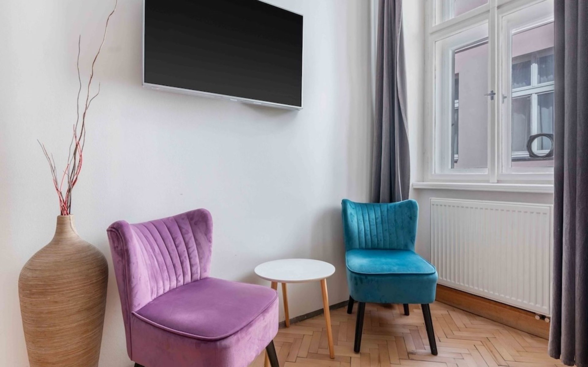 Historisch flatgebouw. In de wijk Nové Město, in het centrum van Praha, centrale, rustige ligging in een woonwijk, gebied met weinig verkeer, 600 m van de rivier. In het huis: centrale verwarming. Winkel 100 m, levensmiddelenwinkel 200 m, supermarkt 500 m, winkelcentrum 1 km, restaurant 200 m, bar, bakkerij 150 m, café 100 m, biertuin 1 km, bushalte "Myslíkova" 260 m, grasstrand "Žluté lázně" 6 km, park "Karlovo náměst" 600 m, duikschool 20 km, openluchtzwembad 5 km, overdekt zwembad 5 km. Golfterrein (18 holes) 5 km, tennis 3 km, manege 6 km, sportcentrum 1 km, kabelbaan 3 km. Attracties in de buurt: Karlův most/Charles Bridge 3 km, Pražský hrad/Prague Castle 5 km, Staré Město/Old Town 1 km, Josefov/Jewish Town 2 km, Narodní divadlo/National Theatr 1 km. Laden en lossen van de baggage is mogelijk bij het huis.