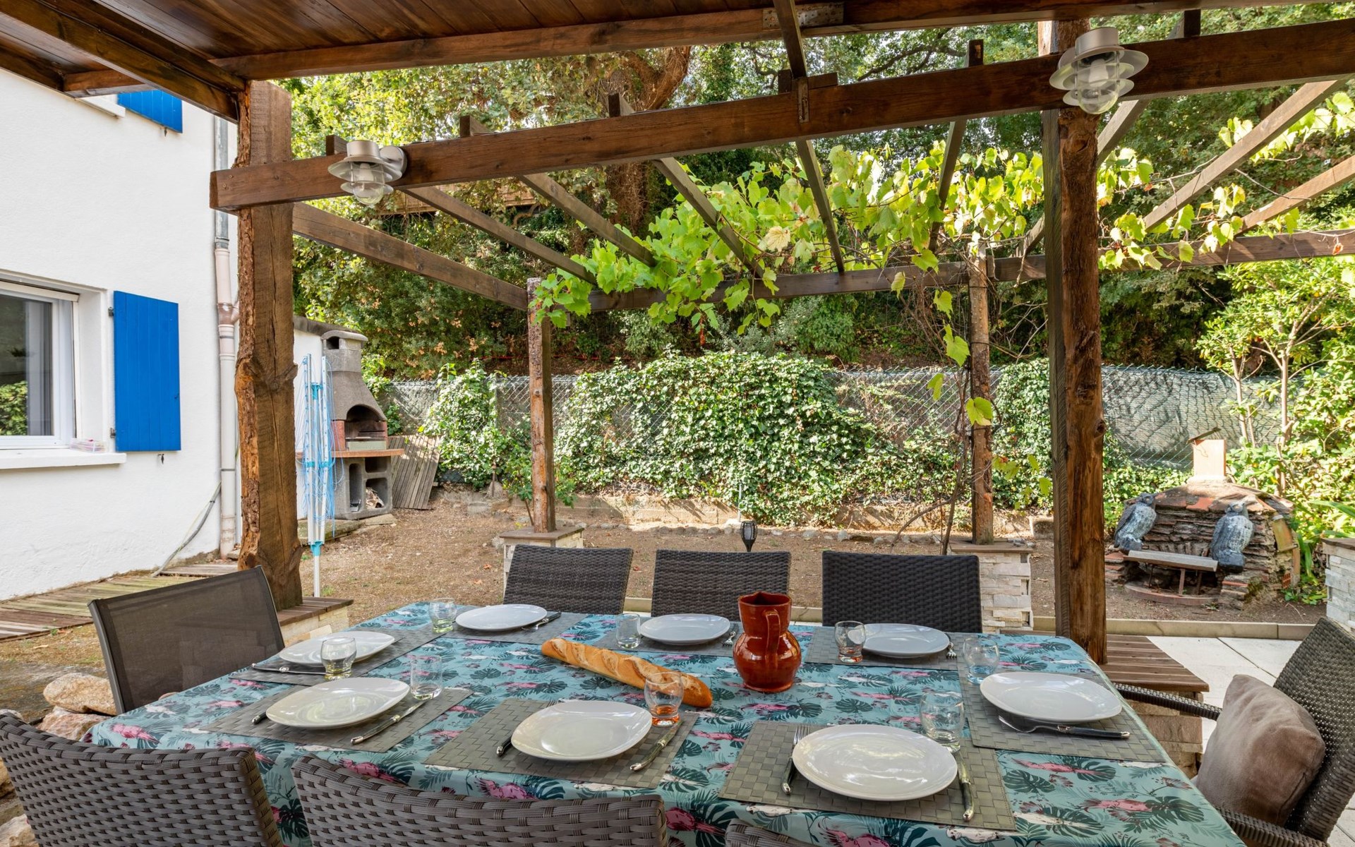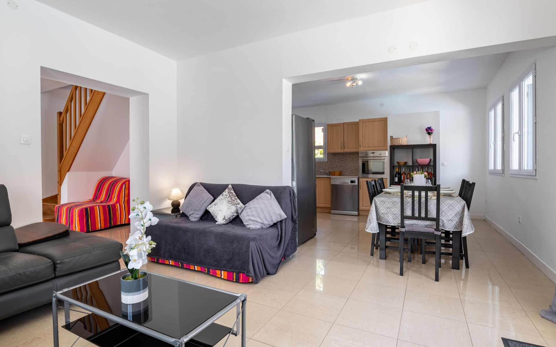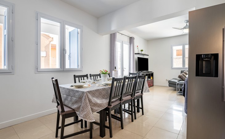 Eengezinswoning "Villa Les Treilles", van 2 verdiepingen. In de wijk Racou, villa wijk, 100 m van zee, van het strand. Voor alleengebruik: terrein 800 m2 (omheind), openluchtzwembad hoekig (8 x 4 m, 160 - 160 cm diepte, seizoensgebonden beschikbaarheid: 01.Jun. - 15.Sep.). Douche/WC bij het zwembad, poolhouse met koelkast en fornuis, parkeerplaats (voor 3 auto's) op het terrein. Winkel, levensmiddelenwinkel 270 m, winkelcentrum 7 km, restaurant 200 m, bar 350 m, bushalte 150 m, station "Argelès sur Mer" 4.6 km, zandstrand "Plage du Racou" 200 m. Jachthaven 1.4 km, golfterrein (27 holes) 19 km. Attracties in de buurt: Aqualand Saint-Cyprien 8 km. Wandelgebied Les Albères 3 km. De sleuteloverdracht vindt plaats bij het agentschap Interhome in Saint-Cyprien, 12 km.