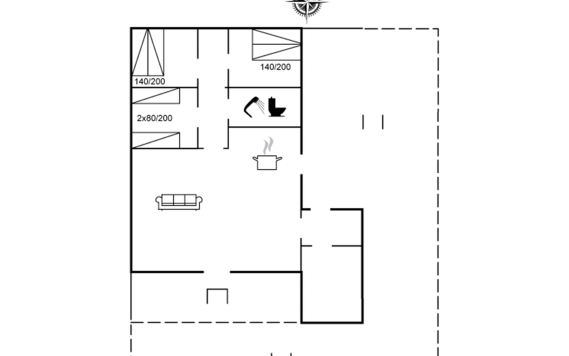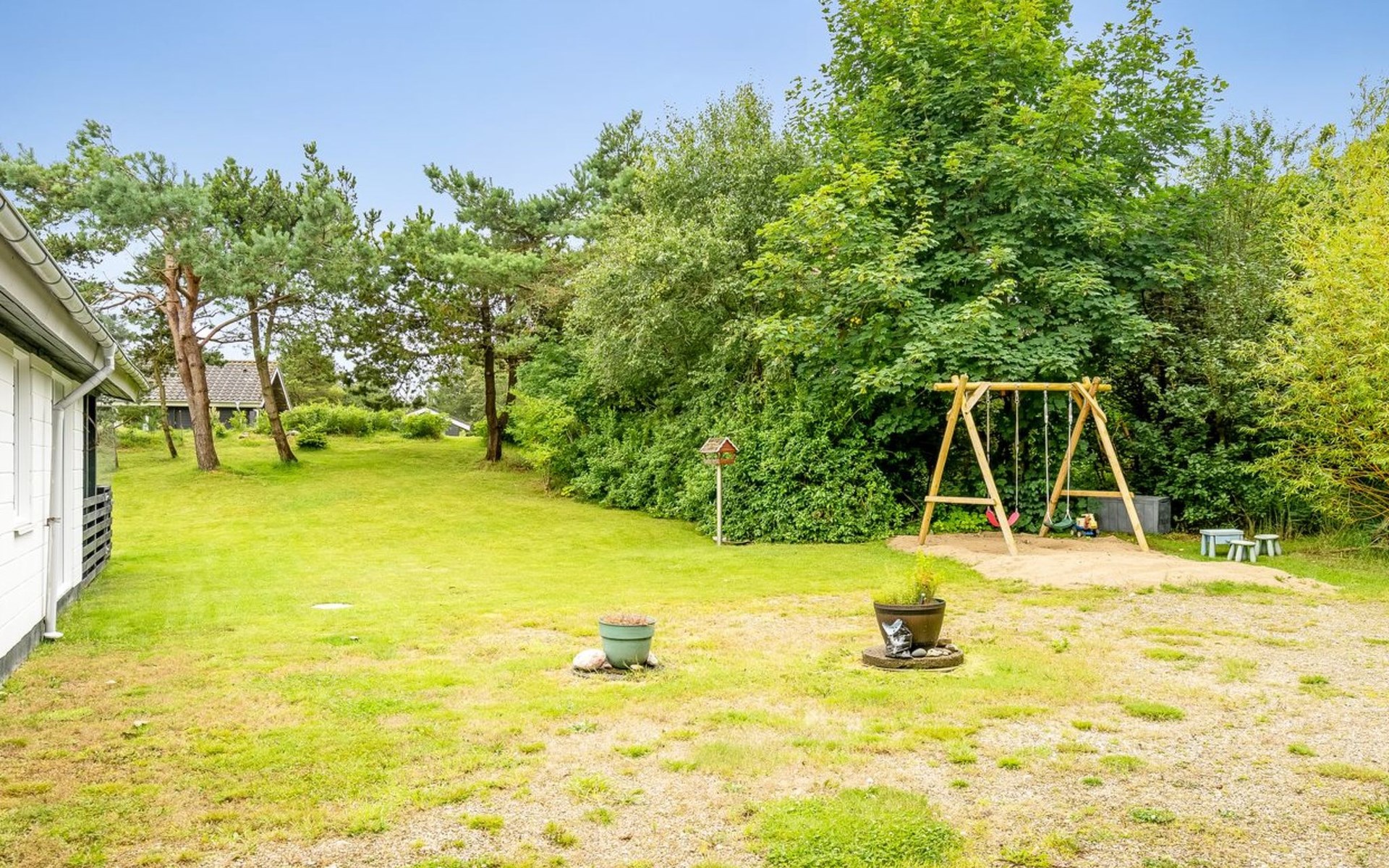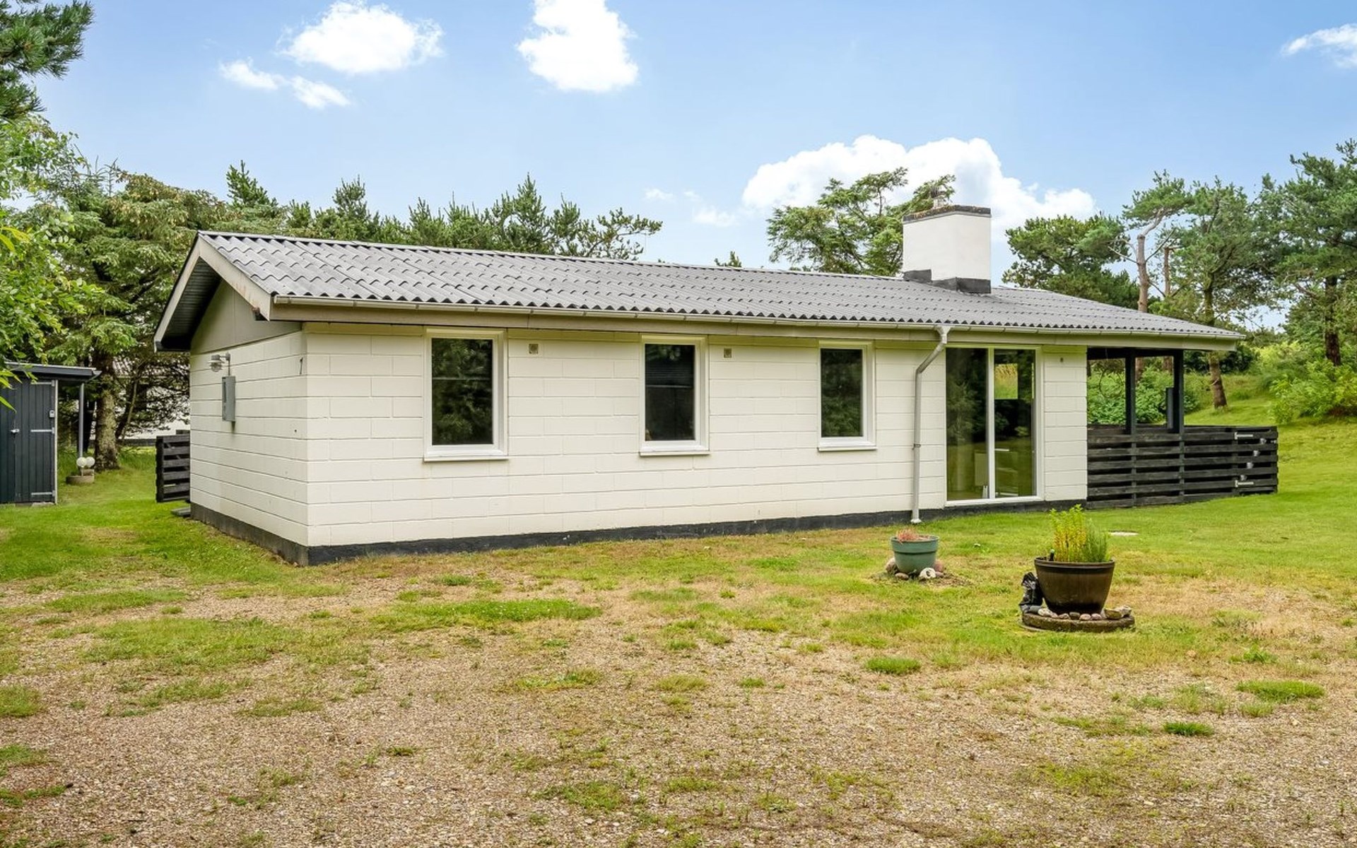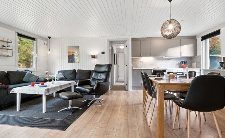 Eengezinswoning, bouwjaar 1976. Voor alleengebruik: wild terrein 1.300 m2. Terras (75 m2), barbecue, kinderspeelplaats (schommel). In het huis: wasmachine. Parkeerplaats bij het huis. Levensmiddelenwinkel 11 km. Golfterrein 11 km. De eigenaar accepteert geen jeugdgroepen.