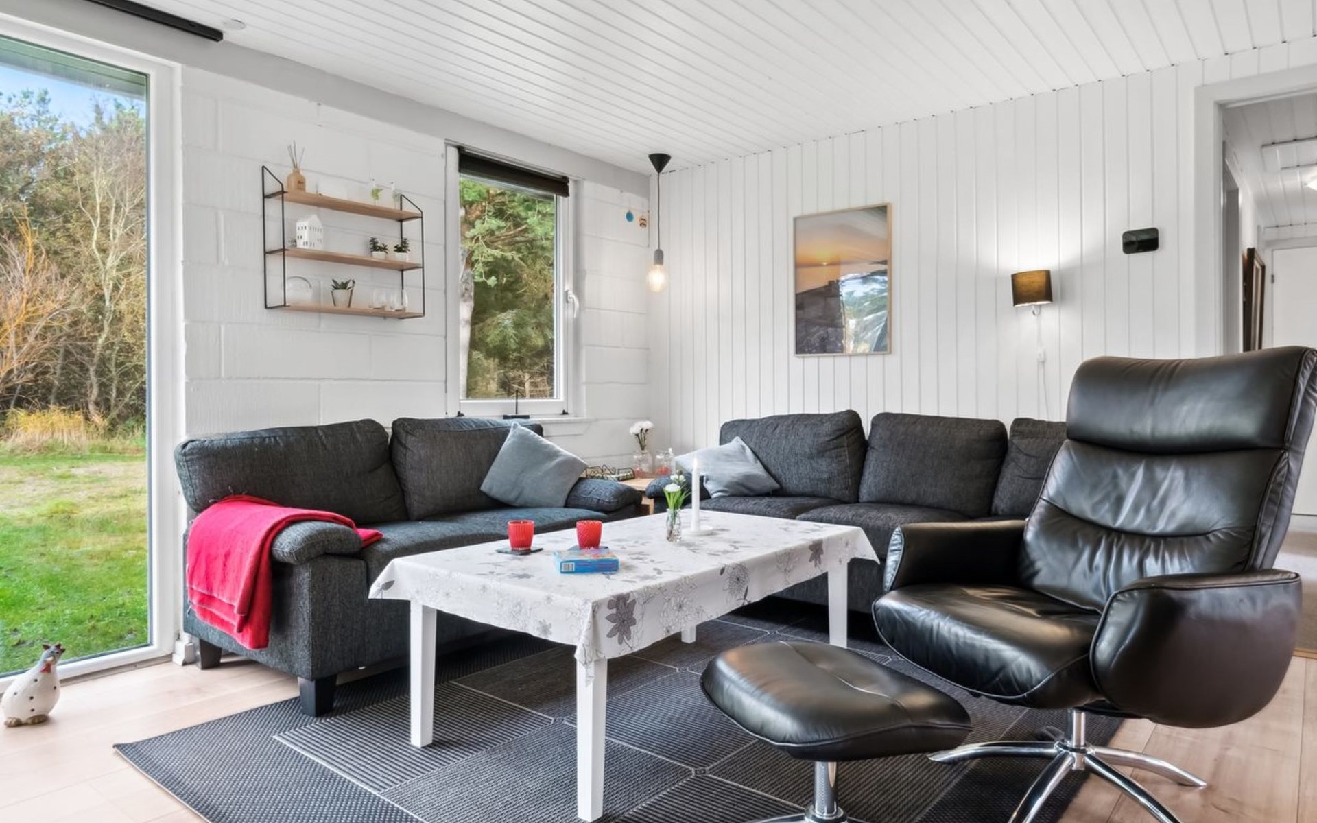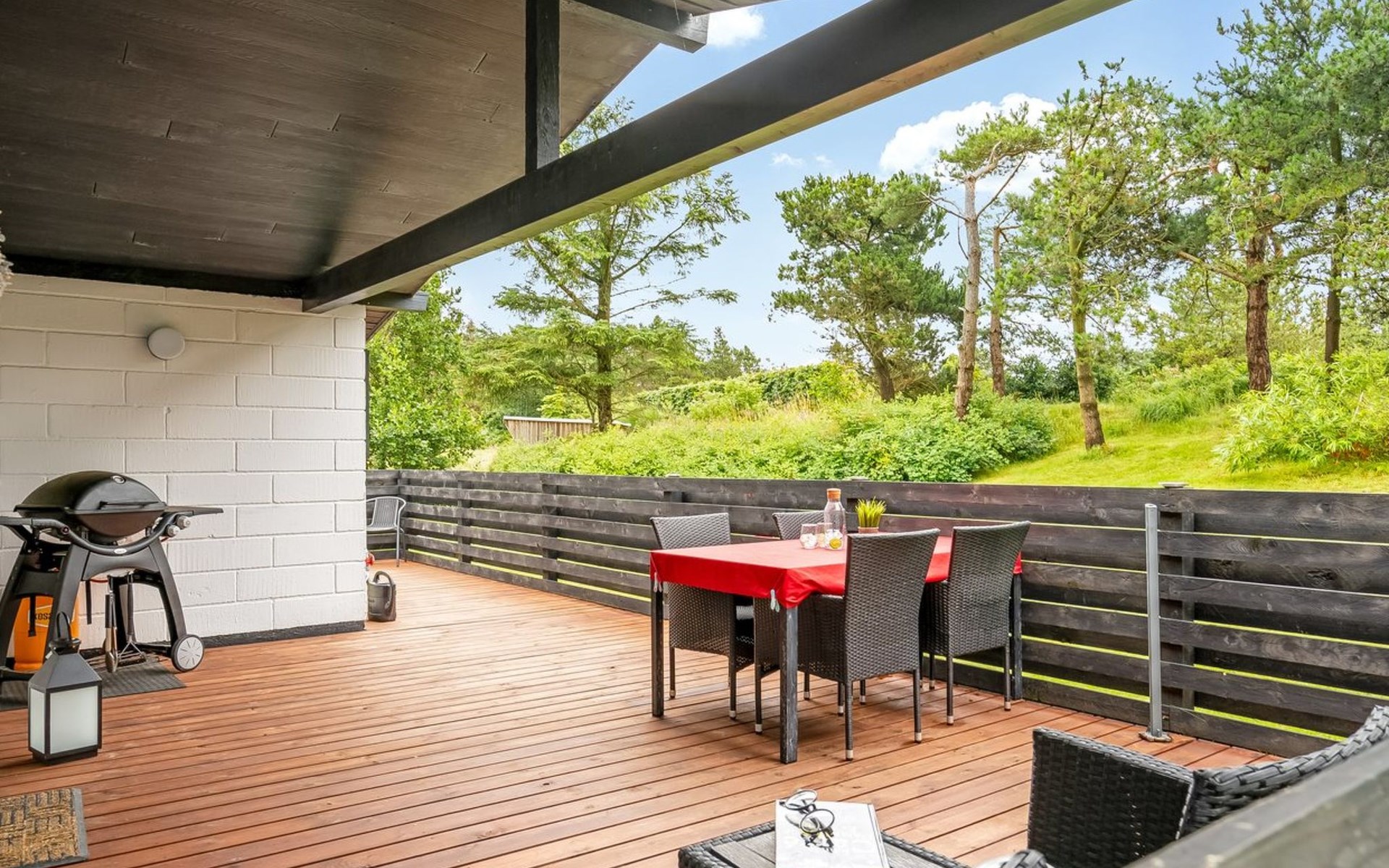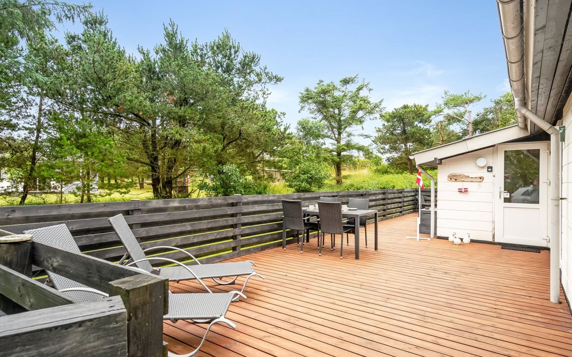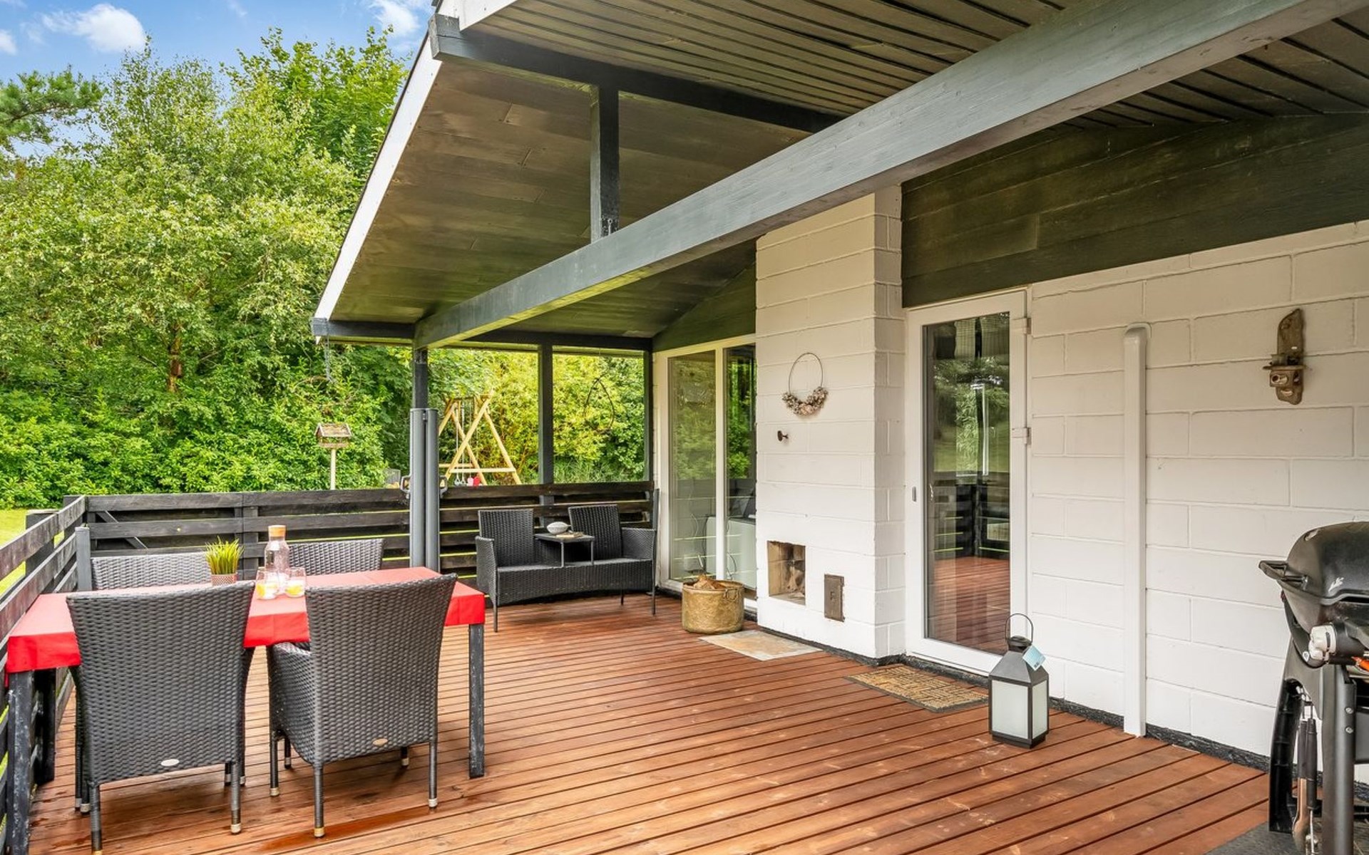 Eengezinswoning, bouwjaar 1976. Voor alleengebruik: wild terrein 1.300 m2. Terras (75 m2), barbecue, kinderspeelplaats (schommel). In het huis: wasmachine. Parkeerplaats bij het huis. Levensmiddelenwinkel 11 km. Golfterrein 11 km. De eigenaar accepteert geen jeugdgroepen.