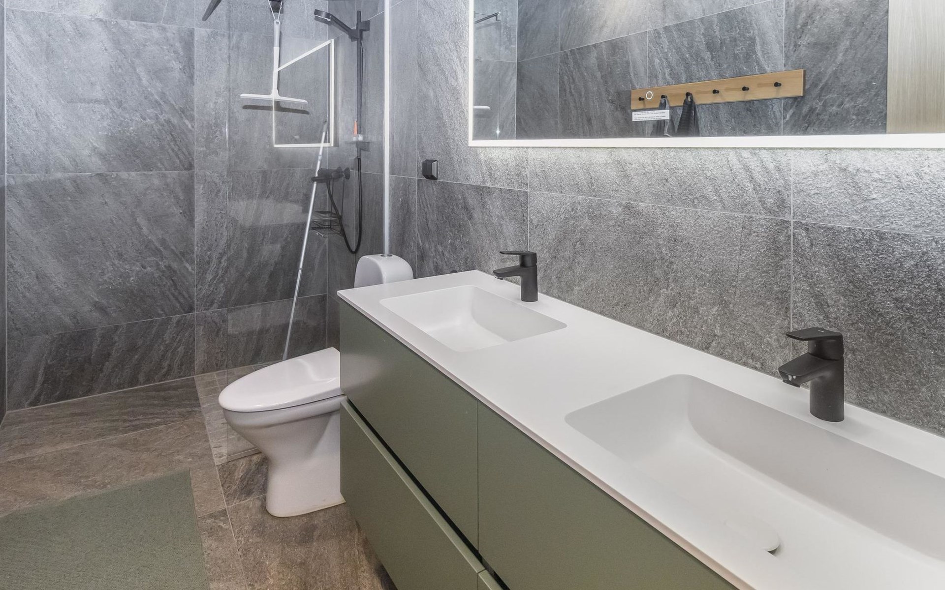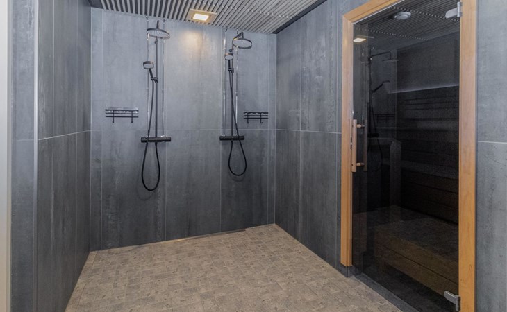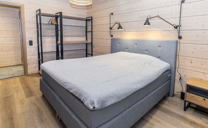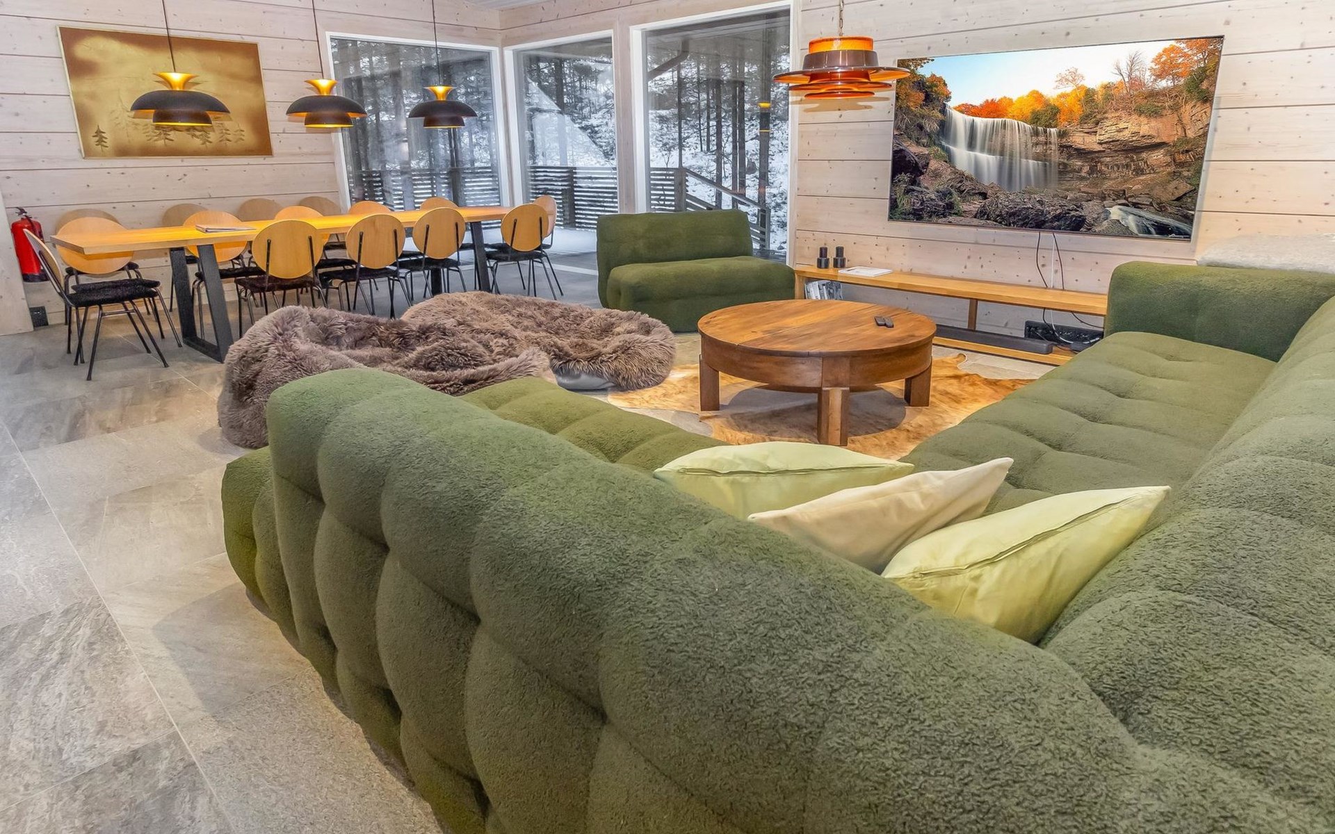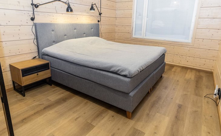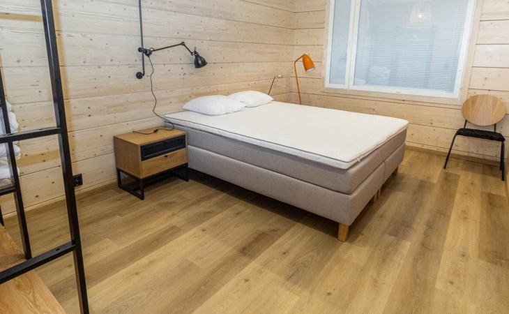 The villa’s large and bright living area offers plenty of space for relaxation and socializing, with space for up to 14 people at the dining table. This 2023 built wooden villa boasts top-notch amenities: a fully equipped kitchen and a living room with a cozy fireplace, spacious sauna and washroom facilities, and modern conveniences that make everyday life feel like a holiday.