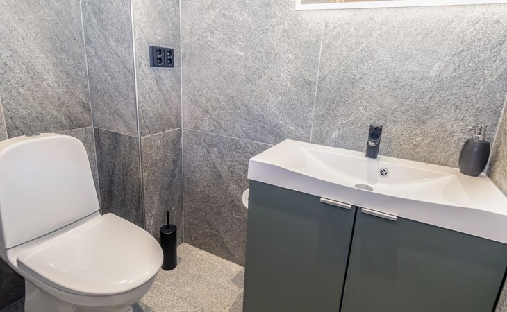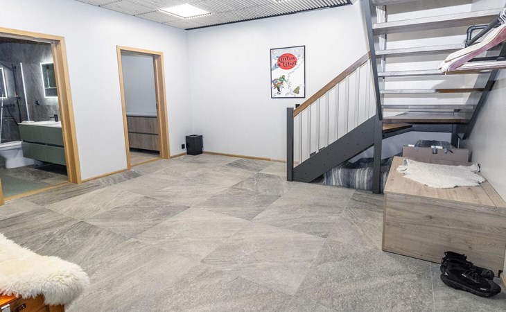 The cabin is designed with plenty of storage space for sports equipment – there is a carport for two cars in the yard and a large garage downstairs where you can maintain skis and other gear.
