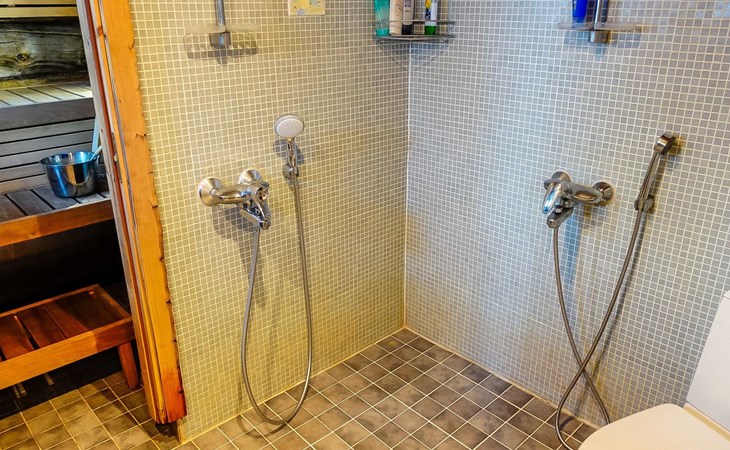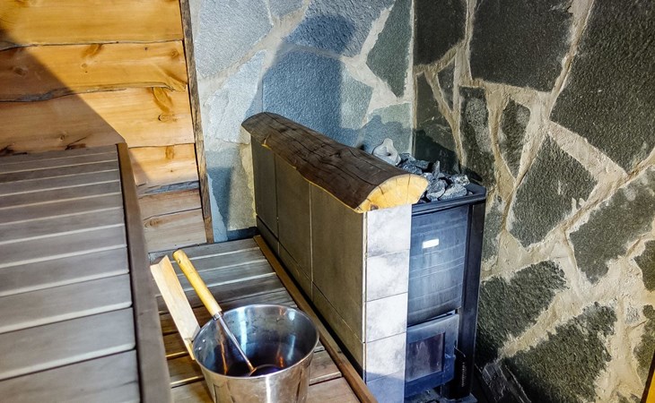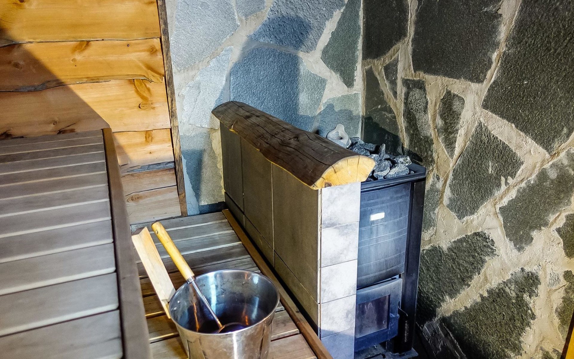 Kelo log cabin, built in 2006. Living room/kitchen, two bedrooms, both with two beds, four beds in the loft, sauna with wood-burning sauna stove, washroom/WC, dressing space and covered terrace.