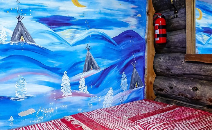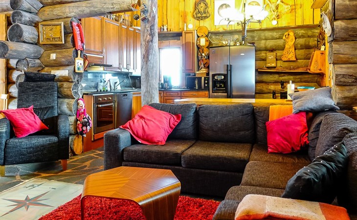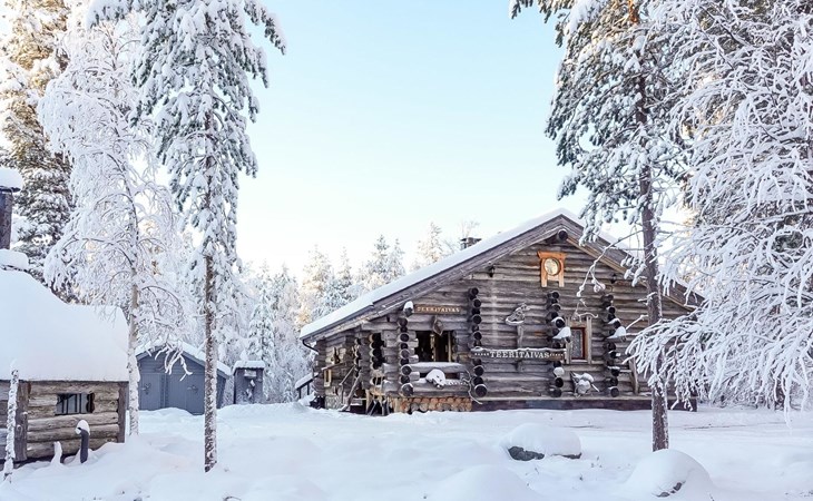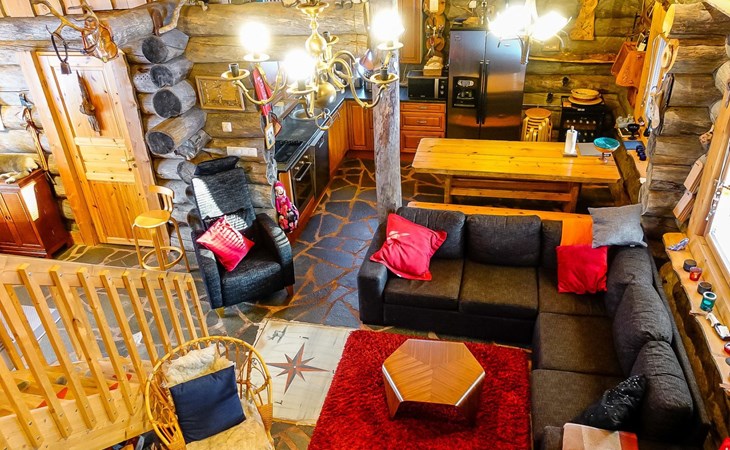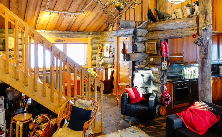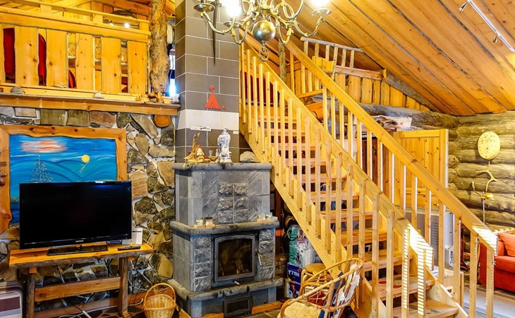 Teeritaivas is a spacious and colorfully decorated kelo log cabin in the calm Levijärvi area. Cross country skiing trail nearby (within 100 m distance), along the road distance is 200 m.