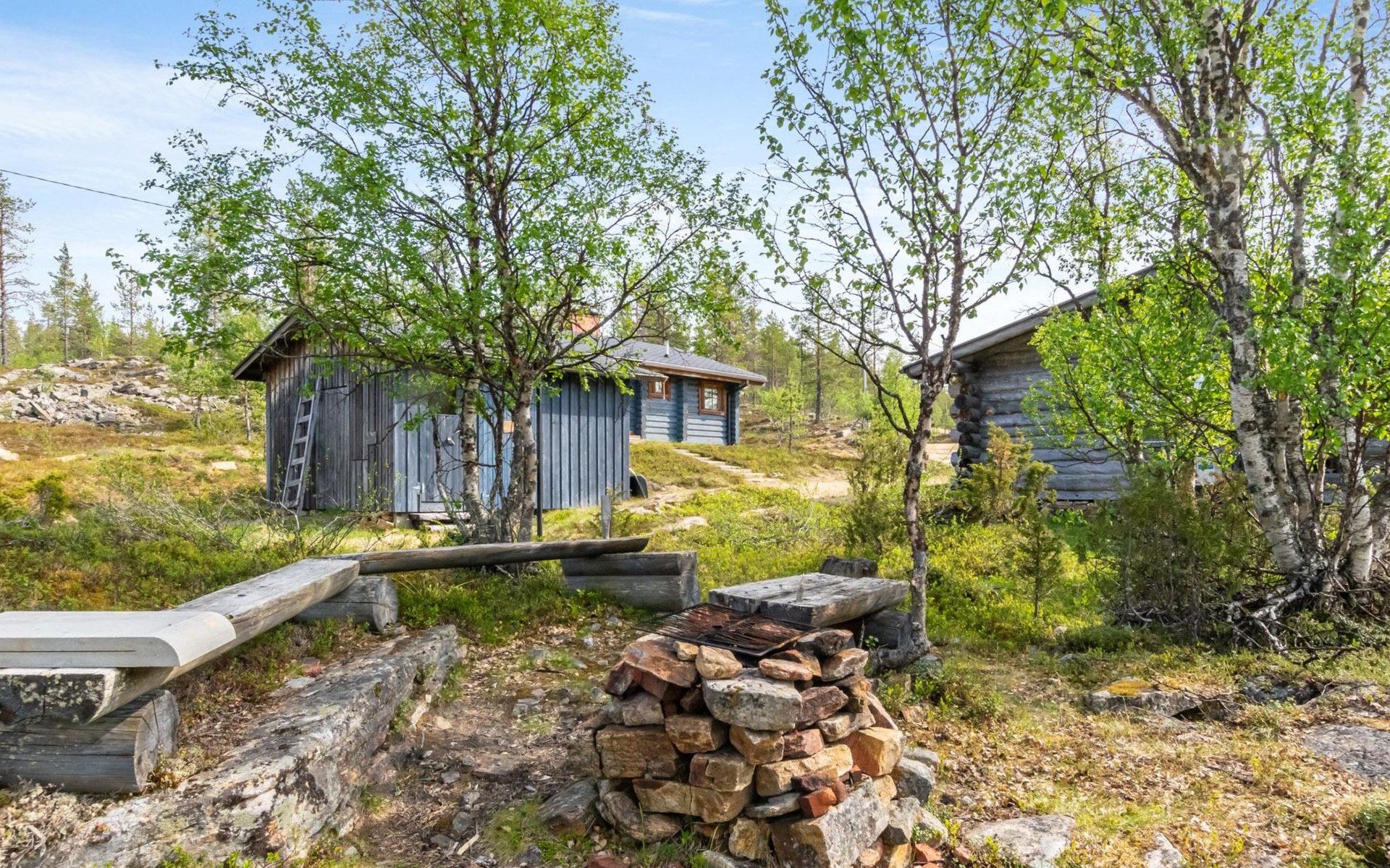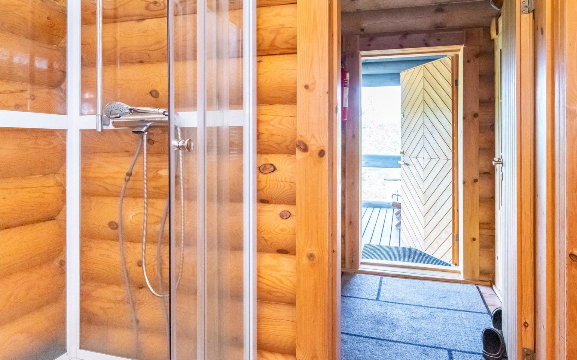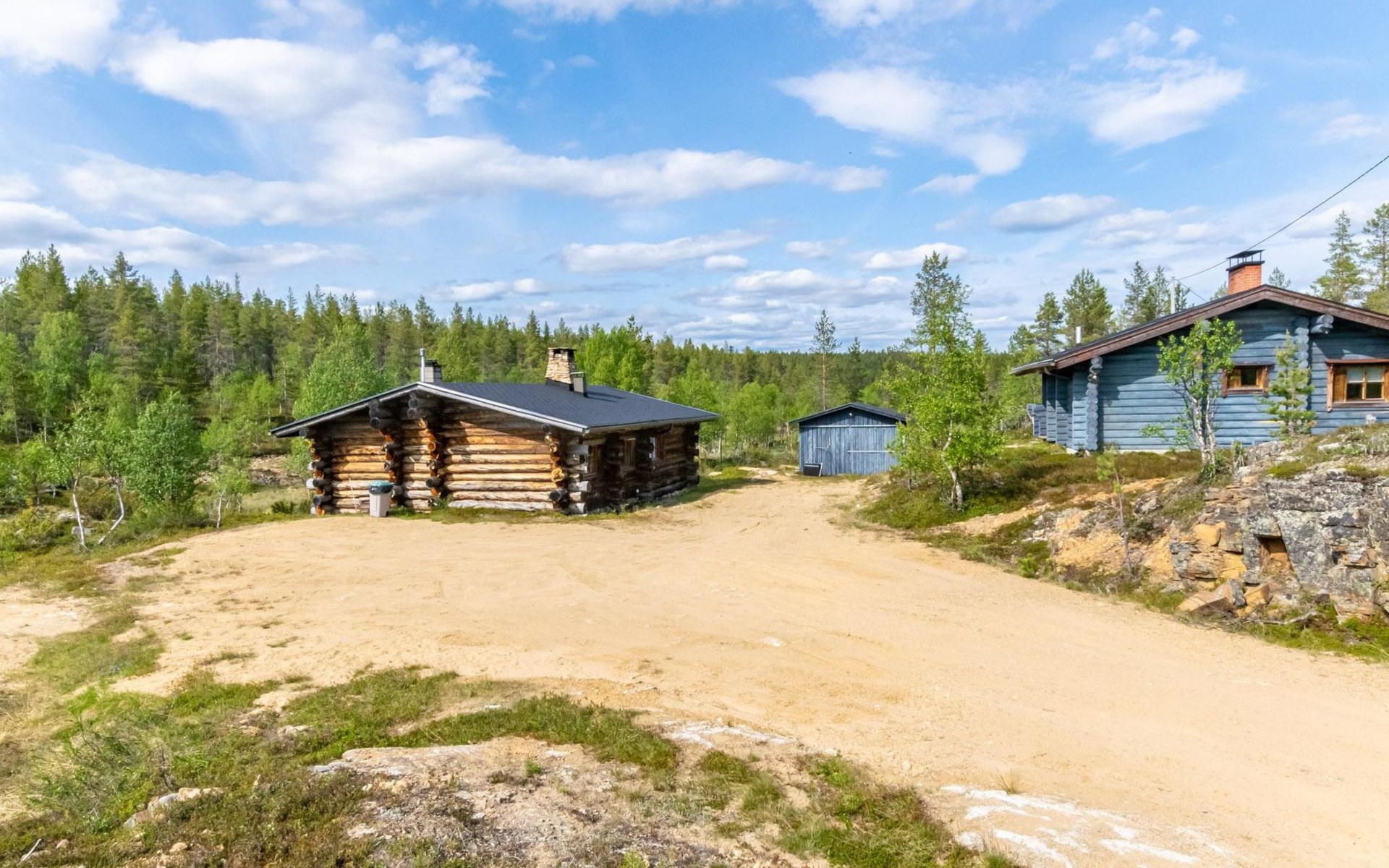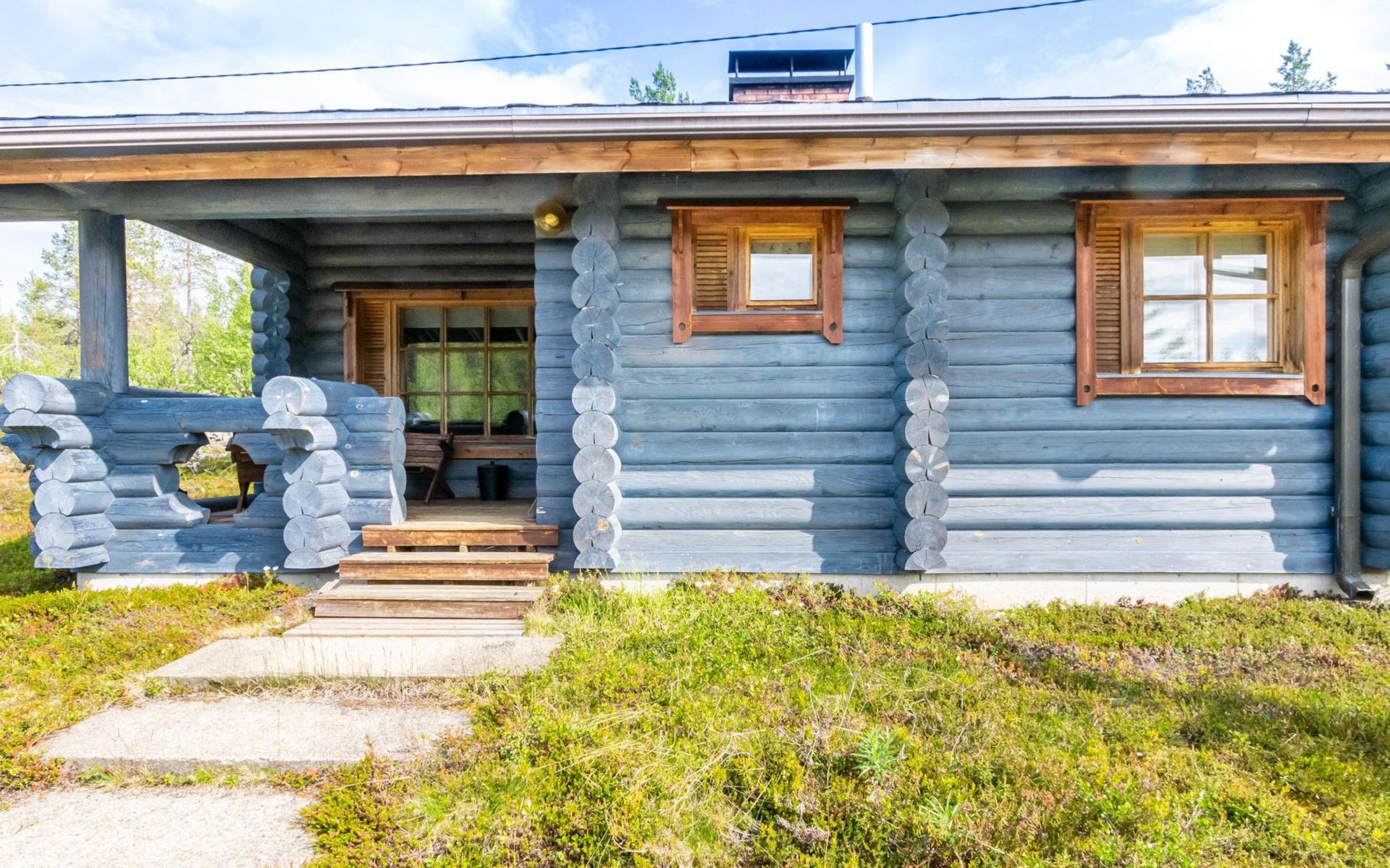 The 50-square-meter cabin has a kitchen/living room, a bedroom, a washroom, a wood-heated sauna, a toilet and a terrace. A shared beach, fireplace (only on summer) and wood storage with another cottage in the courtyard, Kelokoto. The car's heating plug is in the wall of the adjacent cabin, a long extension cord is used.