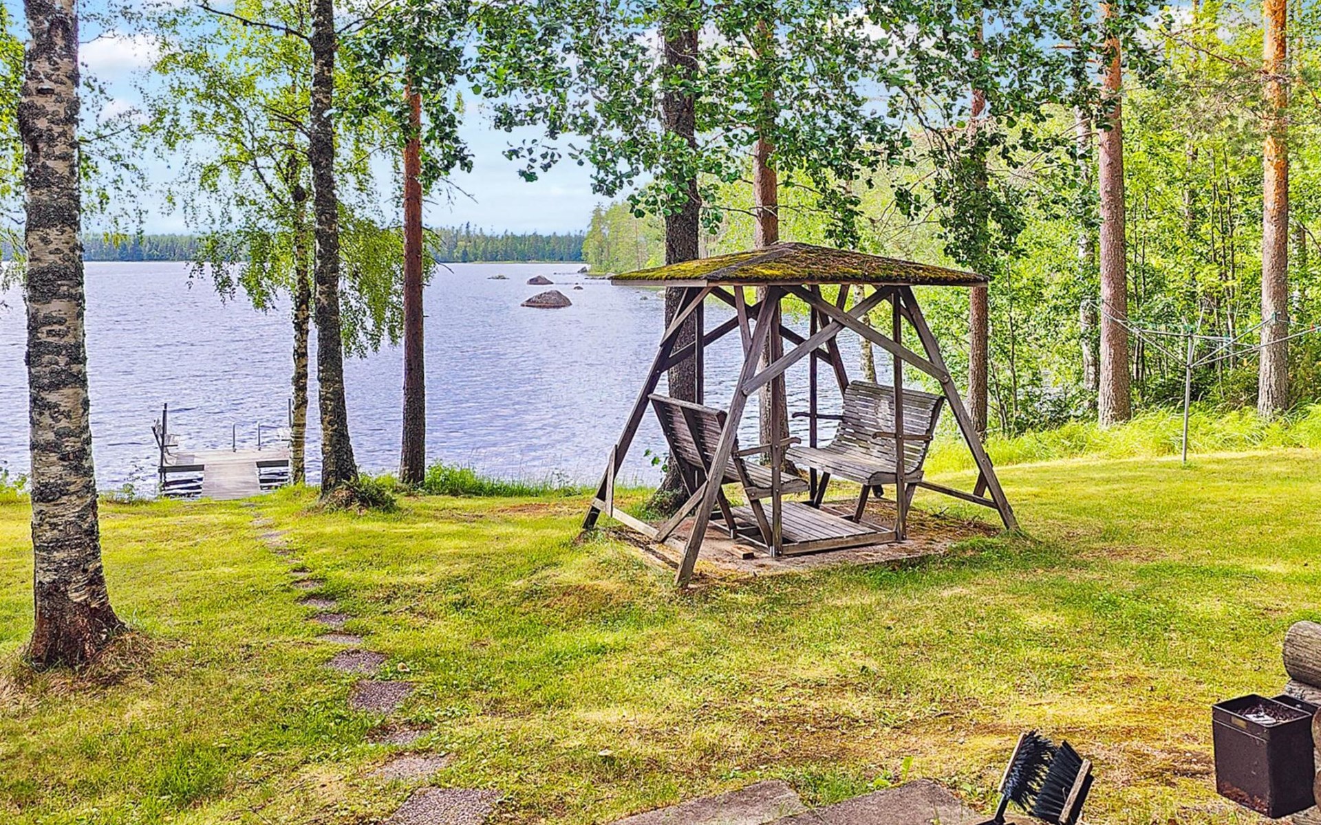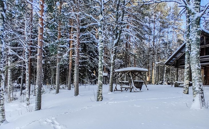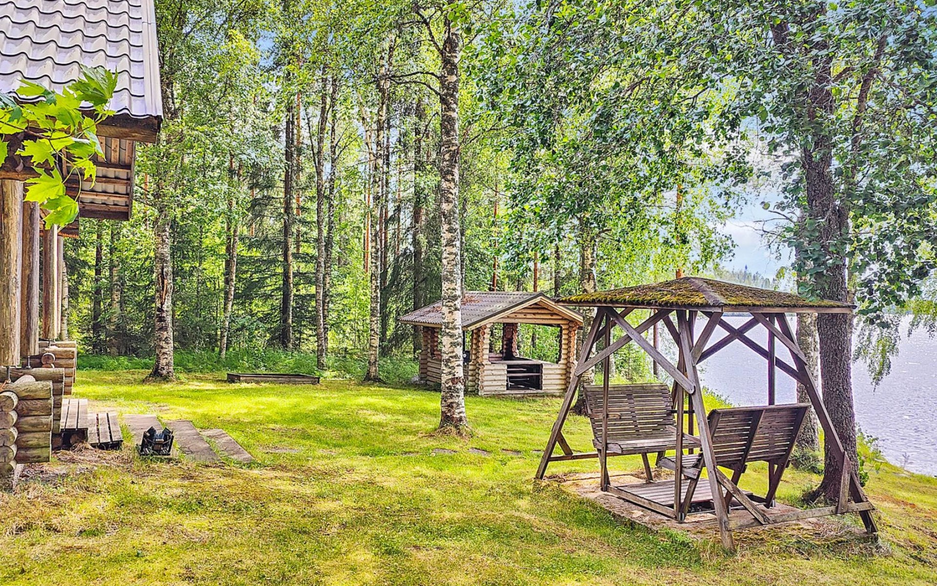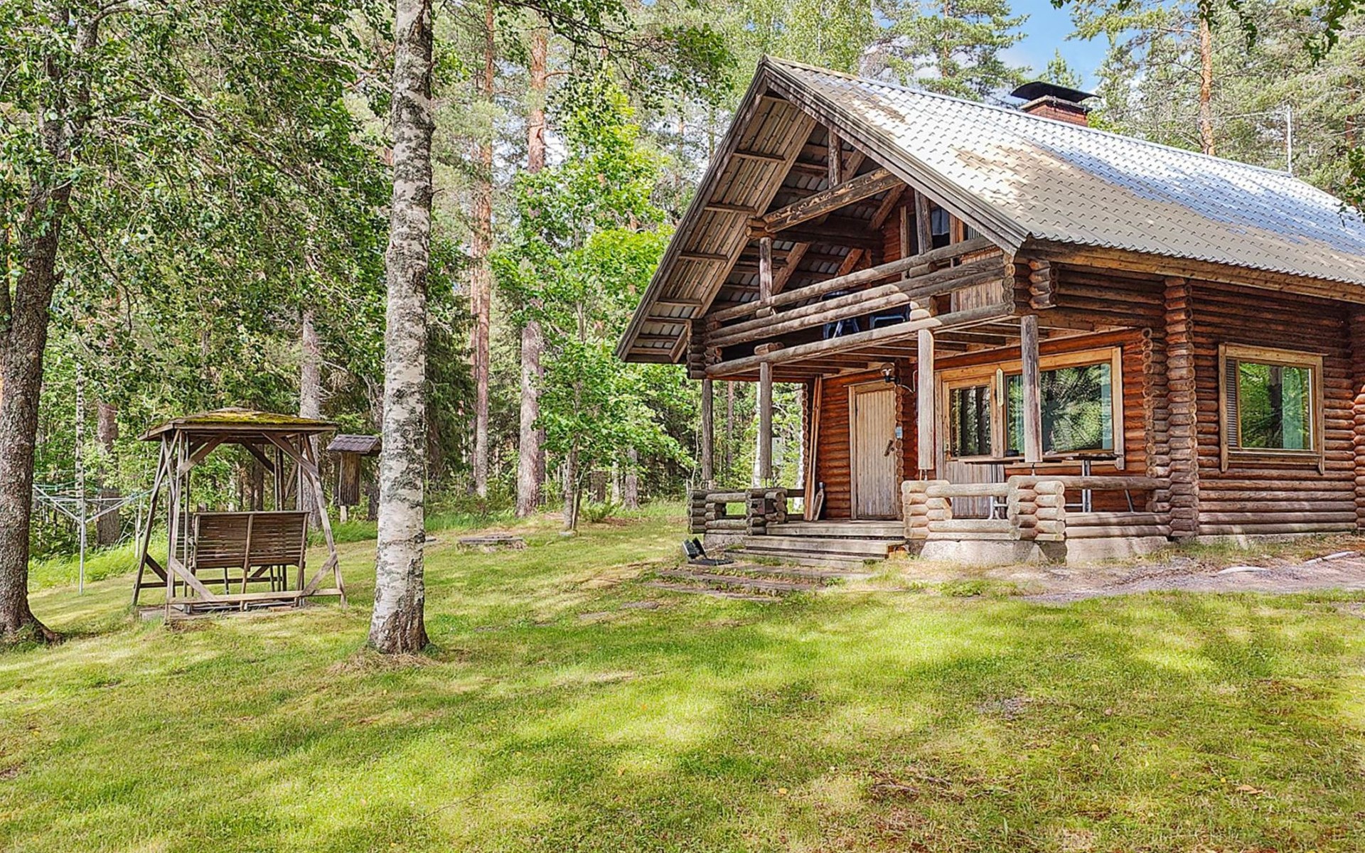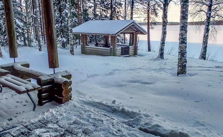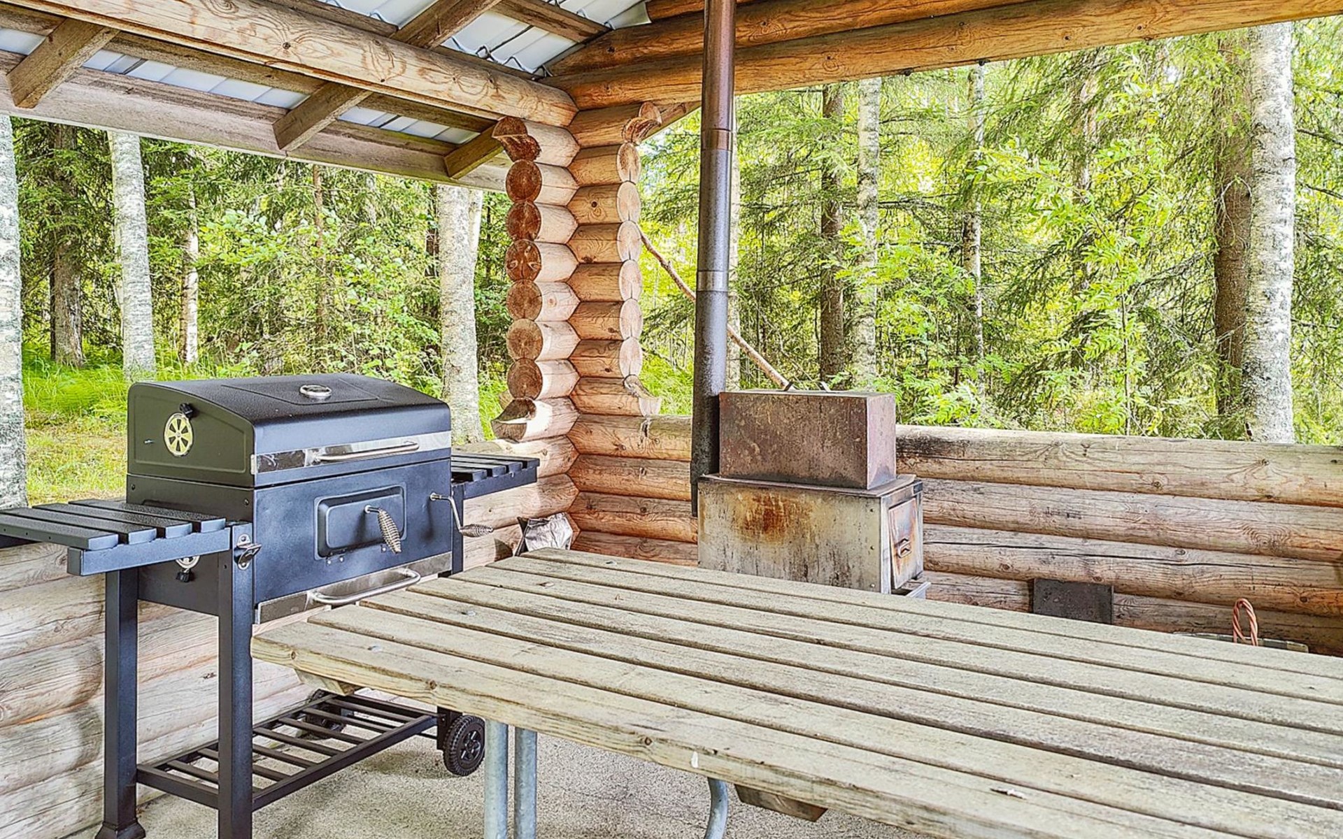 Downstairs: living room/kitchen with sofa bed, dressing room, sauna, open veranda.