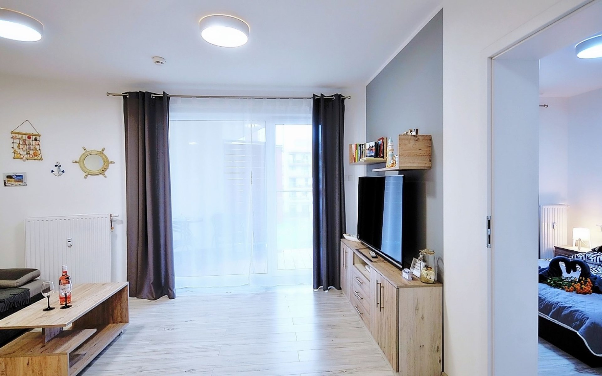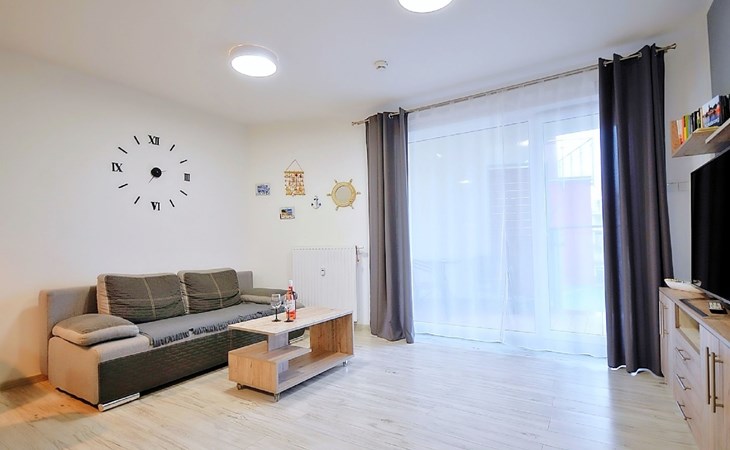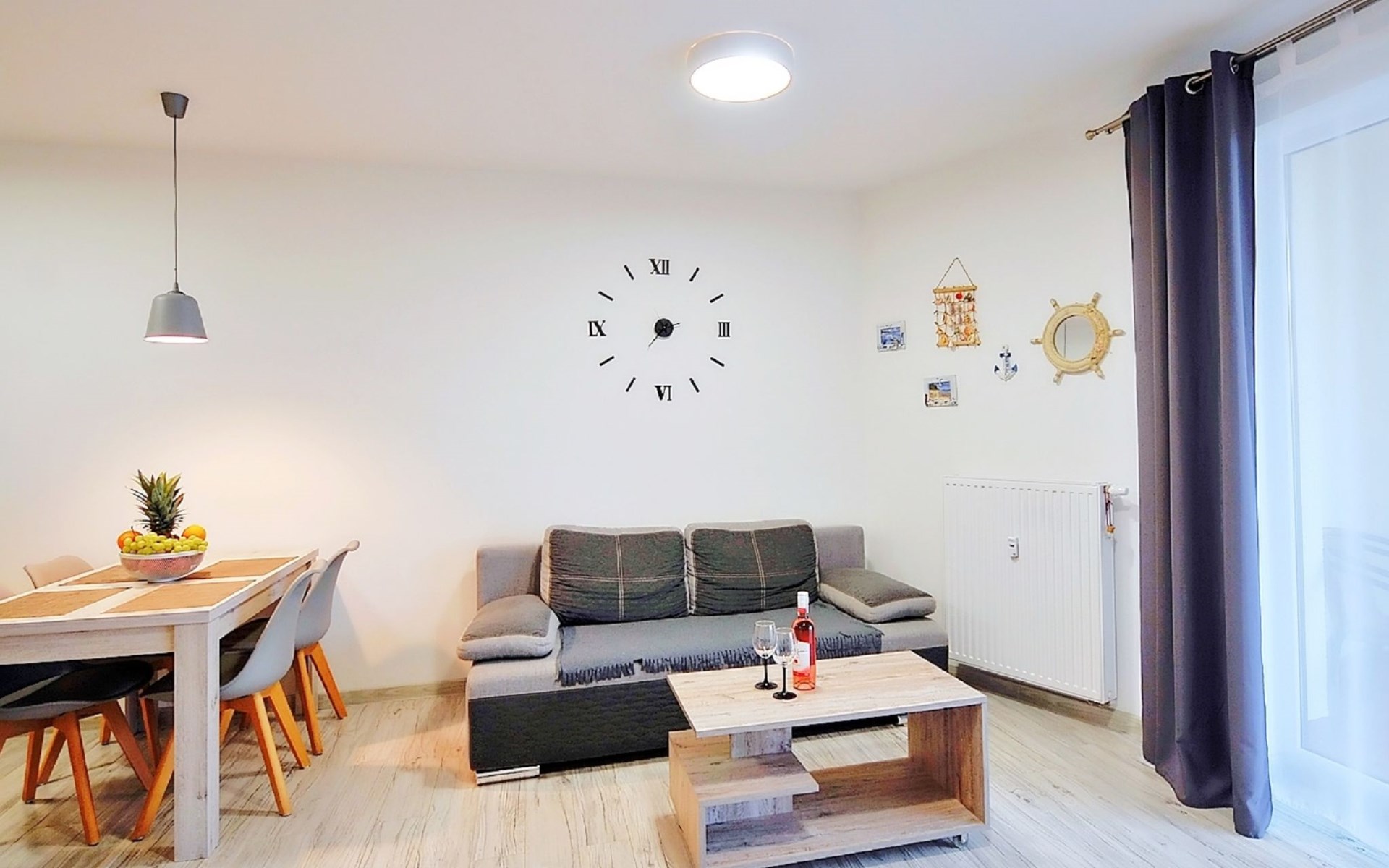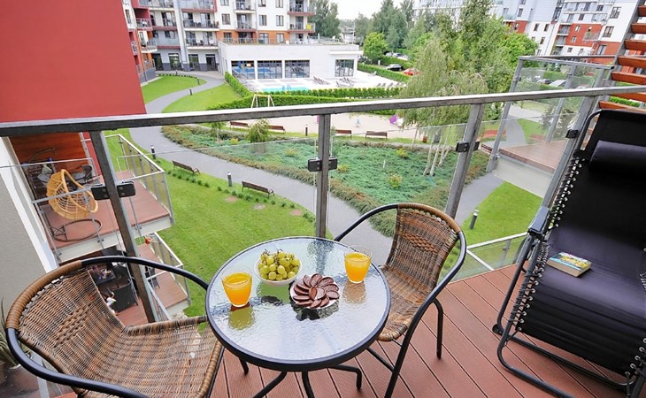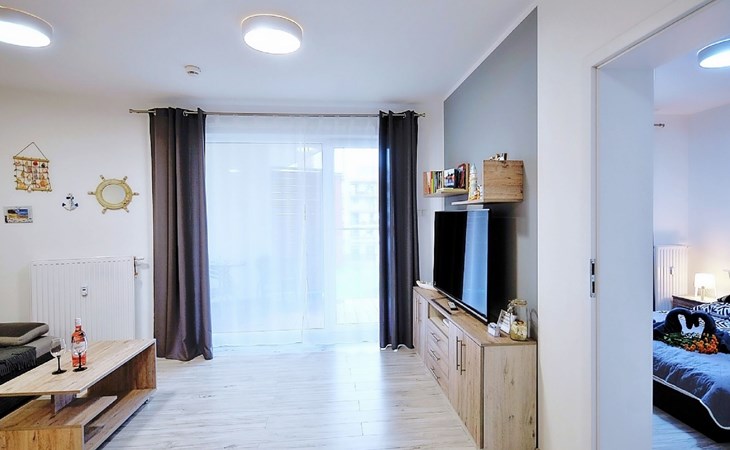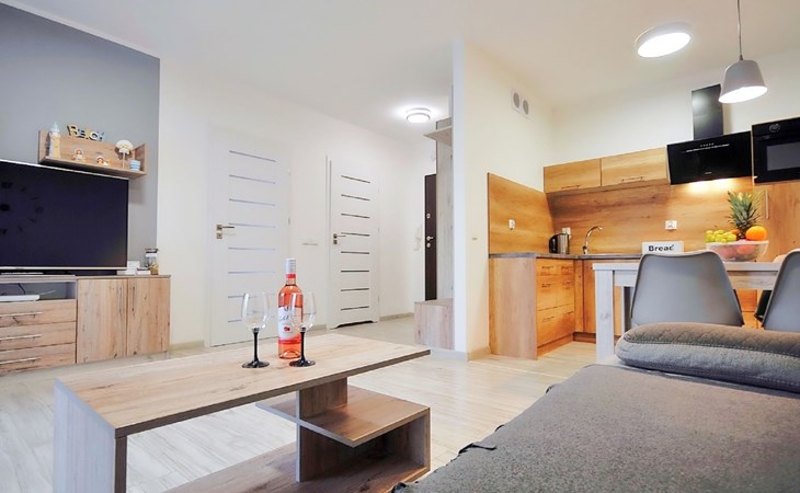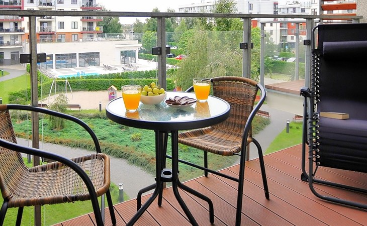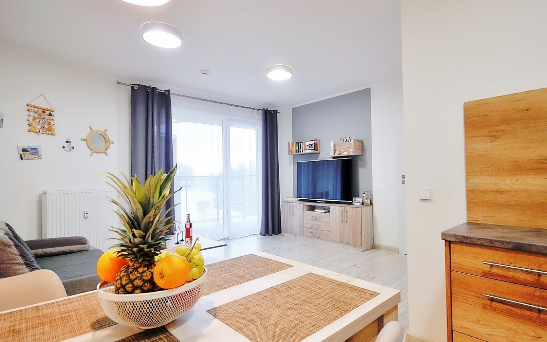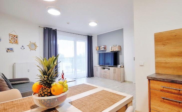 Moderne, comfortabel flatgebouw "Szum Morza", bouwjaar 2017. Aan de rand van de plaats, rustige, zonnige ligging, 350 m van zee, te midden van groen. Voor medegebruik: overdekt zwembad verwarmd (6 x 17 m, openingstijden zwembad: 09:00-21:00). Douche/WC bij het zwembad, kinderzwembad, hot tub, kinderspeelplaats. In het huis: sauna, fitnessruimte, speelkamer, lift, centrale verwarming, alarmsysteem. Parkeerplaats bij het huis op het terrein, openbare parkeerplaatsen in de straat. Winkel 1.3 km, levensmiddelenwinkel 850 m, supermarkt, restaurant 300 m, bushalte 1.1 km, station 2.5 km, zandstrand 350 m. Jachthaven 3 km. Attracties in de buurt: Oceanarium 3 km, Molo 3 km, Park Dziki Zachód Zieleniewo 7 km. Bewaakt vakantiecomplex.