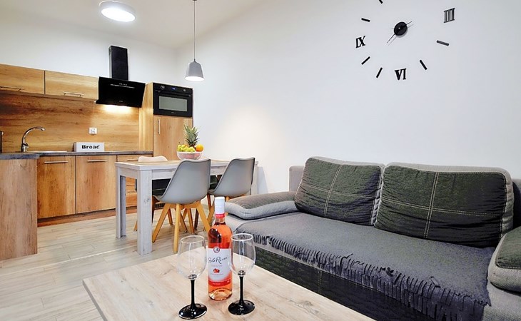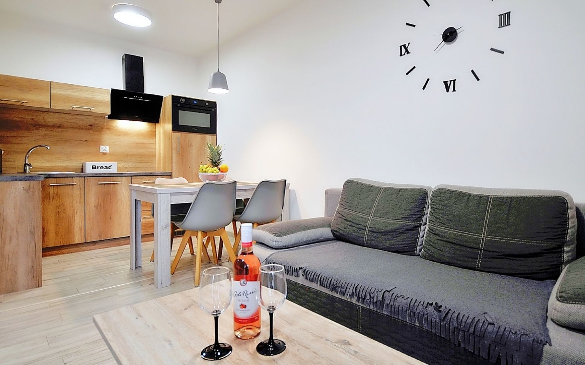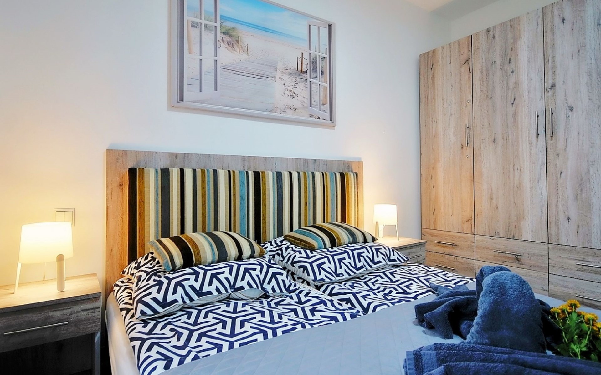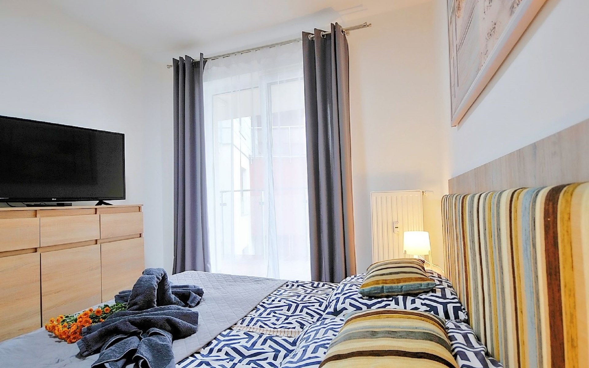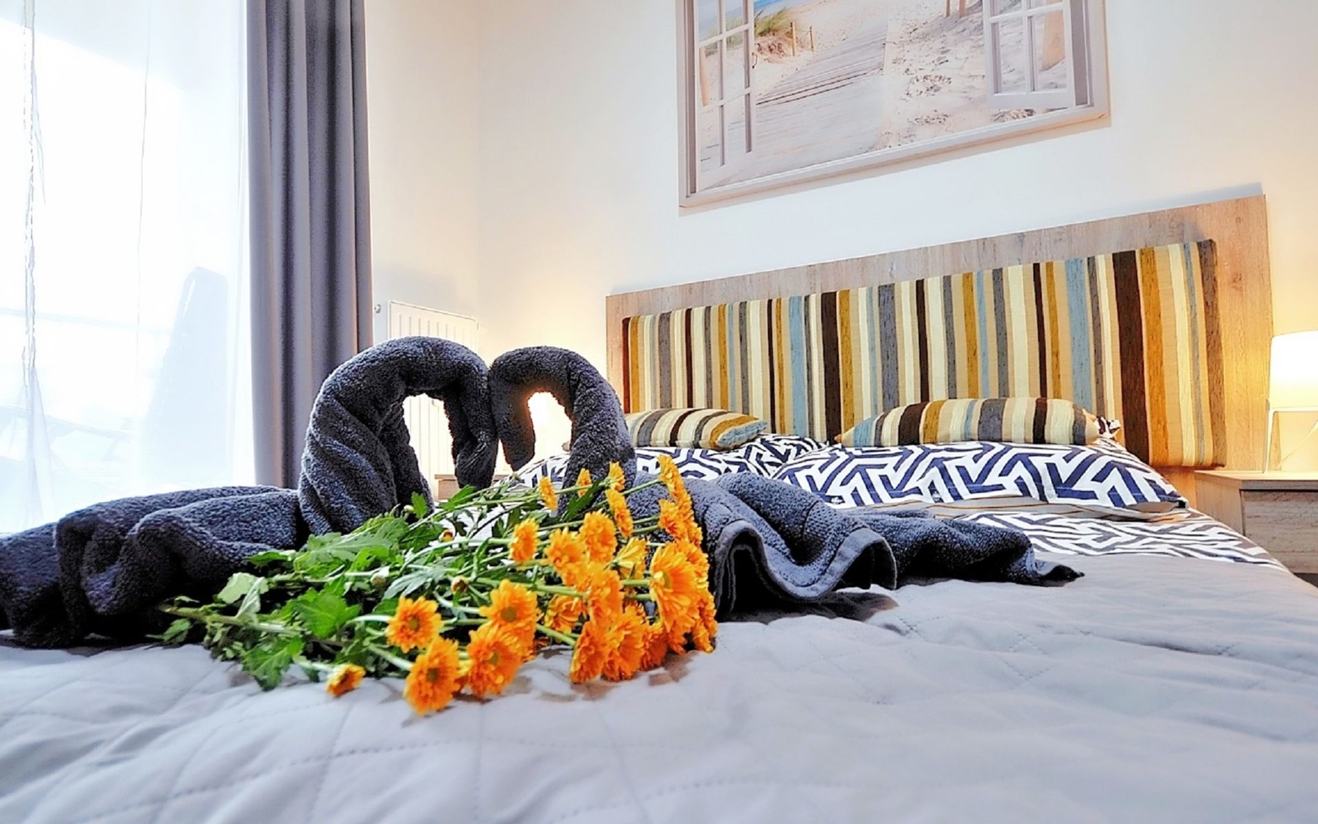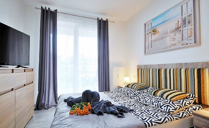 Moderne, comfortabel flatgebouw "Szum Morza", bouwjaar 2017. Aan de rand van de plaats, rustige, zonnige ligging, 350 m van zee, te midden van groen. Voor medegebruik: overdekt zwembad verwarmd (6 x 17 m, openingstijden zwembad: 09:00-21:00). Douche/WC bij het zwembad, kinderzwembad, hot tub, kinderspeelplaats. In het huis: sauna, fitnessruimte, speelkamer, lift, centrale verwarming, alarmsysteem. Parkeerplaats bij het huis op het terrein, openbare parkeerplaatsen in de straat. Winkel 1.3 km, levensmiddelenwinkel 850 m, supermarkt, restaurant 300 m, bushalte 1.1 km, station 2.5 km, zandstrand 350 m. Jachthaven 3 km. Attracties in de buurt: Oceanarium 3 km, Molo 3 km, Park Dziki Zachód Zieleniewo 7 km. Bewaakt vakantiecomplex.