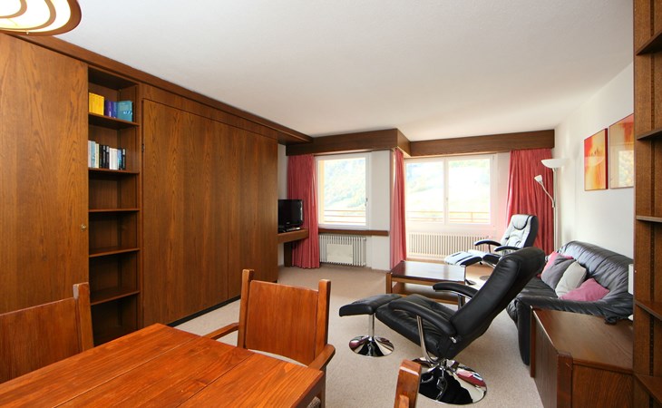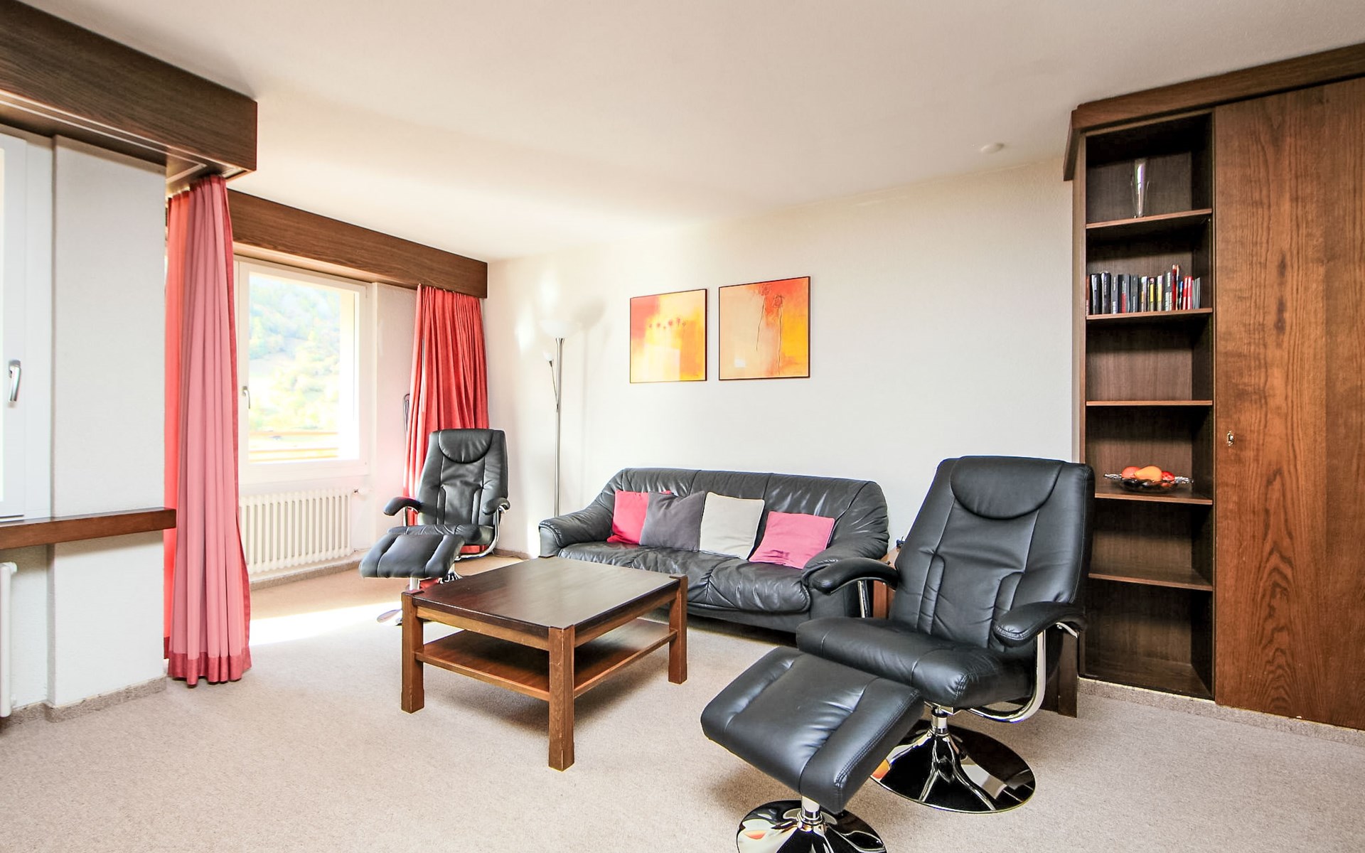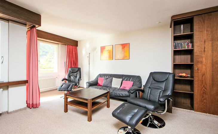 Residentie "Ringstrasse (Utoring)". In de plaats, 500 m van het centrum, 20 m van het skigebied. In het huis: bar, salon, tafeltennis, speelkamer, lift, bergruimte voor fietsen, berging voor ski's, centrale verwarming, wasmachine, droger (extra). Broodjesservice en drankjesservice. Toegangsweg tot aan het huis (bergweg). In de winter sneeuwkettingen aanbevolen, 's winters 4x4 aanbevolen. Parkeerplaats bij het huis, Openbare parkeergarage op 50 m, extra. Levensmiddelenwinkel, supermarkt, restaurant 500 m, bushalte "Leukerbad, Bristol" 250 m, openluchtzwembad 500 m, thermaalbad 300 m. Tennis 500 m, kabelbaan, ski faciliteiten, skipisten 20 m, rodelbaan, langlaufloipe 500 m, ijsbaan 1 km. Bekende skigebieden kunnen gemakkelijk worden bereikt: Leukerbad Torrent. Wandelgebied Gemmi 1 km. Het huis staat op een beboste helling op het zuidwesten, direct naast de Torrent-kabelbanen. Slechts een korte trappenweg scheidt het huis van het dalstation. Parkeermogelijkheid: in de winter parkeerplaats CHF35.00/week, garage CHF 70.00/week, in de zomer parkeerplaats gratis, garage CHF 35.00/week.