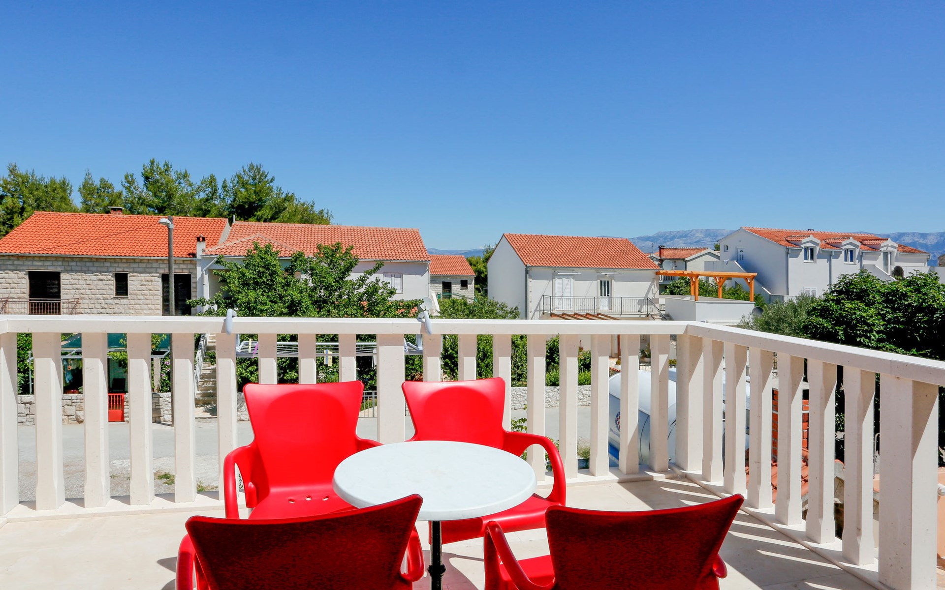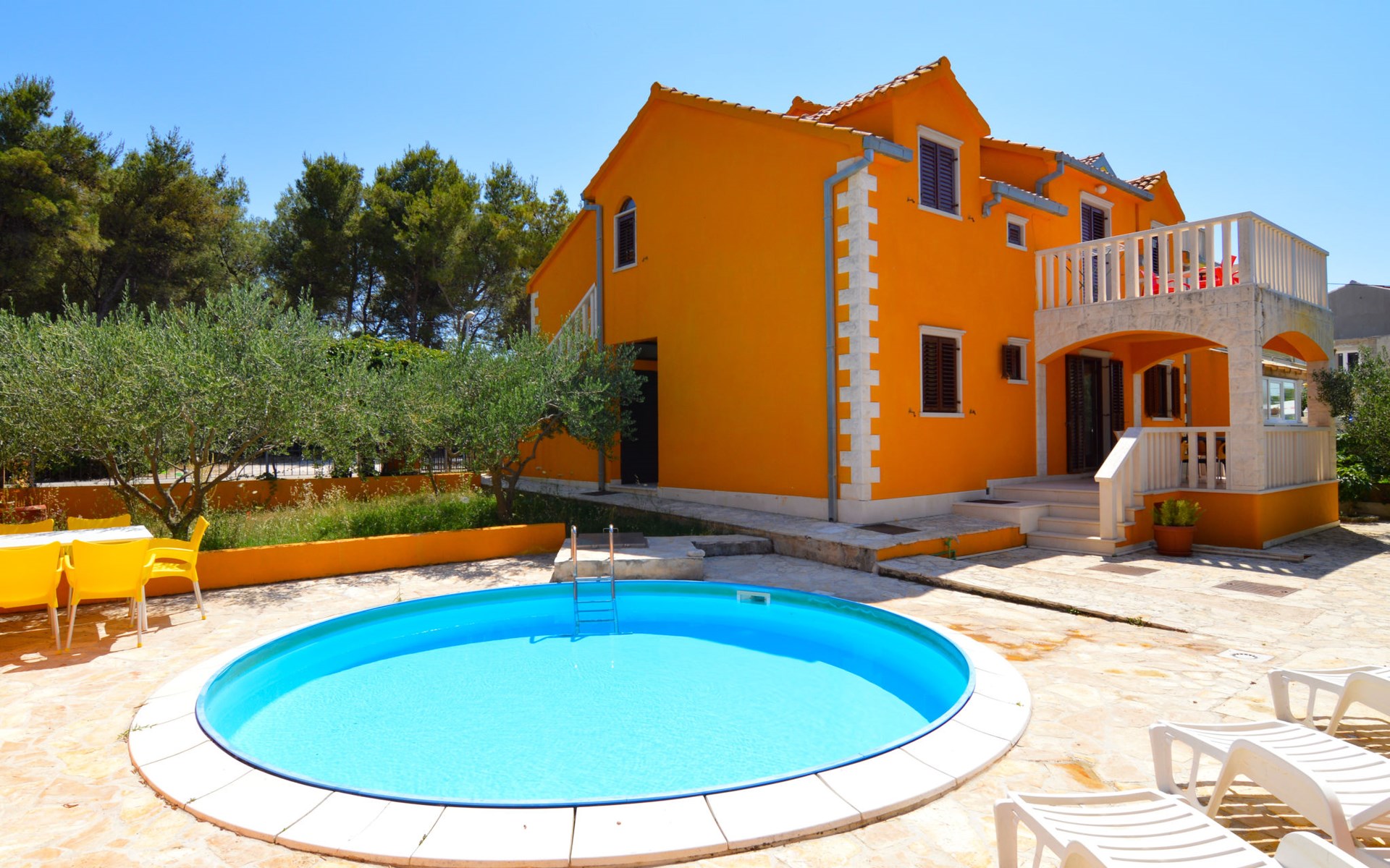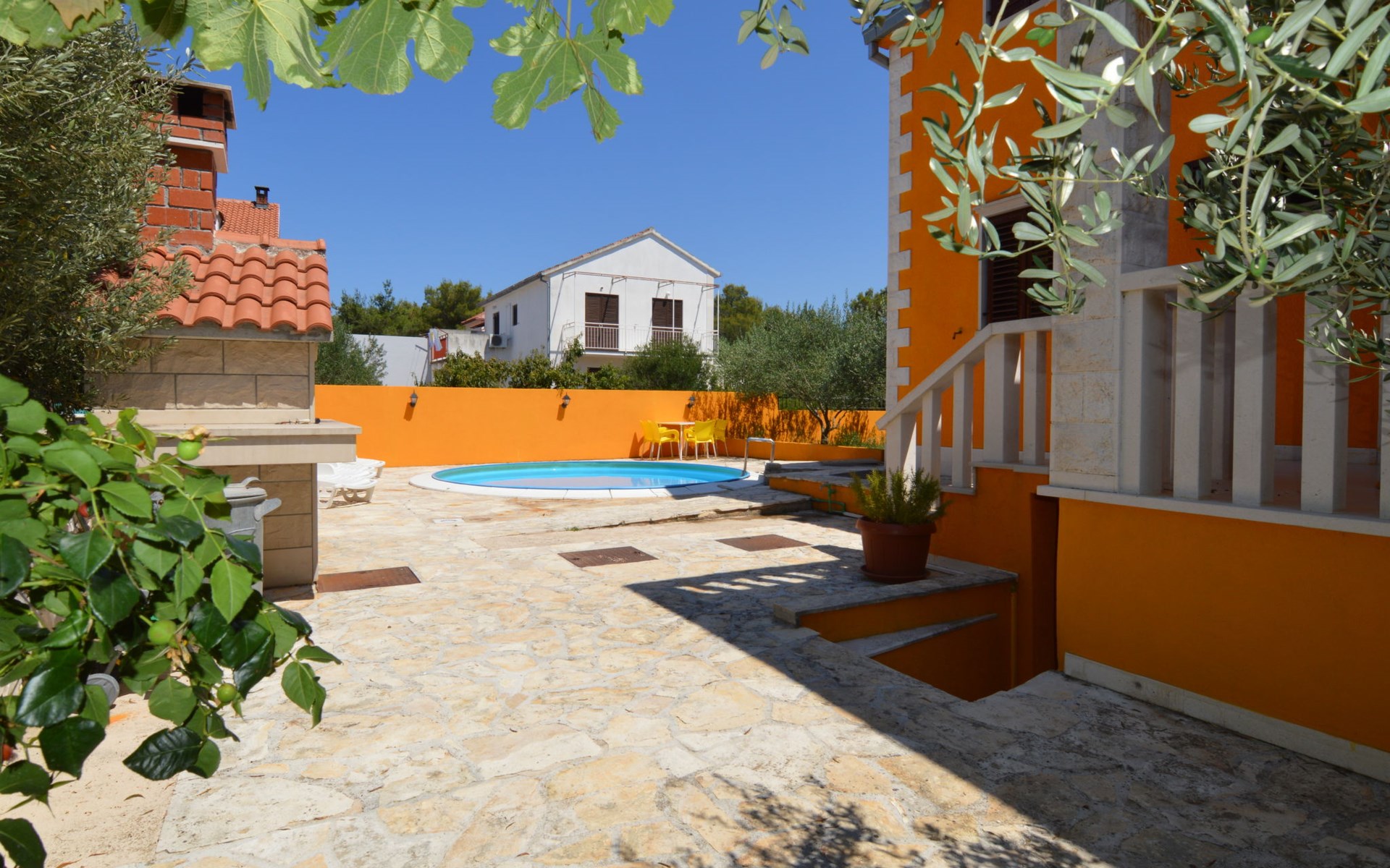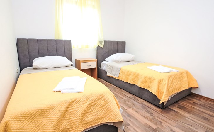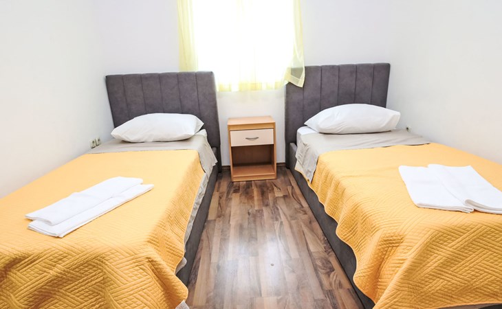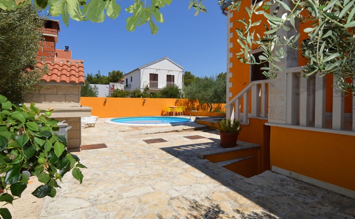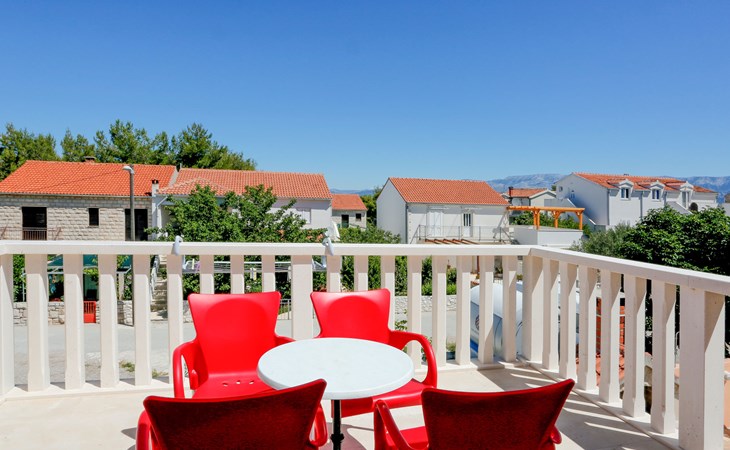 Twee onder één kap woning "Gorana", van 2 verdiepingen. Aan de rand van de plaats, 300 m van het centrum van Mirca, 3 km van het centrum van Supetar, 250 m van zee, van het strand. Voor alleengebruik: terrein 400 m2 (omheind) met planten, openluchtzwembad rond (5 m diameter, 120 cm diepte, seizoensgebonden beschikbaarheid: 25.Apr. - 18.Sep.). Buitendouche, terras, tuinmeubelen, barbecue. In het huis: internetaansluiting, wasmachine. Parkeerplaats (voor 3 auto's) op het terrein. Winkel 300 m, supermarkt 3 km, bushalte 4.7 km, veerboot 4 km, kiezelstrand 250 m. Jachthaven 3 km. De eigenaar woont op hetzelfde terrein. Vliegveld 46 km van het huis. Twee onder één kap woning bestaat uit 3 appartementen die samen als 1 woning verhuurd worden, een appartement op de begane grond en 2 appartementen op de eerste verdieping.