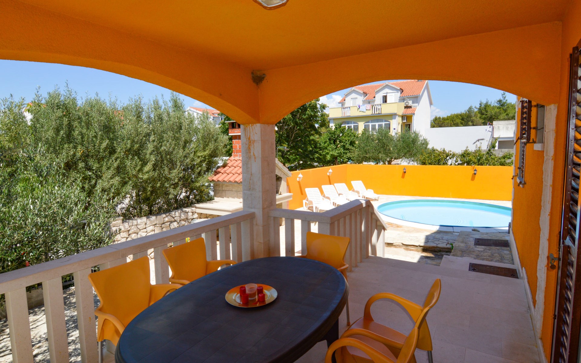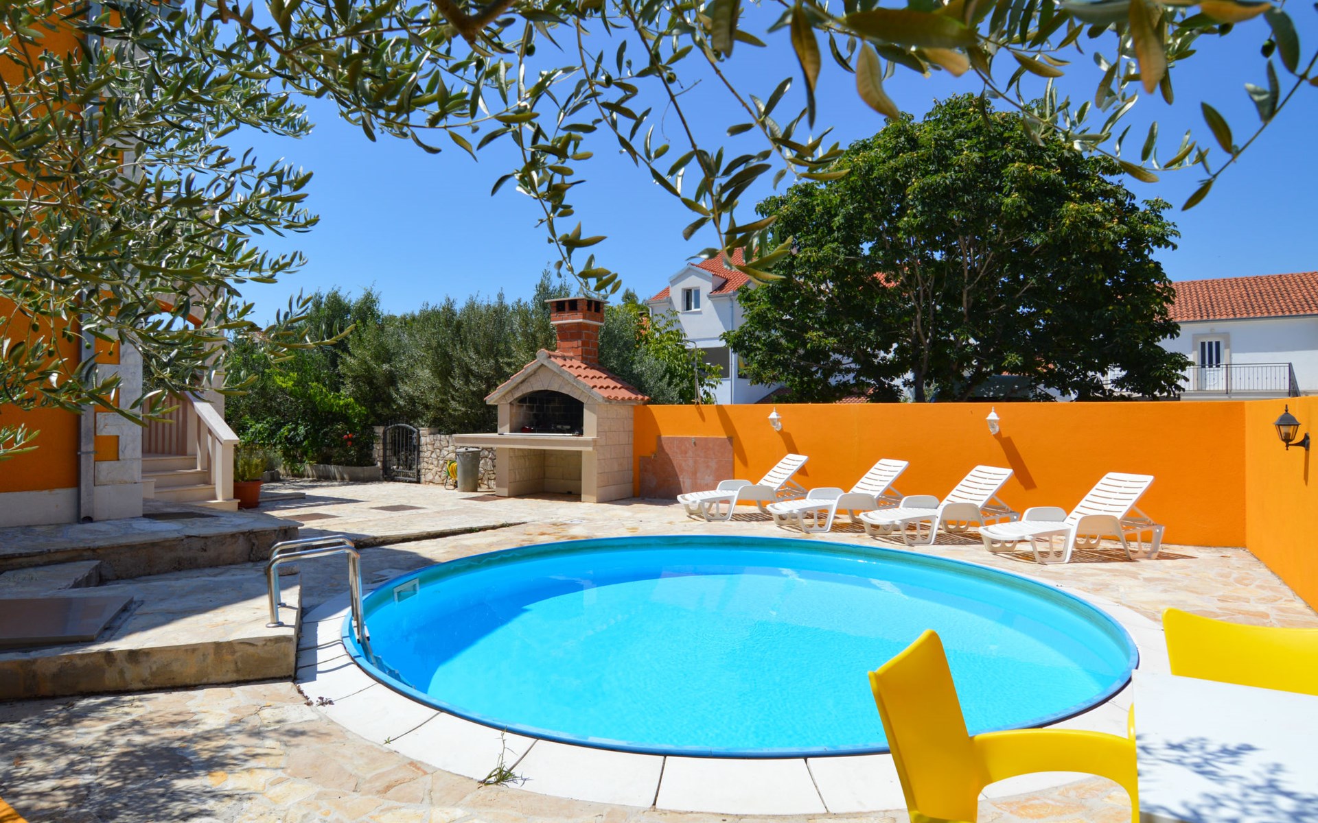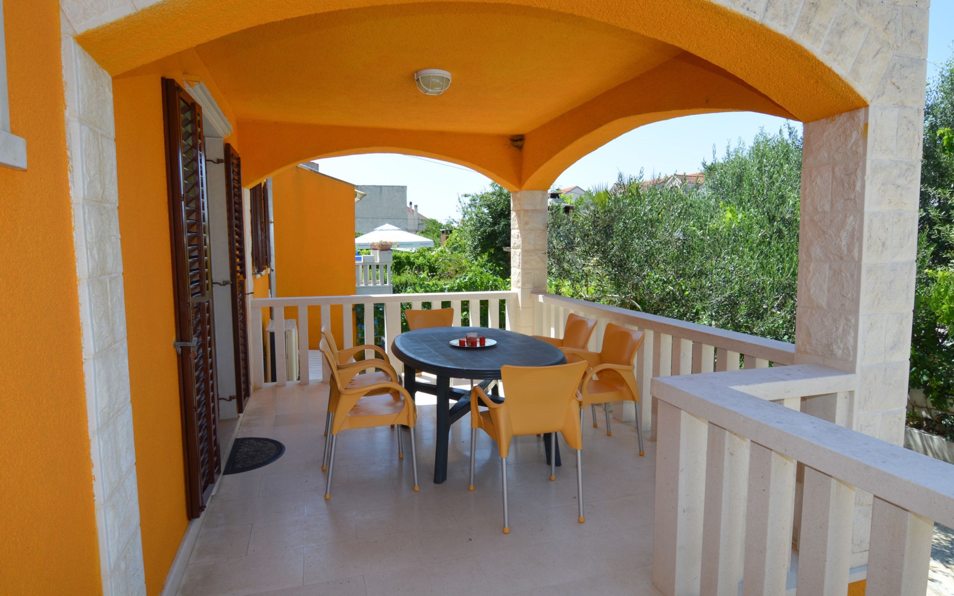 Twee onder één kap woning "Gorana", van 2 verdiepingen. Aan de rand van de plaats, 300 m van het centrum van Mirca, 3 km van het centrum van Supetar, 250 m van zee, van het strand. Voor alleengebruik: terrein 400 m2 (omheind) met planten, openluchtzwembad rond (5 m diameter, 120 cm diepte, seizoensgebonden beschikbaarheid: 25.Apr. - 18.Sep.). Buitendouche, terras, tuinmeubelen, barbecue. In het huis: internetaansluiting, wasmachine. Parkeerplaats (voor 3 auto's) op het terrein. Winkel 300 m, supermarkt 3 km, bushalte 4.7 km, veerboot 4 km, kiezelstrand 250 m. Jachthaven 3 km. De eigenaar woont op hetzelfde terrein. Vliegveld 46 km van het huis. Twee onder één kap woning bestaat uit 3 appartementen die samen als 1 woning verhuurd worden, een appartement op de begane grond en 2 appartementen op de eerste verdieping.