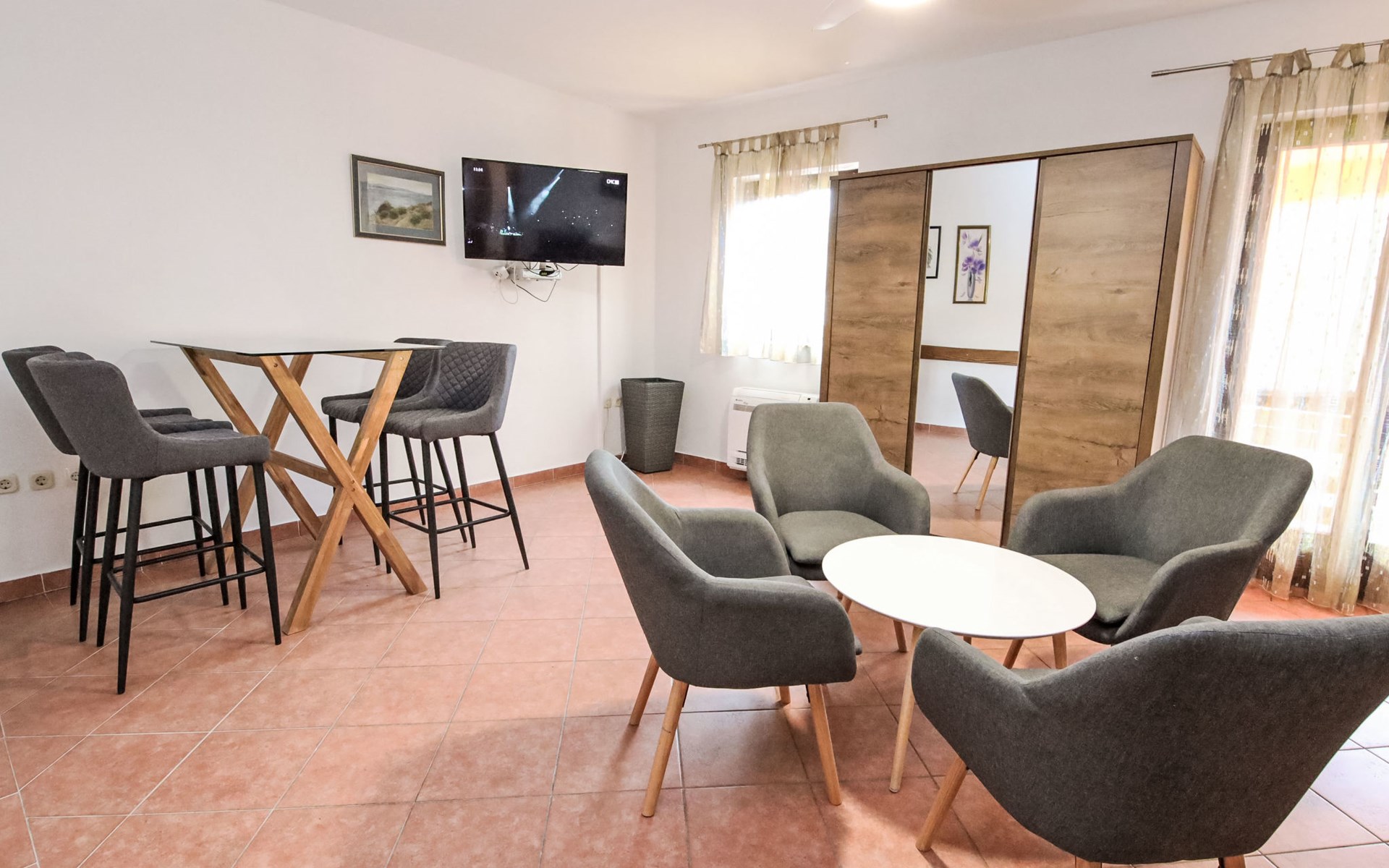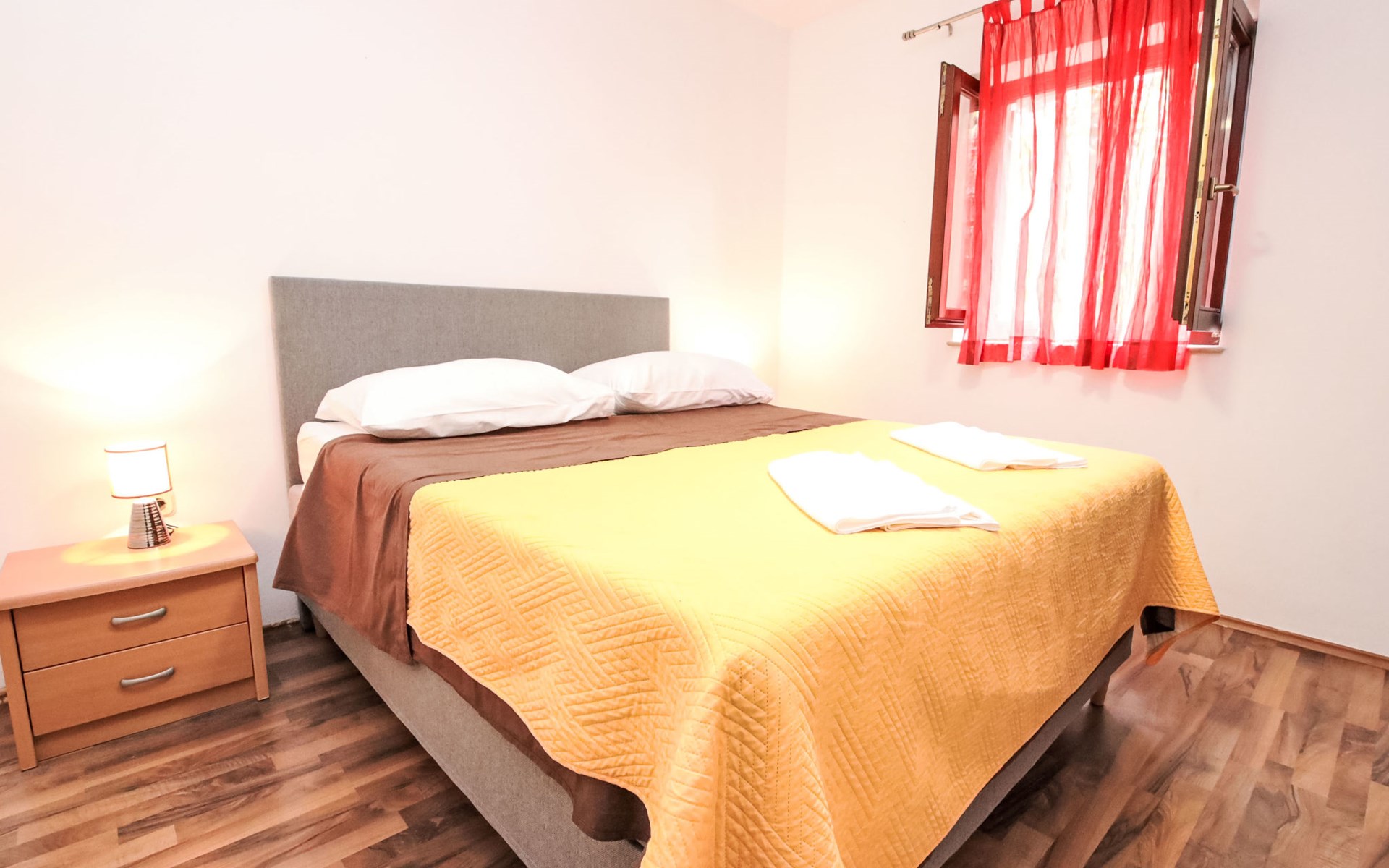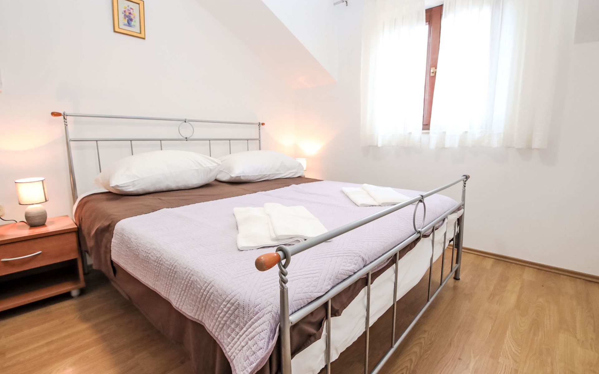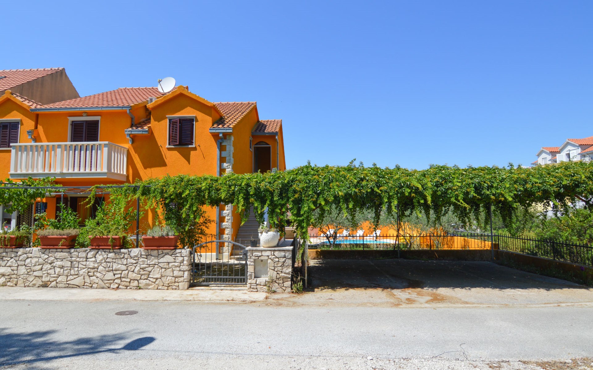 Twee onder één kap woning "Gorana", van 2 verdiepingen. Aan de rand van de plaats, 300 m van het centrum van Mirca, 3 km van het centrum van Supetar, 250 m van zee, van het strand. Voor alleengebruik: terrein 400 m2 (omheind) met planten, openluchtzwembad rond (5 m diameter, 120 cm diepte, seizoensgebonden beschikbaarheid: 25.Apr. - 18.Sep.). Buitendouche, terras, tuinmeubelen, barbecue. In het huis: internetaansluiting, wasmachine. Parkeerplaats (voor 3 auto's) op het terrein. Winkel 300 m, supermarkt 3 km, bushalte 4.7 km, veerboot 4 km, kiezelstrand 250 m. Jachthaven 3 km. De eigenaar woont op hetzelfde terrein. Vliegveld 46 km van het huis. Twee onder één kap woning bestaat uit 3 appartementen die samen als 1 woning verhuurd worden, een appartement op de begane grond en 2 appartementen op de eerste verdieping.