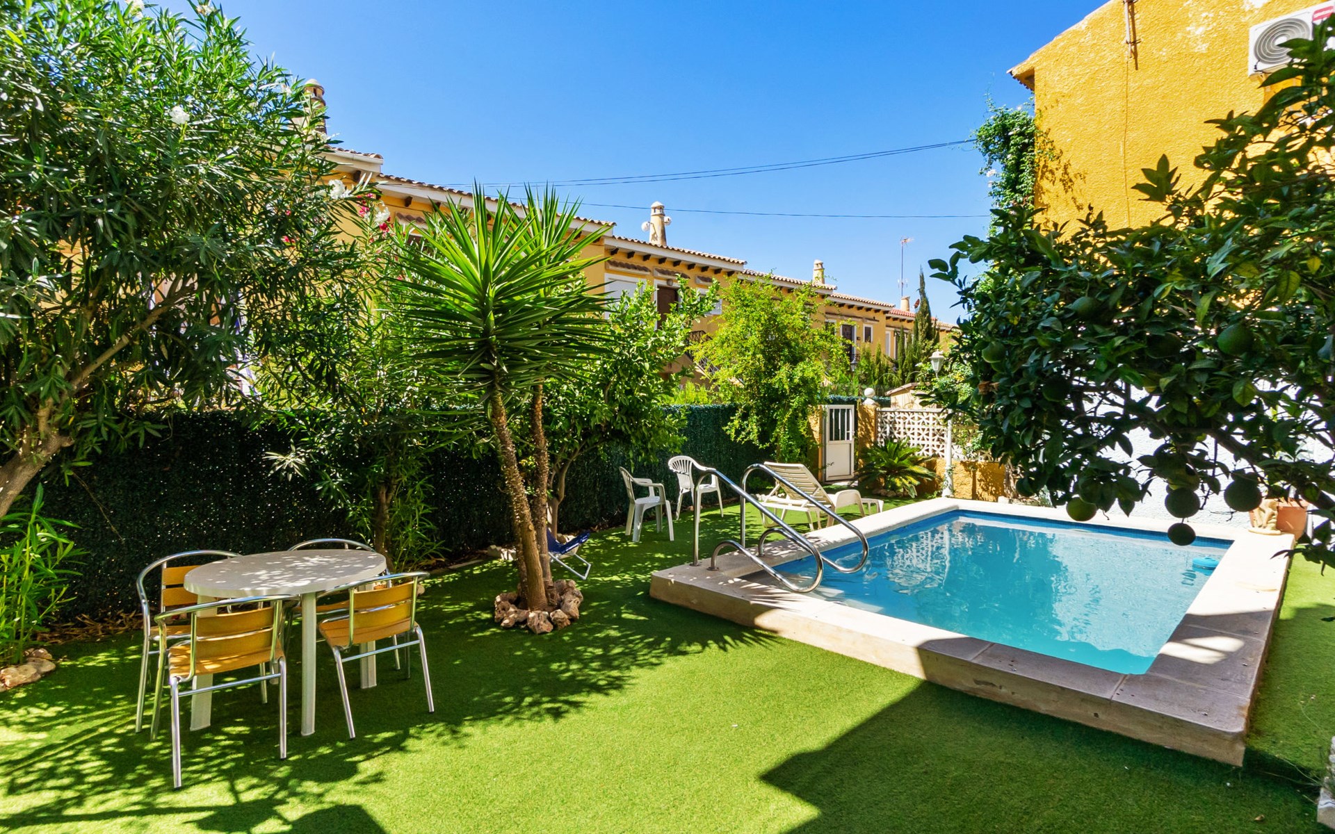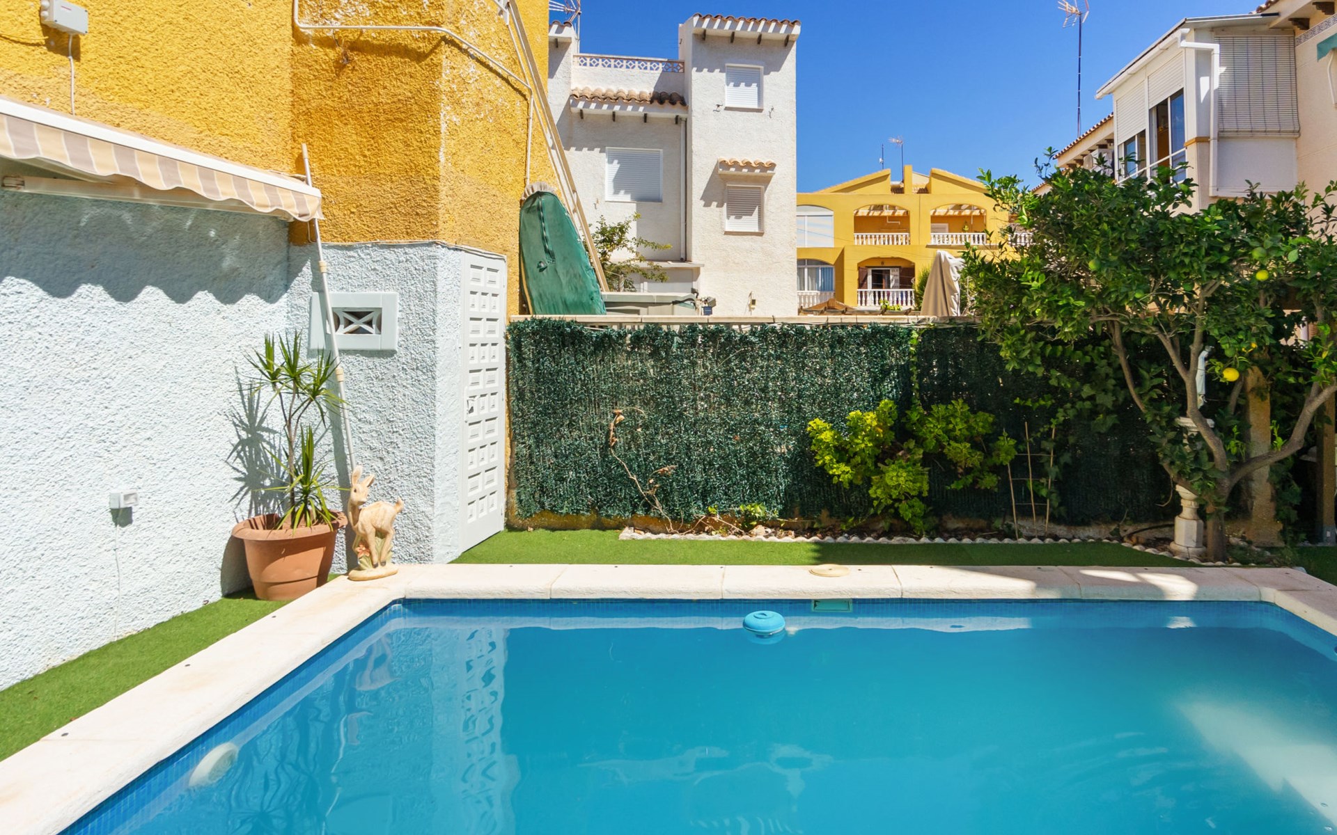 Mooi, gezellig rijtjeshuis "Marbella II", gerenoveerd in 2023. 2 km van het centrum van Torrevieja, 600 m van zee, 750 m van het strand. Voor medegebruik: terrein (omheind), kleine tuin, openluchtzwembad (5 x 3 m, seizoensgebonden beschikbaarheid: 01.Jan. - 31.Dec.). Terras. Voor alleengebruik: terras. Levensmiddelenwinkel, supermarkt 450 m, bushalte "Estación Autobuses Torrevieja" 2 km, treinstation "Orihuela" 30 km, zandstrand "Playa de los Locos" 650 m.