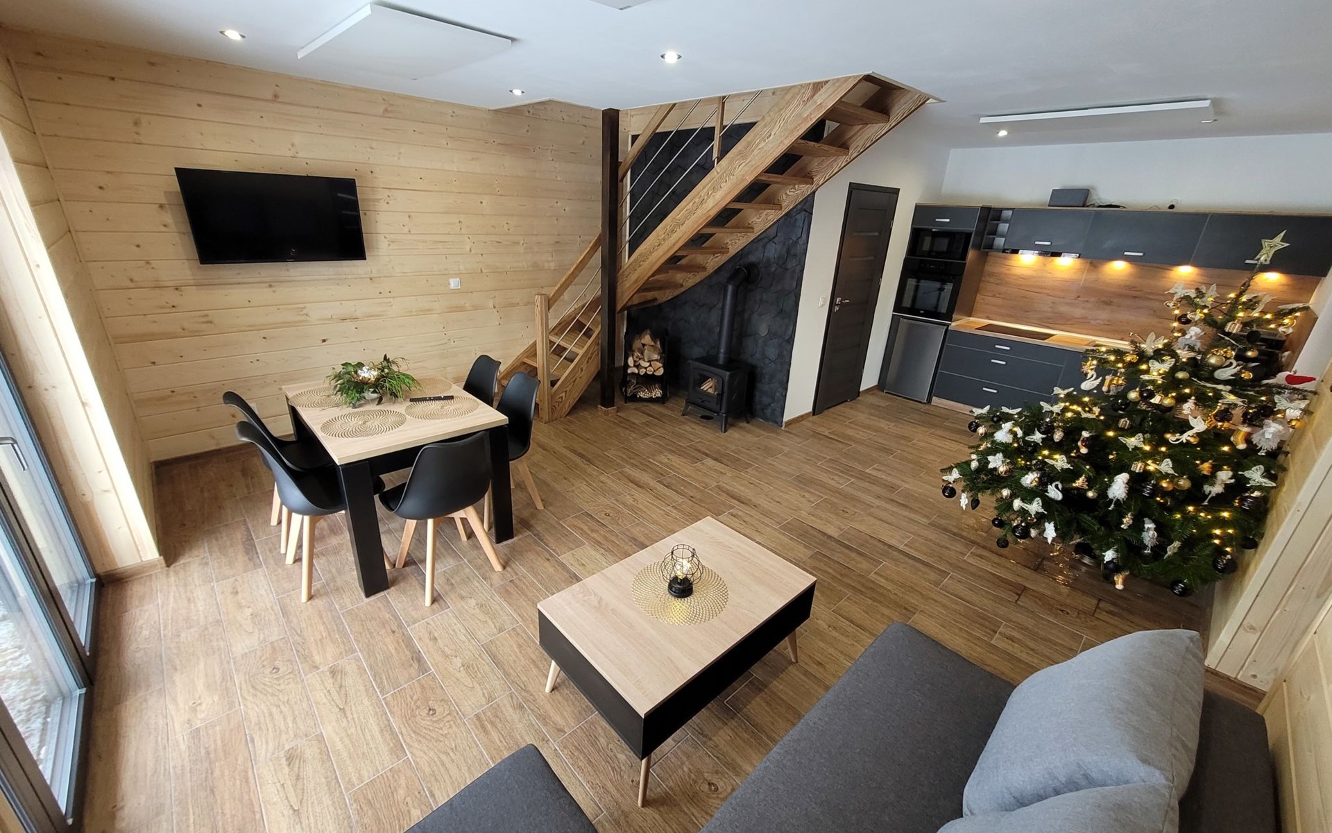 Moderne, gezellig chalet van 2 verdiepingen, bouwjaar 2022. 3 huizen in de plaats. Aan de rand van de plaats, zonnige ligging, te midden van groen. Voor medegebruik: terrein 3.000 m2 (omheind), groot tuin, weide 3.000 m2 (omheind). Buitendouche, hot tub, tuinmeubelen, kinderspeelplaats. Voor alleengebruik: barbecue. In het huis: Internet (WiFi), sauna (extra). Berging voor ski's, wasmachine, droger. Parkeerplaats bij het huis. Winkel 5 km, levensmiddelenwinkel 1.5 km, supermarkt 1 km, restaurant 5 km, bushalte 1.2 km, station 1 km. Kabelbaan 5 km, skilift 4 km, skischool 4 km, langlaufloipe 400 m. De afgebeelde foto is slechts een voorbeeld. Vergelijkbare accommodaties kunnen worden geboekt. De woningen kunnen onderling van inrichting verschillen.