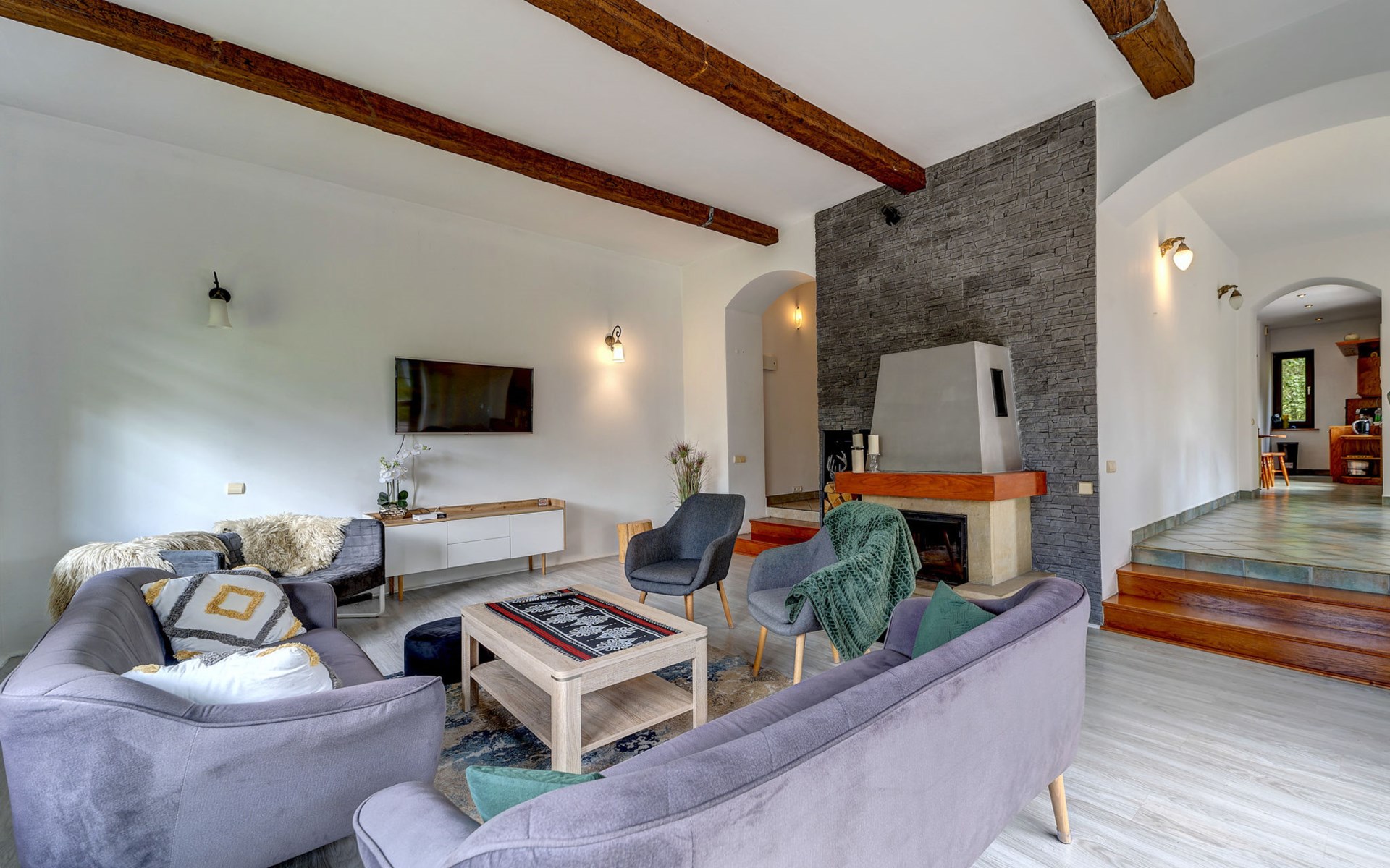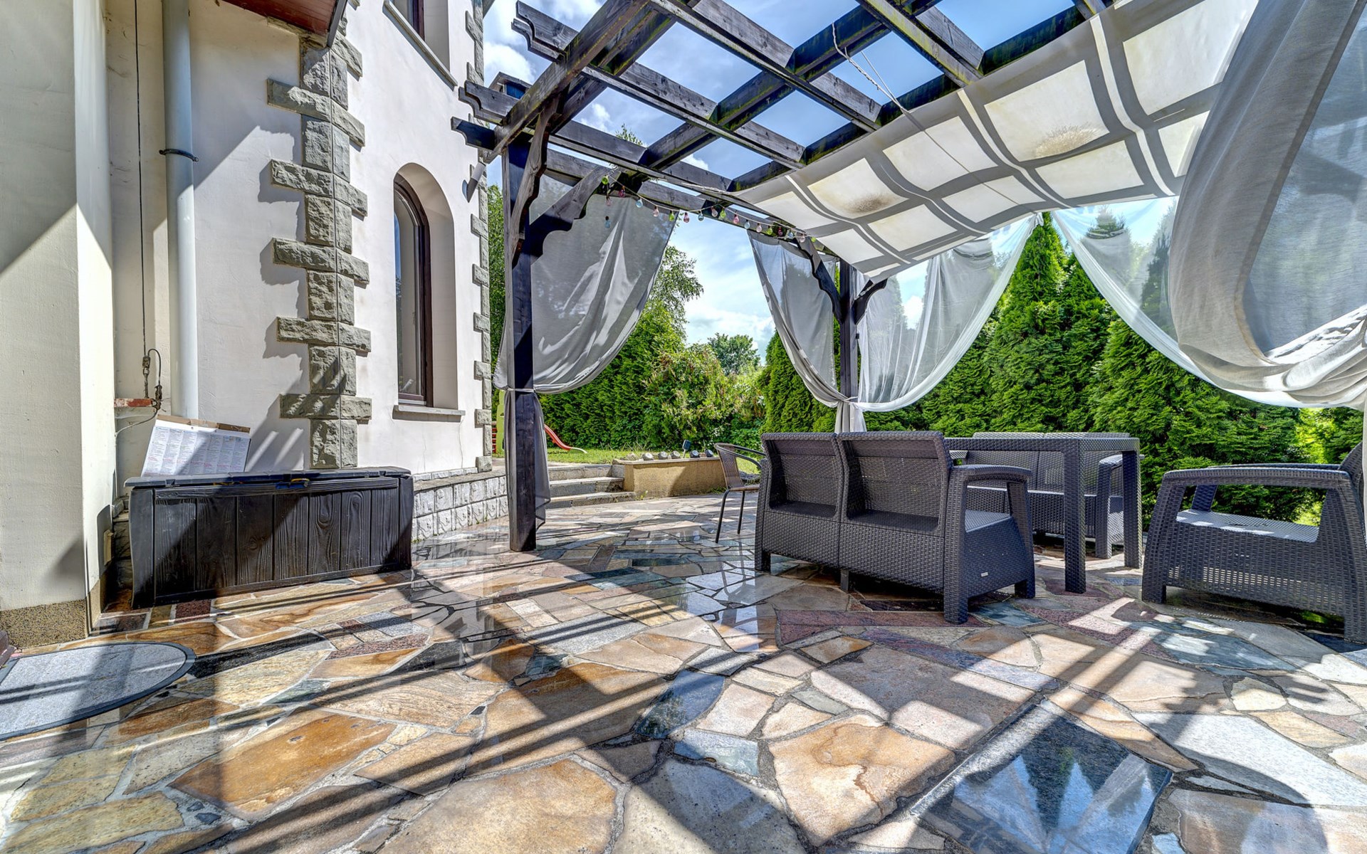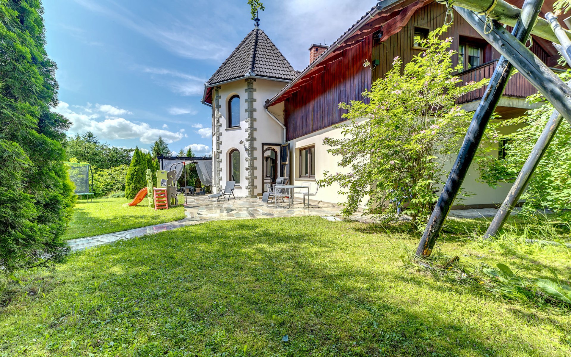 Groot eengezinswoning "Zameczek Falsztyn", bouwjaar 2000, gerenoveerd in 2009. 5 huizen in de plaats. Aan de rand van de plaats, rustige, zonnige, verhoogde ligging, 2 km van het meer, 5 km van het skigebied, te midden van groen. Voor alleengebruik: terrein 1.500 m2 (omheind), tuin. Terras, barbecue, kinderspeelplaats (schommel). In het huis: sauna, hot tub, biljart, tafelvoetbal, berging voor ski's. Toegangsweg tot aan het huis. In de winter sneeuwkettingen aanbevolen. Parkeerplaats bij het huis, eigen garage. Winkel 2 km, levensmiddelenwinkel 500 m, supermarkt 2 km, restaurant 5 km, bushalte 150 m, station 20 km, zandstrand 2 km (klein), meer (zwemmen) 2 km. Tennis 10 km, manege 3 km, skilift 5 km, stoeltjeslift 5 km, skiverhuur 5 km, skischool 5 km, ijsbaan 20 km, kinderspeelplaats 2 km. Attracties in de buurt: Zamek Niedzica 3 km, Ruiny Zamku Czorsztyn 15 km, Niedzica Park Miniatur, Park linowy, paintball. Bekende skigebieden kunnen gemakkelijk worden bereikt: Niedzica 6 km, Białka Tatrzańska 18 km, Bukowina Tatrzańska 24 km. Bekende meren kunnen gemakkelijk worden bereikt: Jez. Czorsztyńskie 2 km. Auto noodzakelijk. Geschikt voor families, baby uitrusting (incl.). Vissen toegestaan (visvergunning noodzakelijk). Hoofdstraat 50 m van het huis.