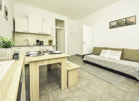 Flatgebouw "Dajak". 1.2 km van het centrum van Omiš, van zee, 300 m van het strand, aan een hoofdweg. Voor medegebruik: grill, parkeerplaats bij het huis op het terrein. Supermarkt 300 m, bushalte 55 m, zandstrand 300 m. Op aanvraag kan een transfer vanaf de luchthaven naar de vakantiewoning geregeld worden. De eigenaar woont in hetzelfde huis. Vliegveld 40 km van het huis.