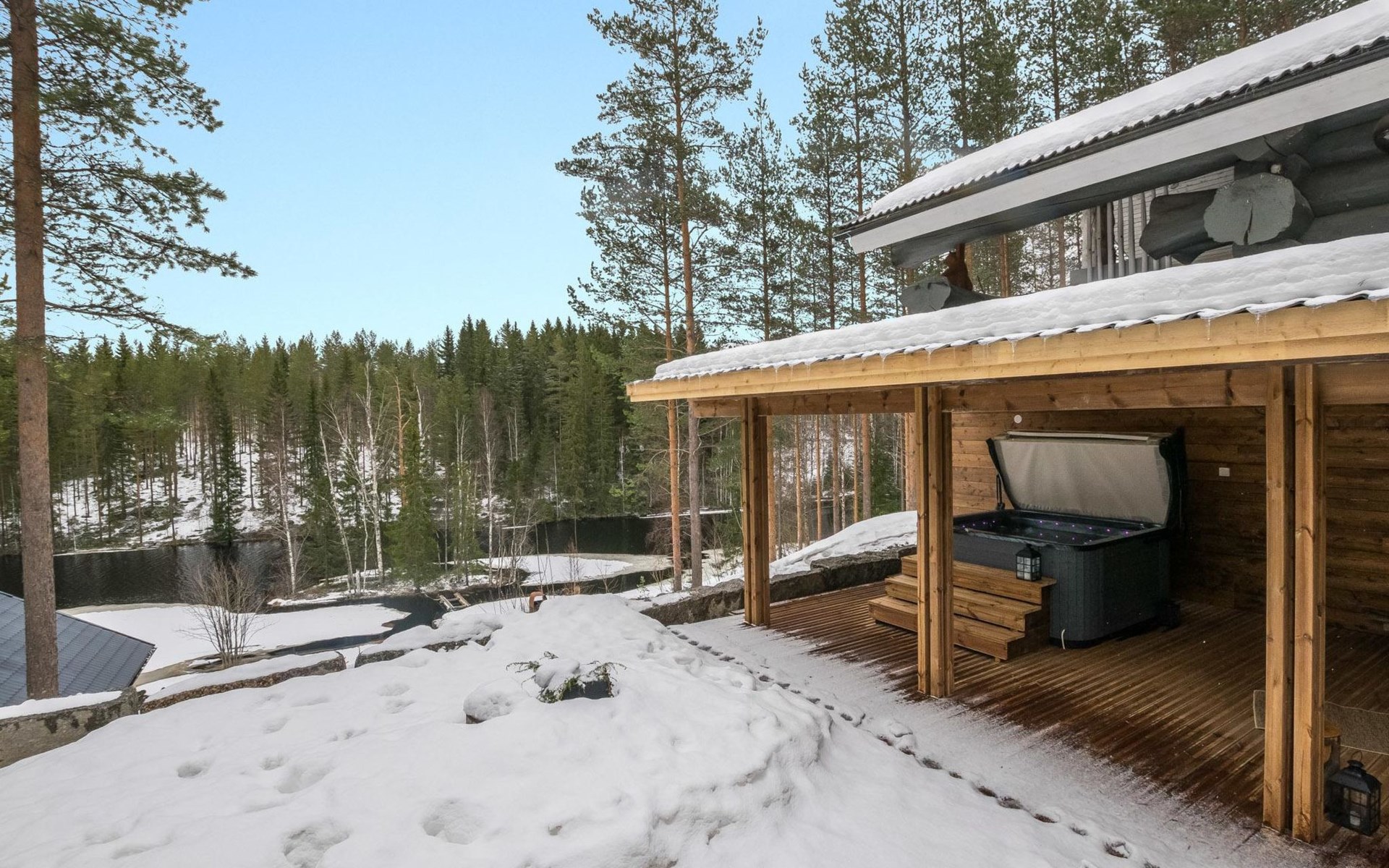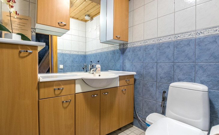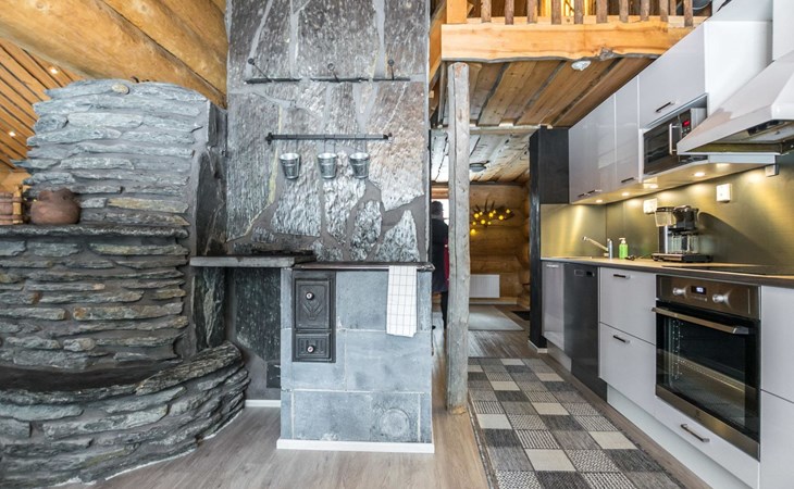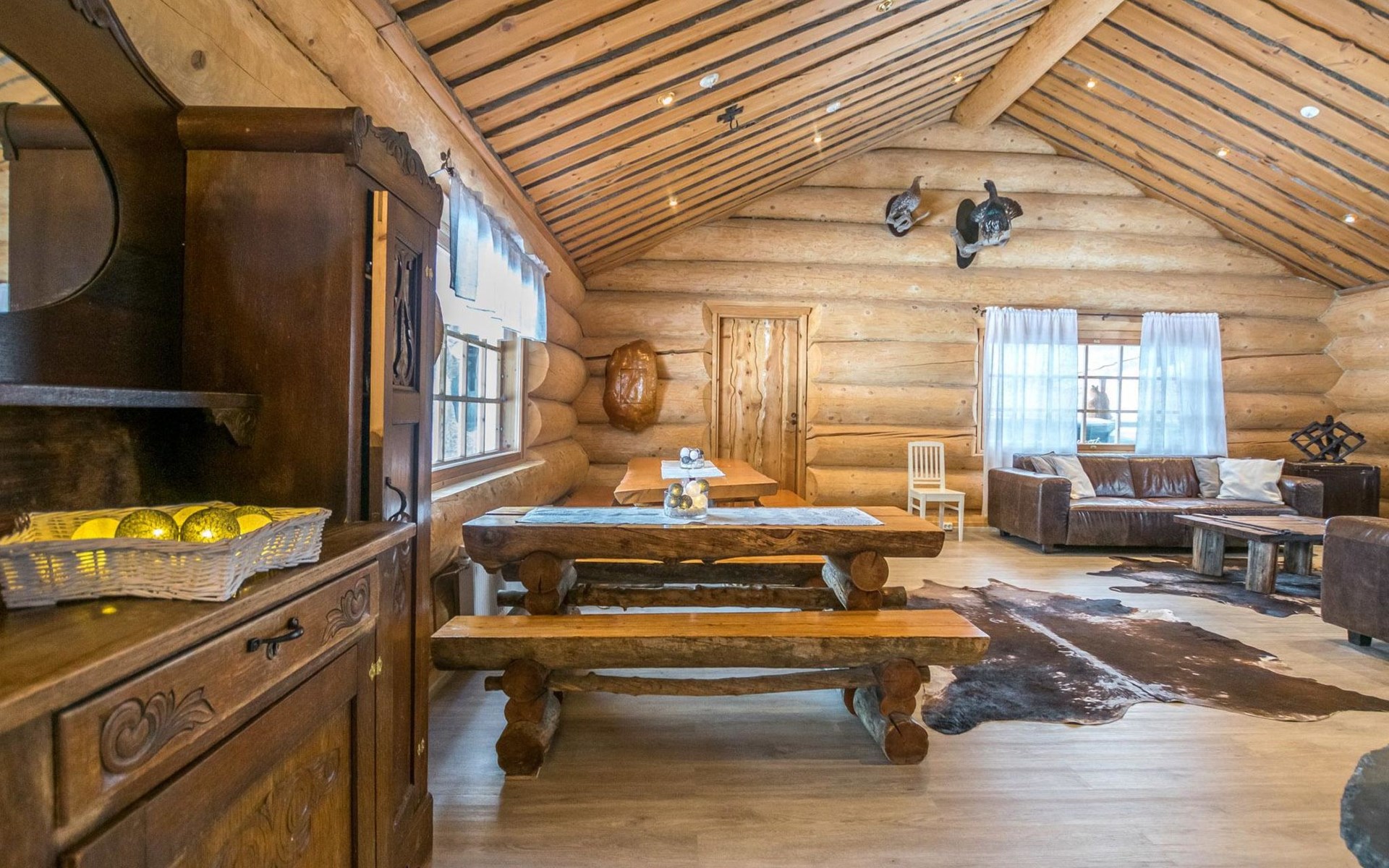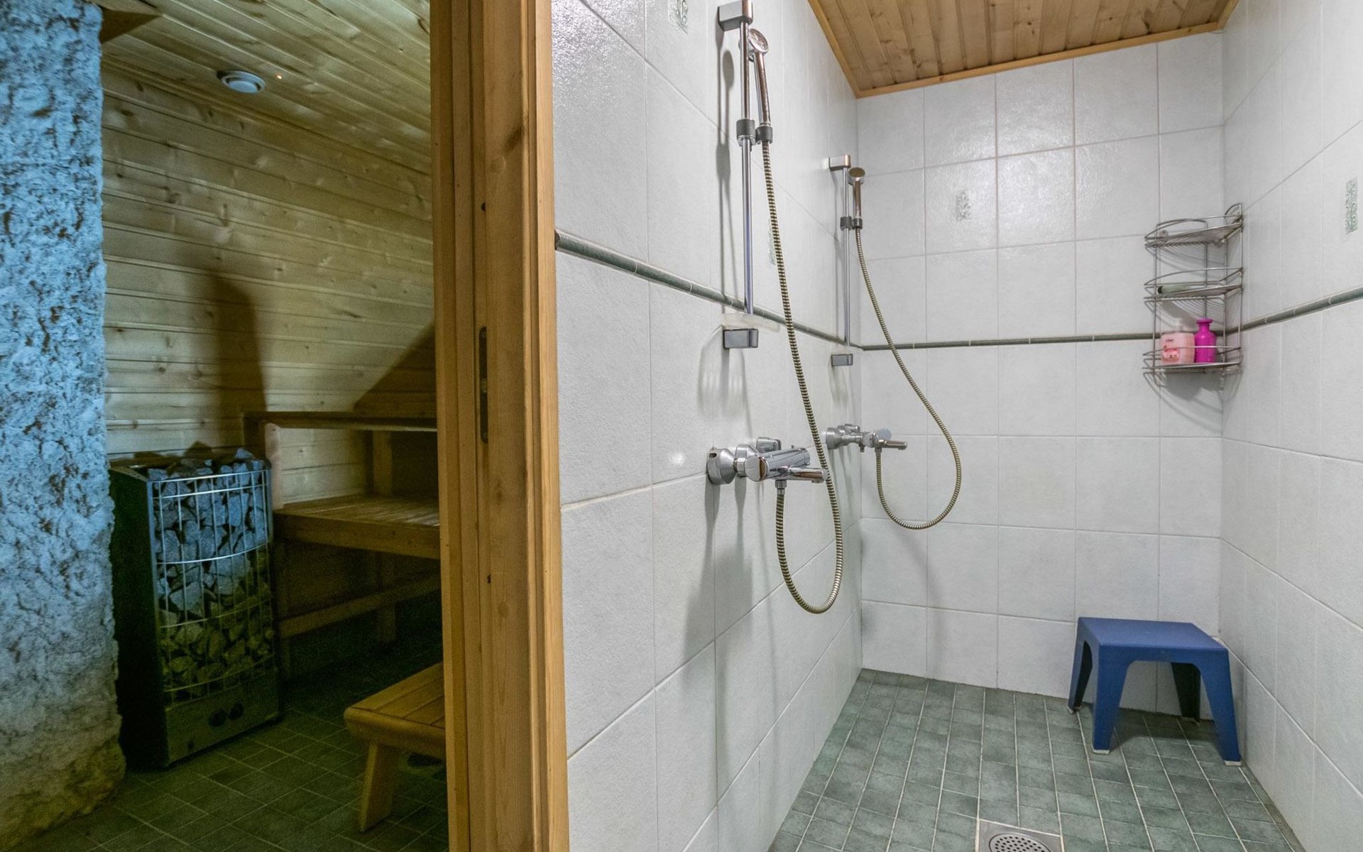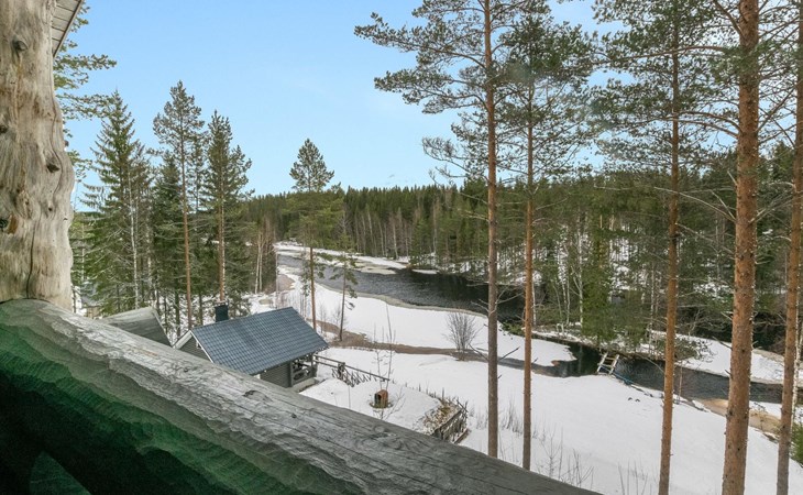 Two-storey cottage made of solid roundlogs 2003, living room/kitchen, sleeping loft 2 beds, hall, downstairs bedroom 2 beds, bedroom 2 beds, room with fireplace (extendible extra double bed). In 2021 built 2 more bedrooms (10 and 12 m², 2 beds in each) and also kitchen and surfaces renovated. There are no windows in two of the bedrooms. Sauna (wood heated stove) and bathroom, open terraces above and below.
