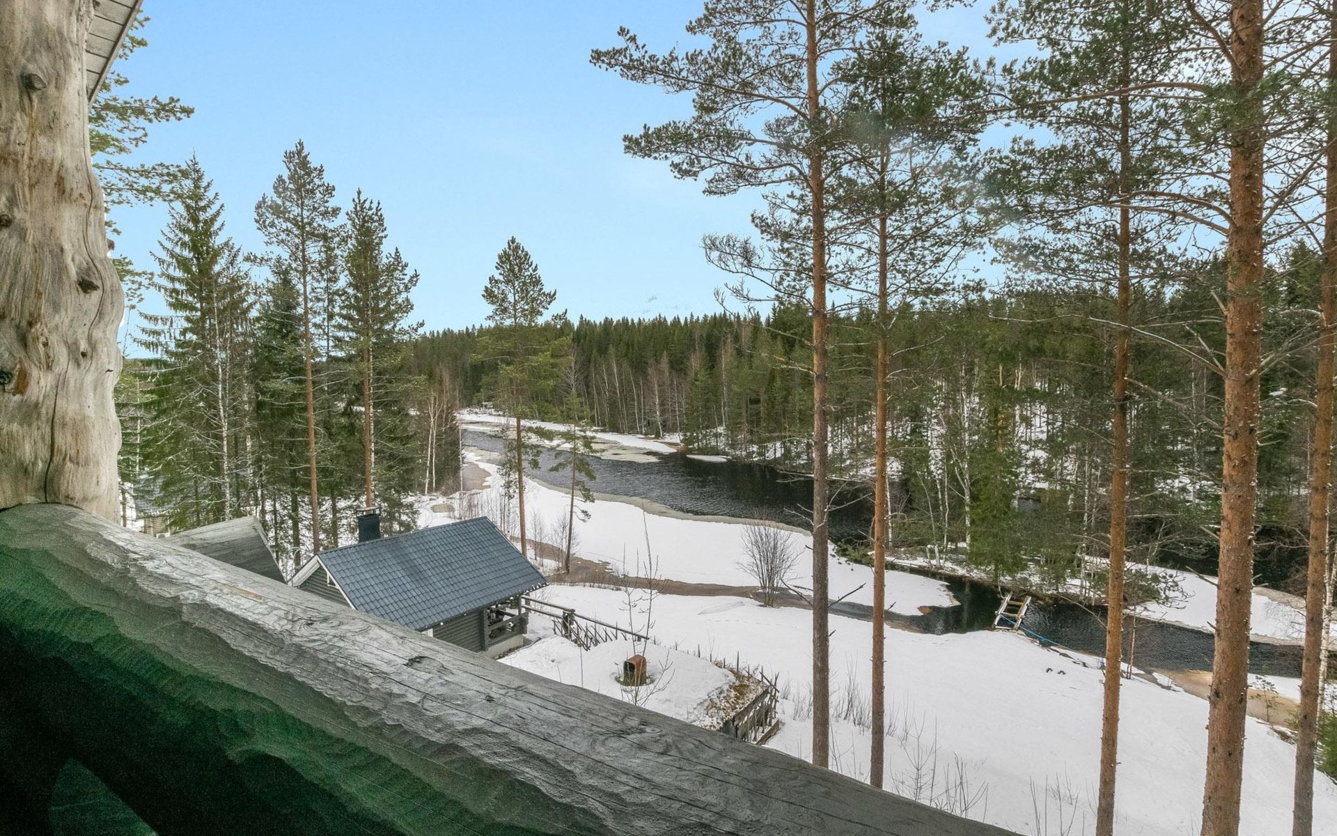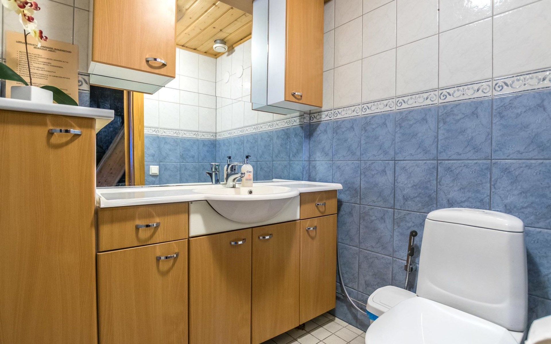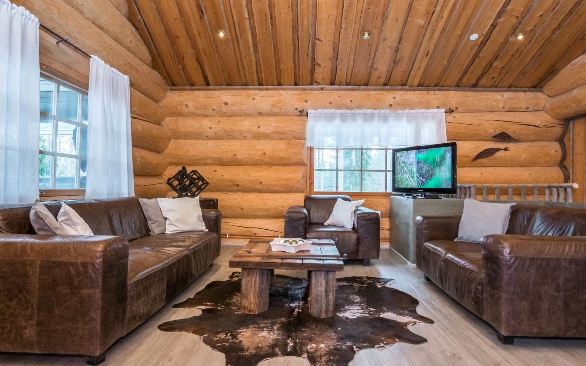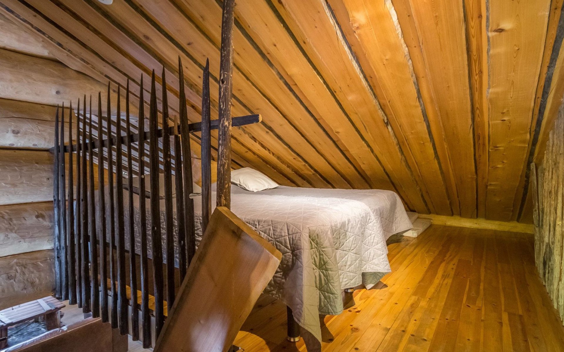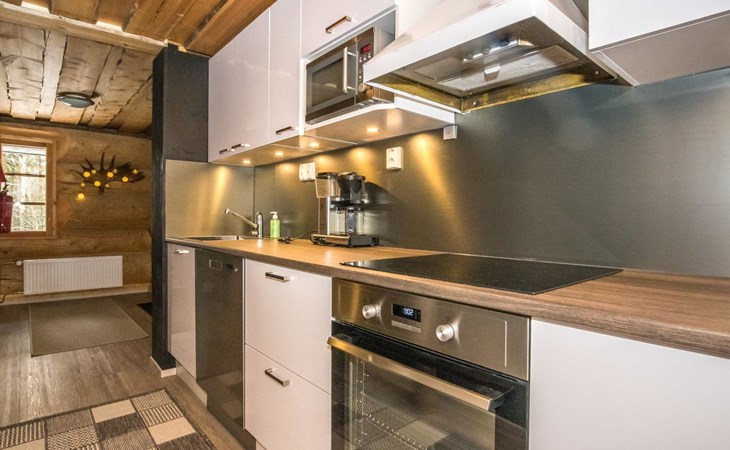 Two-storey cottage made of solid roundlogs 2003, living room/kitchen, sleeping loft 2 beds, hall, downstairs bedroom 2 beds, bedroom 2 beds, room with fireplace (extendible extra double bed). In 2021 built 2 more bedrooms (10 and 12 m², 2 beds in each) and also kitchen and surfaces renovated. There are no windows in two of the bedrooms. Sauna (wood heated stove) and bathroom, open terraces above and below.